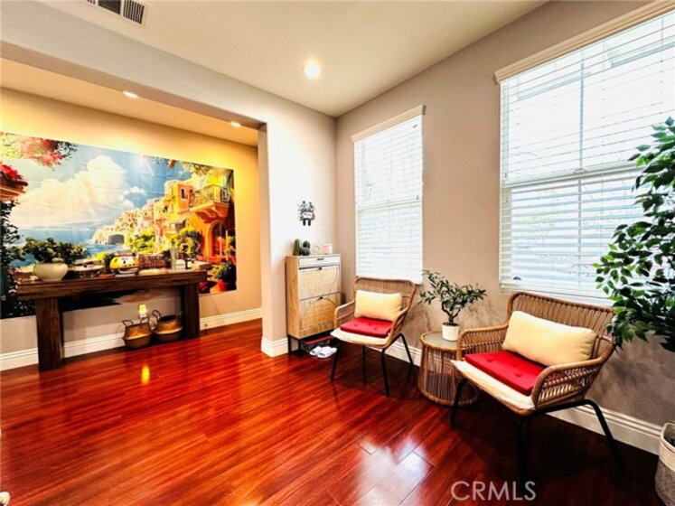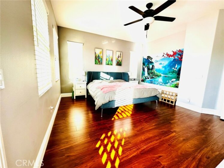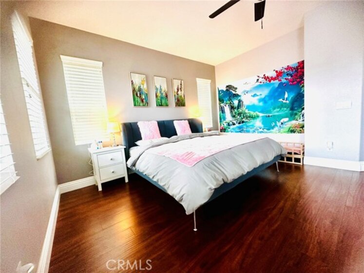Great opportunity to own this beautiful and well maintained home in the Wolf Creek Community, one of the most desirable neighborhoods in Temecula! This exceptional 2 story home features 3 bedrooms, 2.5 bathrooms, plus a spacious office on the first floor that you could easily turn into a bedroom if needed, high ceilings, high end laminate wood flooring and grand base molding are throughout the property, front porch surrounded with greeneries, large balcony off the master suite enjoys beautiful mountain and neighborhood views, you'll also truly enjoy walking or biking nearby where you'll find many grand parks here and there. Master suite is so spacious and privately located on one side of the home, across the loft, you'll find 2 other bedrooms on the other side, perfectly designed for kids or guests, laundry room has a sink and lots of storage, garage is very spacious and has 2 sets of high quality storage cabinets. Kitchen features granite countertop and upgraded appliances. Bathrooms features quartz countertops, updated mirrors and lightings. The property is just a few minutes walk to the community center that offers a swimming pool, spa, fitness room, club house, outdoor barbeque, park and playground. Whether you're seeking a sanctuary to call home or a high-performing asset for your portfolio, this property delivers the best of both worlds.