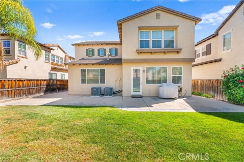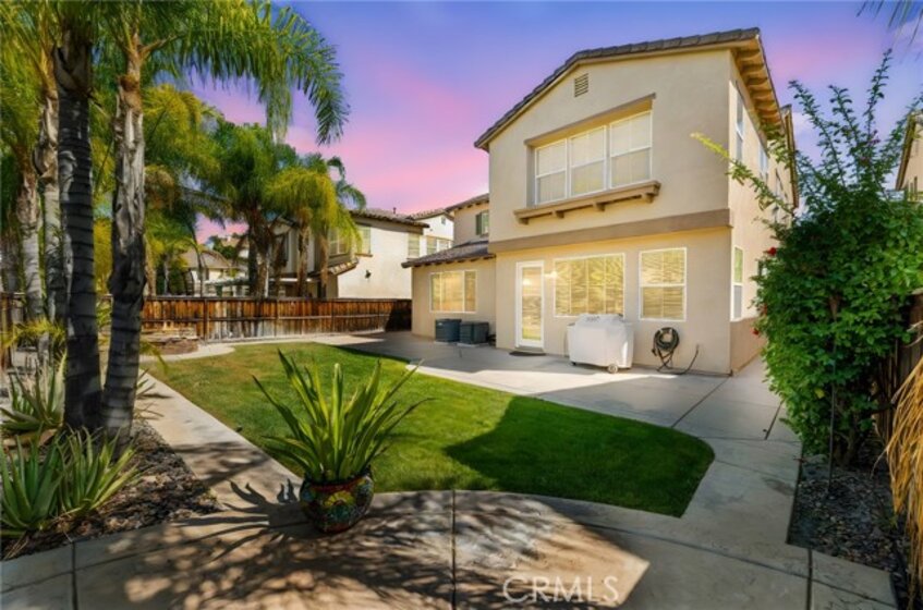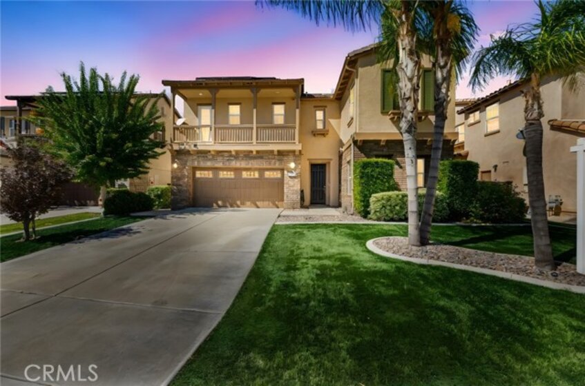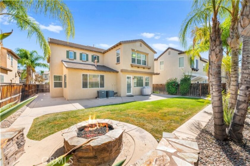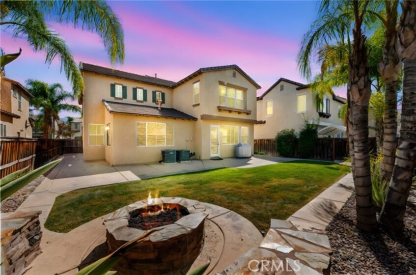 This beautiful South Temecula Wolf Creek home offers 4 spacious bedrooms, 4 bathrooms, and 2,632 sq. ft. of living space. Greet guests in the formal living room with soaring ceilings, then flow into the separate formal dining room for special gatherings. A convenient downstairs bedroom with a full bath is ideal for guests or multigenerational living. The kitchen features ample cabinetry and a double oven—perfect for hosting your next dinner party while the adjoining family room boasts a cozy fireplace and plenty of space to relax. Additional highlights include an owned solar system, a 2-car garage with built-in storage shelves and an upstairs laundry room with cabinets and countertops. The spacious master suite offers abundant natural light, a walk-in closet, dual vanities, a soaking tub, and a separate shower. Both secondary upstairs bedrooms have their own bathrooms, with one featuring a walk-in closet, plus a private balcony with views. Step outside to a stunning backyard retreat with color-stamped concrete, a custom-built gas fire pit with flagstone seating, and sparkling fire glass. The landscaping is enhanced with roses, palm trees, and plants. Located in the highly desirable Wolf Creek community, residents enjoy access to a 44-acre sports park and top-ranking schools. Don’t miss your chance to own this exceptional home—schedule your private showing today!