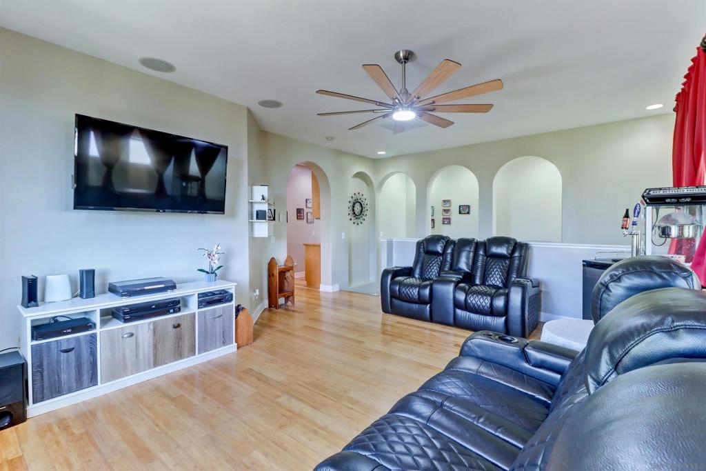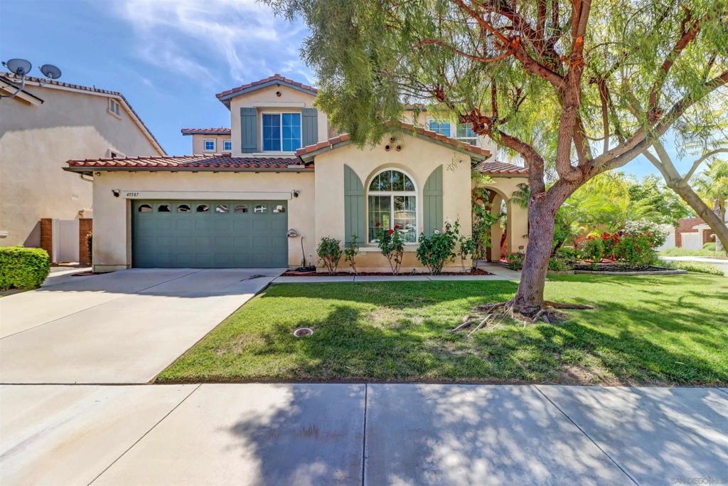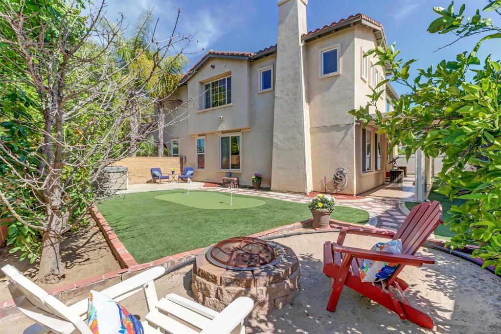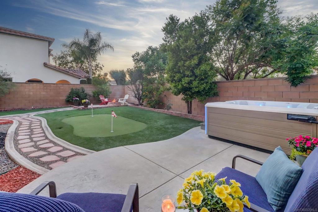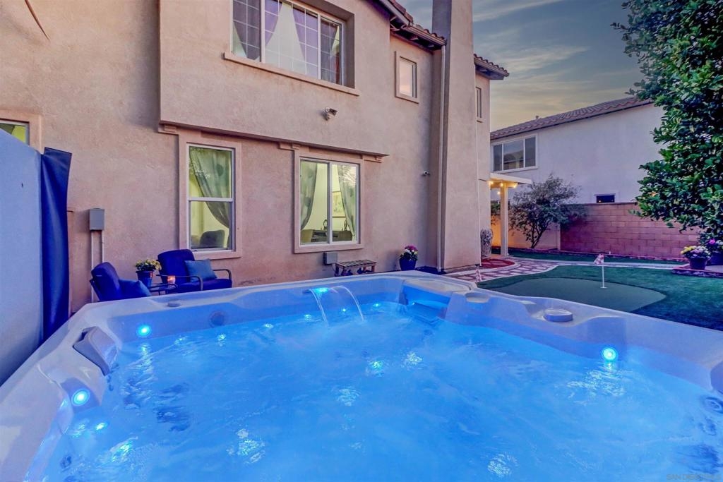 Located in the heart of the highly sought-after Wolf Creek Community, this beautifully upgraded Spanish-style corner lot home offers the perfect blend of comfort, style, and convenience. Step inside to soaring ceilings in the living room, recessed lighting throughout, and an open-concept layout ideal for modern living. The spacious kitchen features a large island, granite countertops, and abundant cabinet storage, flowing seamlessly into a cozy family room with a gas fireplace and integrated surround sound system. Natural sunlight pours through vinyl windows, illuminating every room—including an additional media room, an oversized primary suite with a luxurious en-suite bath featuring a soaking tub and step-in shower, and a generous walk-in closet. A downstairs bedroom with a fully renovated bathroom adds flexibility for guests or multigenerational living. Upstairs, bamboo flooring adds warmth and elegance throughout the living spaces. Step outside into your private, low-maintenance backyard oasis complete with xeriscape turf, a putting green, beach-inspired seating area with Adirondack chairs, citrus and fruit trees, built-in BBQ, aluminum patio cover for shaded lounging, and breathtaking mountain views. Relax in your private spa under decorative outdoor lighting. Additional highlights include a dual-zoned A/C system for optimal comfort, a Tesla charger, upstairs movie nook, water softener system, and a premium location within walking distance to the Wolf Creek Community Center with a private pool and BBQ areas. You’ll also enjoy close proximity to Pechanga Casino & Golf Course, the expansive Patricia H. Birdsall Sports Park, award-winning Temecula schools, scenic trails, shopping, dining, wineries, and historic Old Town Temecula. With easy access to both San Diego and Orange County, this home truly offers it all—luxury, lifestyle, and location.