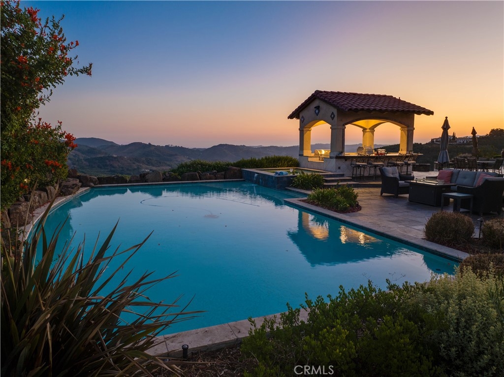Breathtaking Panoramic Picturesque Views of Surrounding Hills and Valleys, Tranquility and Privacy. Elegant and Timeless De Luz Residence Impeccably Maintained and Beautifully Curated. Located Just Minutes from Historic Old Town Temecula (EST. 1859) and Temecula Wine Country. Stunning Drive Through Del Luz Roads with Majestic Oak Trees and Orchards, Adding Charm and Almost Magical Sense. On a Clear Day You Can Catch a Glimpse of Ocean View before heading Down Large Private Circular Driveway, and if you look left, during the Winter and Spring You Might see the Snow of San Bernardino National Forest. Impressive and Inviting Curb Appeal. Welcoming Front Porch, Lead Glass Double Door and Cathedral Ceiling Entry. Living Room with Curved Wall Enhancing Stunning Views. Gleaming Oil Rubbed Oak Flooring Throughout, Open Floor Plan Flooded with Natural Light. Formal Dining Room Adjacent to Gourmet Kitchen that Includes Oversized Center Island, Butler's Pantry, Wine Cellar, Walk-In Pantry and Spacious Breakfast Nook. Kitchen Opens to Incredible Family Room with Remarkable Beams, Fireplace and Two Sets of French Doors Leading to Covered Patio. The Primary Suite Includes Fireplace, Two Oversized Walk-In Closets and Large Retreat/Library that can be easily turned into a Fifth Bedroom, Nursery or Gym. Adjacent to the Primary Suite is also Spacious Office with Two Built-In Desks. The Left Wing of this Extraordinary Home Comprises Three En-Suite Bedrooms, All Offering Truly Magnificent Views. Resort Style Backyard Includes Several Patios, Swimming Pool, Spa, BBQ Island, Horseshoe Pit, Mega Chess Board and So Much More! Fruit Tree Orchard Includes Several Citrus Trees, Avocado and Passion Fruit Tree and 15 Crepe Myrtle Trees are Planted Along the Private Driveway. Oversized Three Car Garage Includes Epoxy Flooring, Electric Car Charger and Ample Storage. Long List of Amenities and Recent Upgrades Available Upon Request. Truly Remarkable Property; Four Bedrooms, Retreat, Office, Four Fireplaces and Six Bathrooms Plus an Outdoor Shower. Low Property Tax Rate.