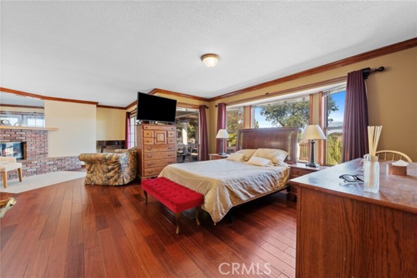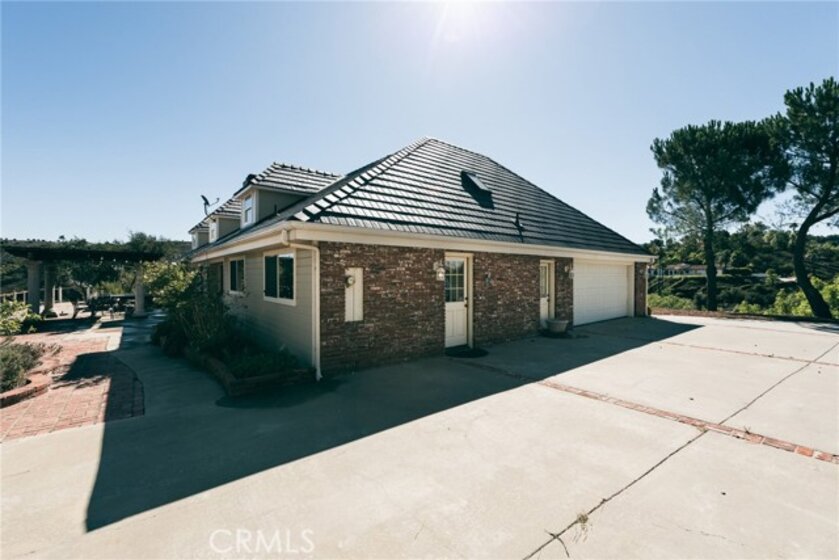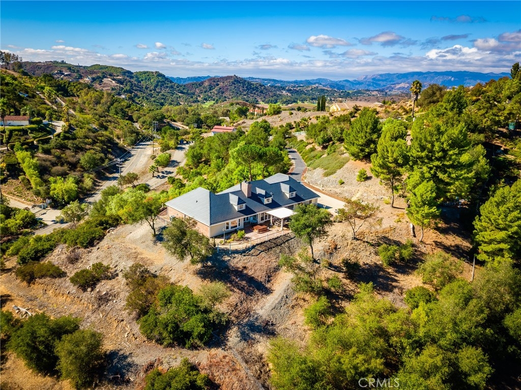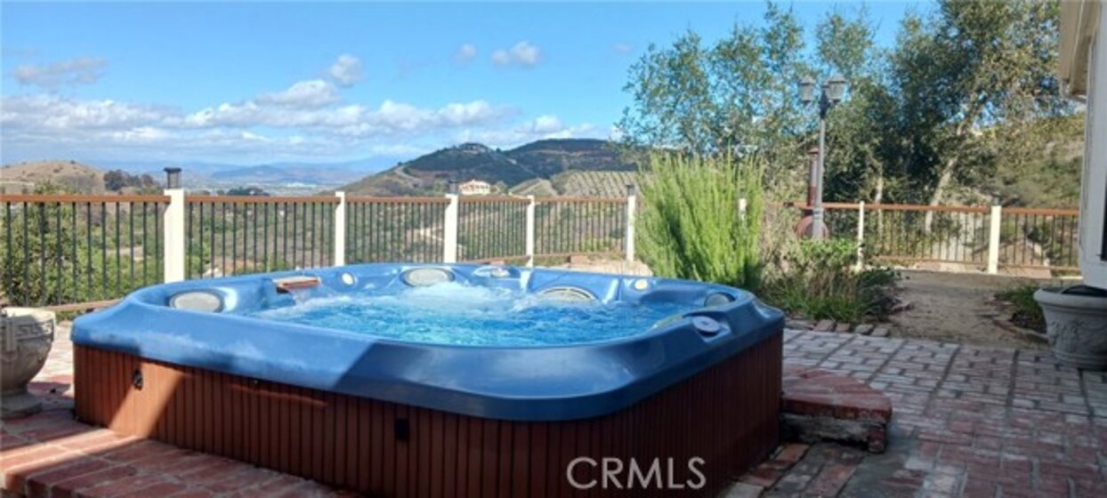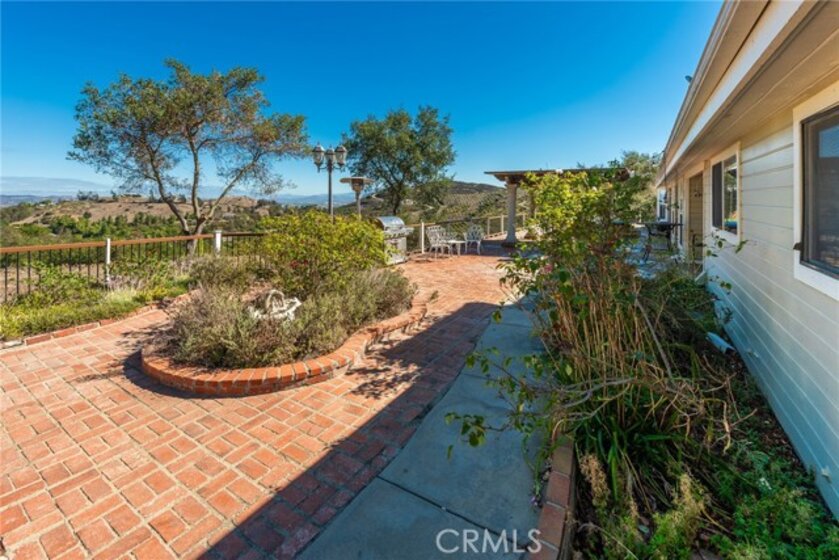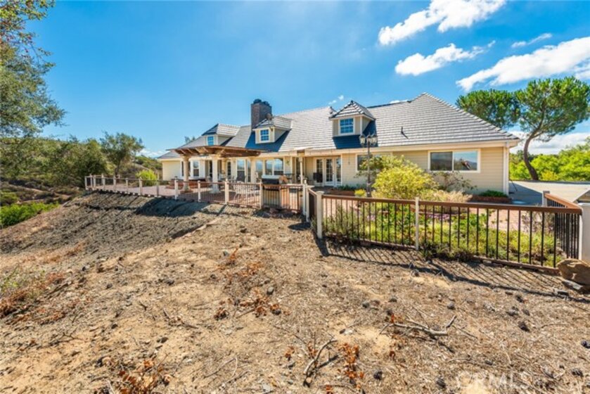 De Luz property- Nestled on a sprawling 5.15-acre lot in a desirable area of Temecula five minutes from Old Town, this scenic single-story residence offers a tranquil, large-lot lifestyle with exceptional potential. The main level of the home provides a comfortable layout featuring 3 bedrooms and 2.5 bathrooms. The inviting, open-concept design flows through expansive living areas, including a formal dining room and a large family room. Elegant details abound, such as Brazilian Cherry engineered flooring, classic wainscoting, and French doors leading to the exterior. The large kitchen is the heart of the home, featuring oak wood cabinetry, travertine tile flooring, and a convenient butler’s pantry. The adjacent dedicated dining area is perfect for casual meals. Utility spaces include a spacious laundry room with a large porcelain sink, upper and lower cabinets, and matching travertine tile. The luxurious Primary Suite offers a walk-in closet, a dedicated fireplace, and an en-suite bathroom complete with double basins and a relaxing Jacuzzi tub. A unique opportunity exists in the upper level, which features two rooms and a loft—perfect for extra storage or flexible space. Outside, the backyard features extensive brick paving and a 7-foot Jacuzzi-brand hot tub, ideal for enjoying the quiet acreage.