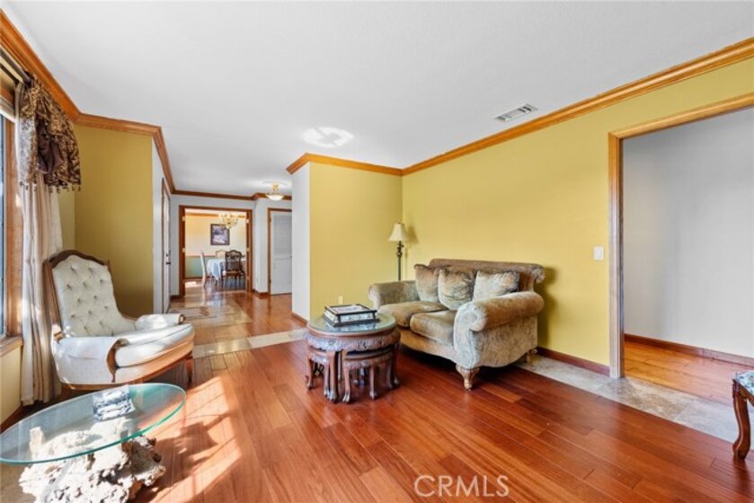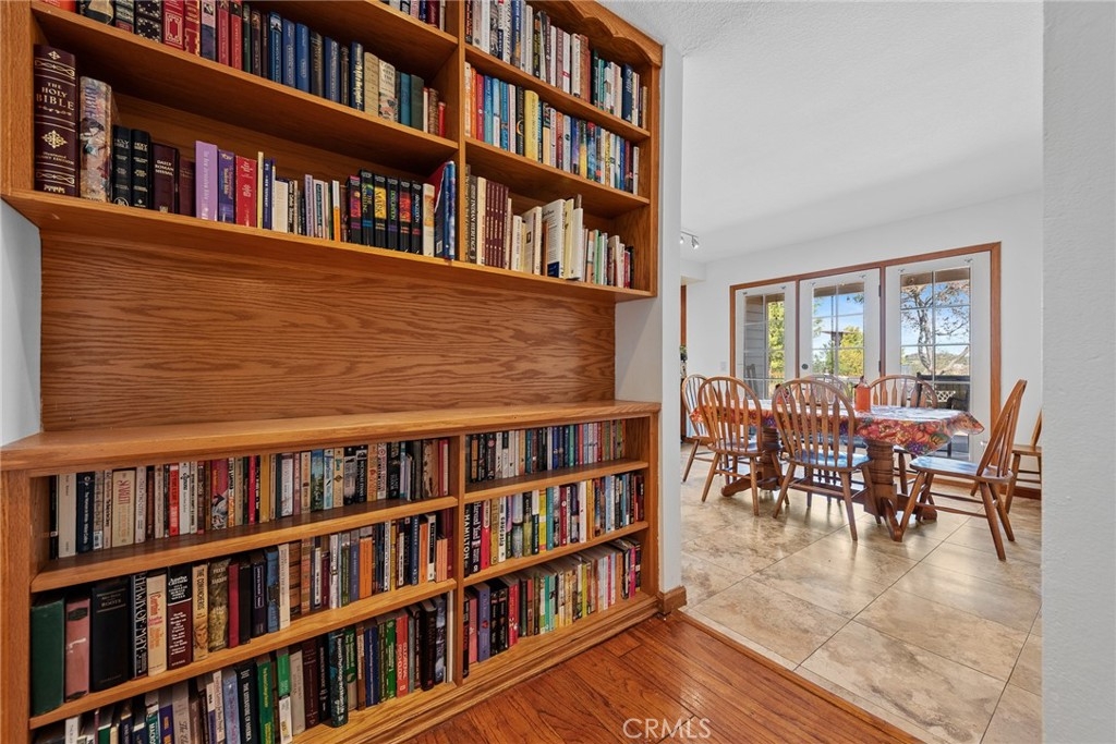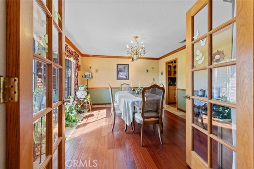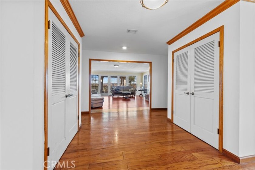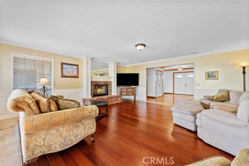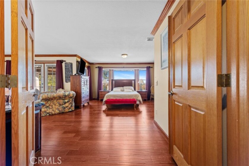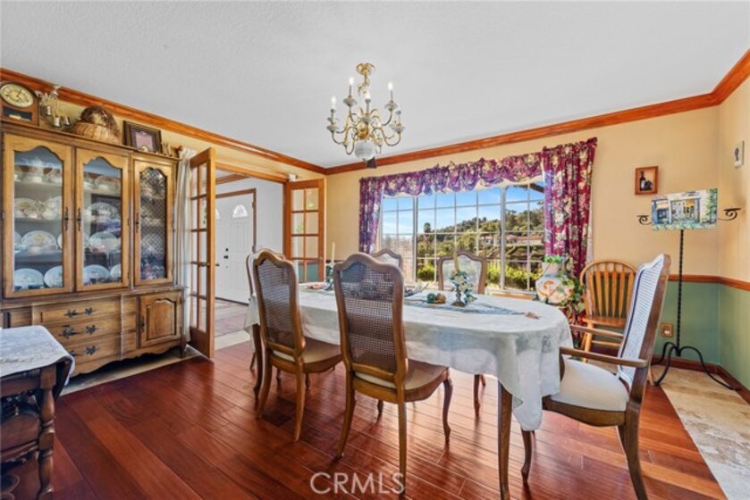 De Luz property- Nestled on a sprawling 5.15-acre lot in a desirable area of Temecula five minutes from Old Town, this scenic single-story residence offers a tranquil, large-lot lifestyle with exceptional potential. The main level of the home provides a comfortable layout featuring 3 bedrooms and 2.5 bathrooms. The inviting, open-concept design flows through expansive living areas, including a formal dining room and a large family room. Elegant details abound, such as Brazilian Cherry engineered flooring, classic wainscoting, and French doors leading to the exterior. The large kitchen is the heart of the home, featuring oak wood cabinetry, travertine tile flooring, and a convenient butler’s pantry. The adjacent dedicated dining area is perfect for casual meals. Utility spaces include a spacious laundry room with a large porcelain sink, upper and lower cabinets, and matching travertine tile. The luxurious Primary Suite offers a walk-in closet, a dedicated fireplace, and an en-suite bathroom complete with double basins and a relaxing Jacuzzi tub. A unique opportunity exists in the upper level, which features two rooms and a loft—perfect for extra storage or flexible space. Outside, the backyard features extensive brick paving and a 7-foot Jacuzzi-brand hot tub, ideal for enjoying the quiet acreage.