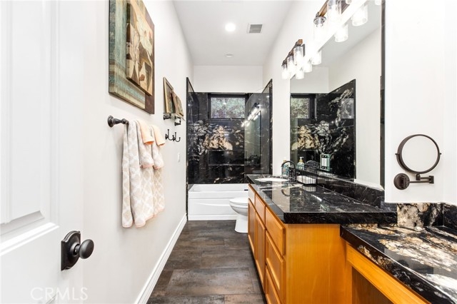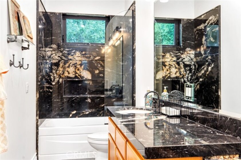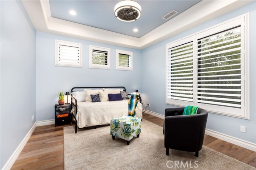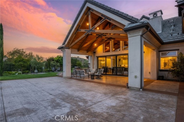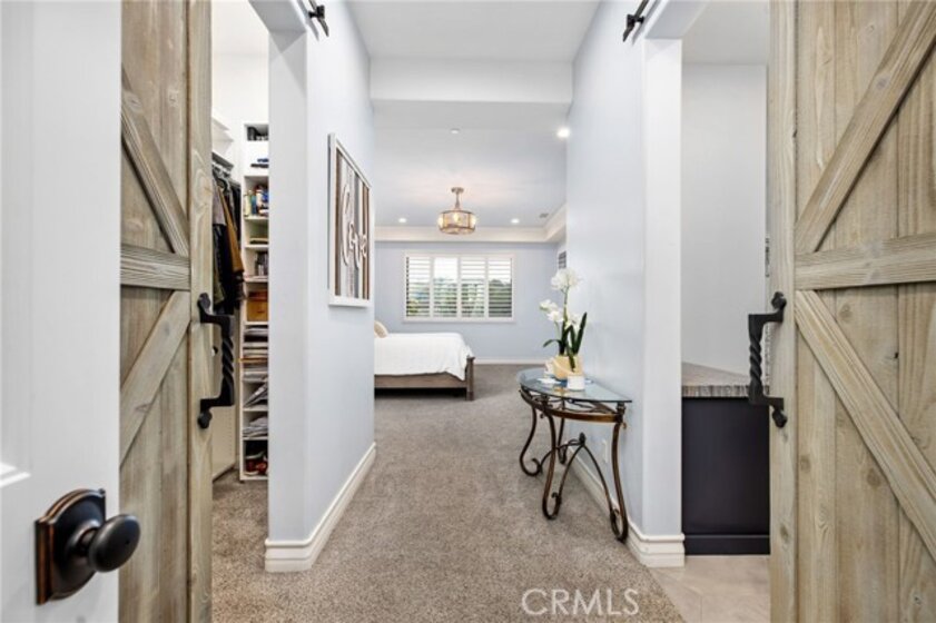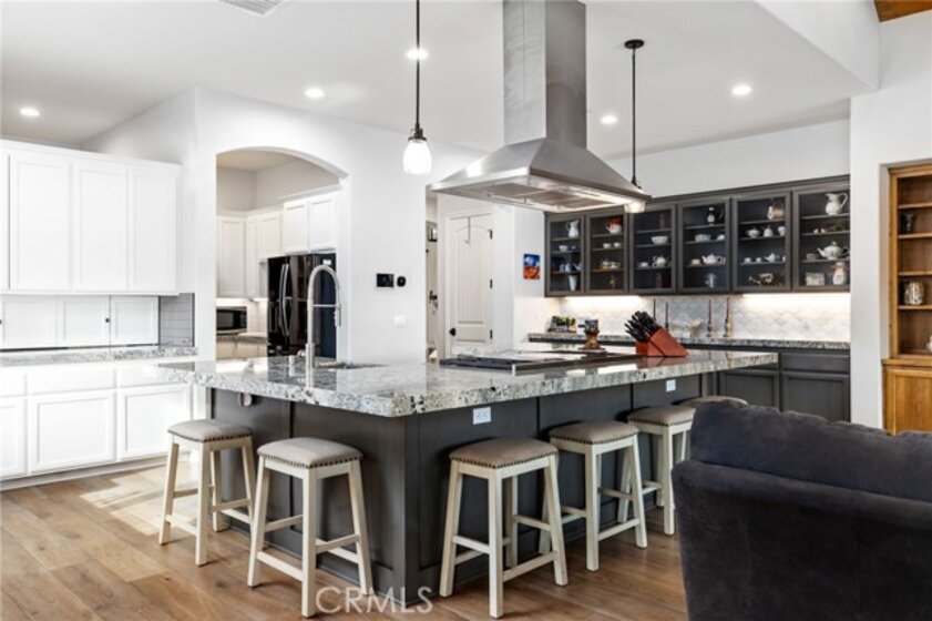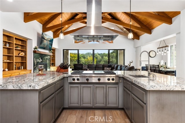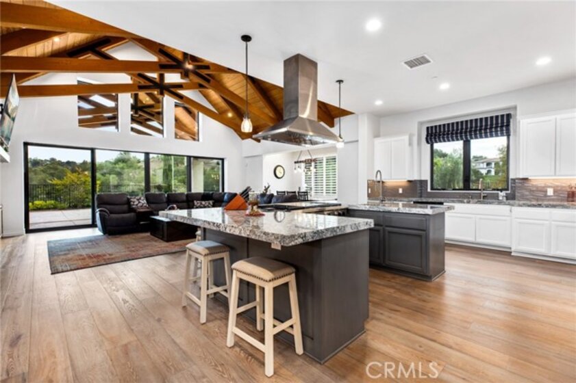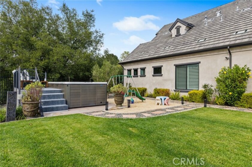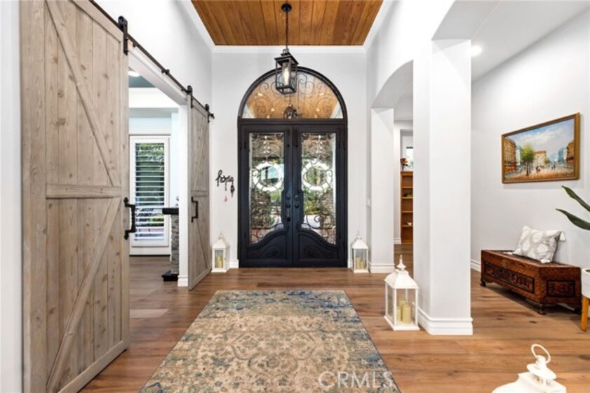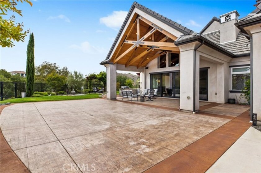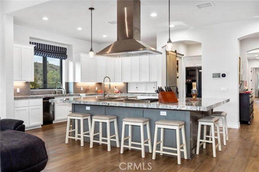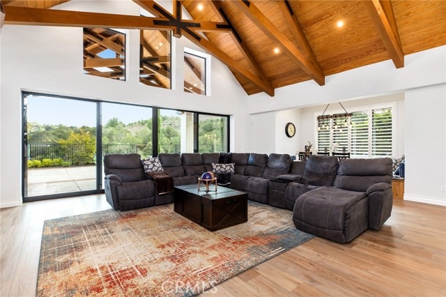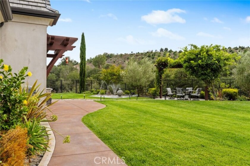 Exquisite single-story estate nestled in Temecula’s prestigious De Luz community—a rare blend of sophistication, functionality, and serene country luxury just minutes from town. Nearly 4 acres of usable land, this 4,280 sq ft custom home is framed by 360-degree panoramic views offering total privacy and timeless elegance from every angle. From the moment you arrive through the private gated entrance and long scenic driveway, the property commands attention with modern architecture, lush landscaping, and grand covered entry accented by custom double doors. Inside, the home opens to a soaring foyer and expansive great room highlighted by exposed wood-beam ceilings, cantina-style doors, and California room with multi-panel sliding doors and grand stone fireplace—perfectly designed for seamless indoor-outdoor entertaining. The chef’s kitchen is a true masterpiece, featuring an oversized island with seating for up to 10 comfortably, top-of-the-line appliances, walk-in pantry, and additional prep kitchen—ideal for hosting at scale. Flowing effortlessly into the family room and outdoor spaces, every detail was thoughtfully curated for comfort and connection. The primary suite is a luxurious retreat- offering direct patio access, two walk-in closets with custom cabinetry, and spa-inspired bathroom featuring oversized walk-in shower with dual shower heads and soaking tub positioned beneath an artisan stained-glass window. 4 additional bedrooms are generously sized, including a guest suite with a private entrance and patio, and another with its own wet bar—easily converted into a kitchenette. Spacious executive office with double-door access and views of the mature oak tree completes the thoughtful layout. Outdoors, the estate was custom-built for entertaining and relaxation. Enjoy expansive stamped-concrete patios, outdoor kitchen, splash pad, and oversized swim spa—all surrounded by lush landscaping and breathtaking views. The property also features a newly constructed (2025) 48’×24’ barn-14’ sliding door, picture window, and passenger door - with lower-gate private access—perfect for storage, hobbies, or future customization. Additional highlights include a 3-car garage with epoxy floors, built-in cabinetry, pull-down storage, and utility sink, a large designer laundry room, and a custom walking labyrinth surrounded by fruit trees and scenic garden paths. Every element of this estate was intentionally crafted for the ultimate Temecula, De Luz lifestyle.