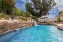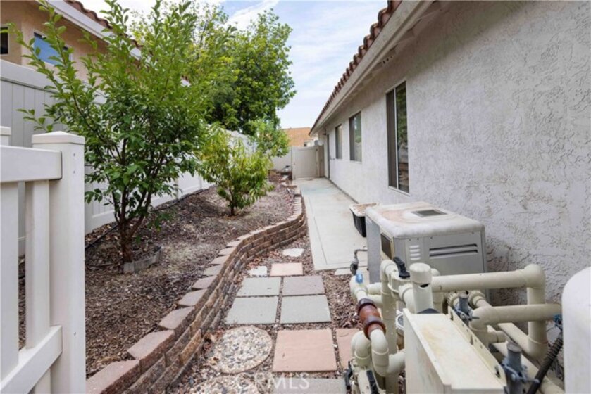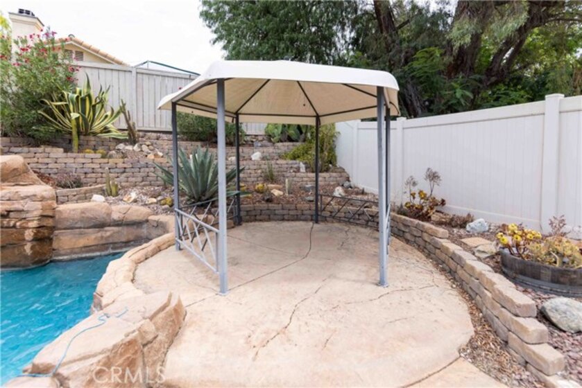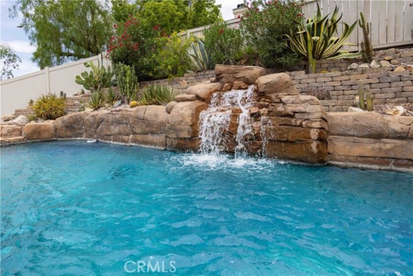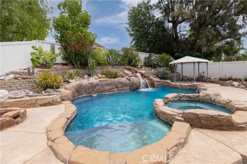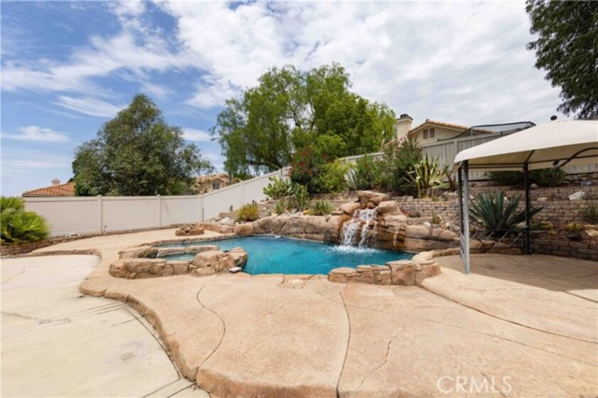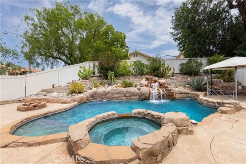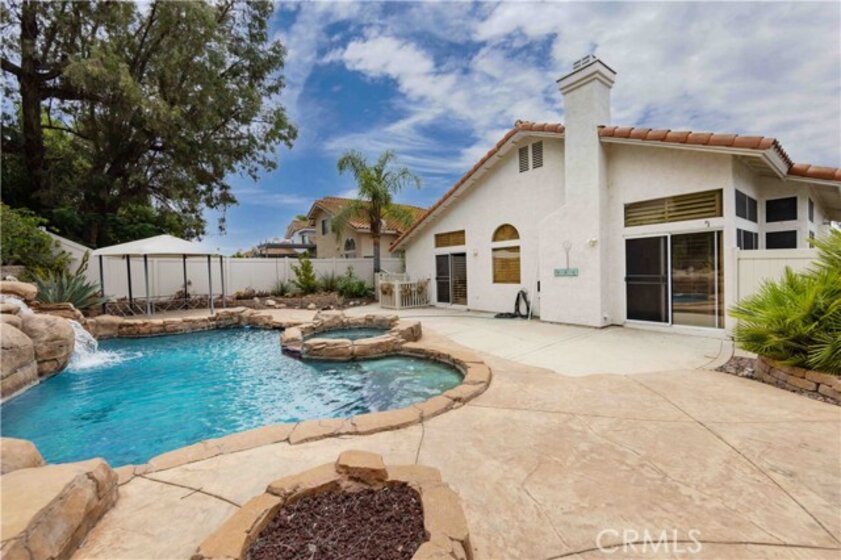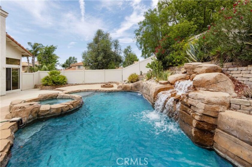 Looking for an affordable pool & spa home in Temecula? You found it! This wonderful single story is situated on a private corner lot in Roripaugh Hills, offering upgrades inside and out. The main living areas include a formal living room, as well as a separate family room. Solid surface flooring, plantation shutters, crown moulding and ceiling fans throughout. Enjoy listening to the soothing waterfall from the master bedroom and family room. Keep cozy on cool nights with the gas log fireplace. The well-appointed kitchen has granite counters, a breakfast bar, self-closing drawers, sliding cabinet shelves, and stainless appliances including a convection oven, convection microwave, and refrigerator. The inviting master bedroom has a double door entry and mirrored wardrobe. Luxurious spa style bathrooms, including self-closing drawers and sliding cabinet shelves in the master bathroom. Convenient inside laundry room includes both washer and dryer. The private back yard is great for relaxing, offering a refreshing pool and spa with a waterfall, a cabana cover, and a variety of fruit trees including plum, avocado, peach and apple. The HOA includes pool, spa, and tennis. Low taxes and assessments. This property is located near shopping, schools, and freeways.