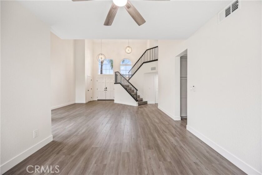 Welcome to Roripaugh Hills — A Home That Truly Has It All. Roripaugh Hills offers a 4-acre park site with a community pool, spa, and two tennis courts. Open daily from 6 a.m. to 10 p.m., the pool is heated from early spring through fall—perfect for year-round enjoyment. This home delivers confidence, comfort, and convenience with a true move-in-ready design where every detail has been thoughtfully upgraded. Located within walking distance of award-winning Chaparral High School and the Promenade Temecula Mall, plus just minutes from the I-15 Freeway, Temecula Wine Country, and Old Town, this property is ideally positioned for both commuters and those who love local lifestyle. Step through the double-door entry into a freshly painted interior with soaring ceilings, modern chandeliers, and a sweeping staircase with custom-detailed bullnoses. All-new dual-pane windows brighten every room. The kitchen is a true centerpiece, showcasing custom cabinetry, NEW Quartzite natural stone countertops, NEW stainless steel LG appliances, and a designer NEW sink and NEW faucet. The adjoining family room features a quartzite stone NEW fireplace surround, creating an inviting flow for gatherings and daily living. Upstairs, every bedroom is enhanced with NEW fandeliers and custom closet shelving. Bathrooms have been fully renovated with NEW marble vanities, NEW modern faucets, NEW elegant tilework, and new plumbing throughout. Additional updates include NEW interior doors, GFCIs, NEW toilets, and NEW exhaust fans. upgrades ensure peace of mind with a brand-NEW HVAC system, NEW AC UNIT, NEW thermostat, and NEW water heater. Outside, enjoy a two-car garage, patio overlooking a pool-sized backyard with fresh sod, and drought-tolerant landscaping with decorative stone and a waterfall entry feature. This home showcases professional renovations with some of the finest finishes available—why worry about future projects when everything has already been done?