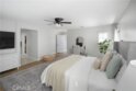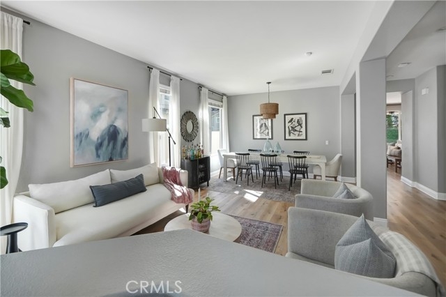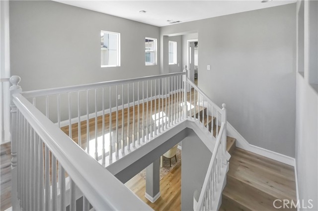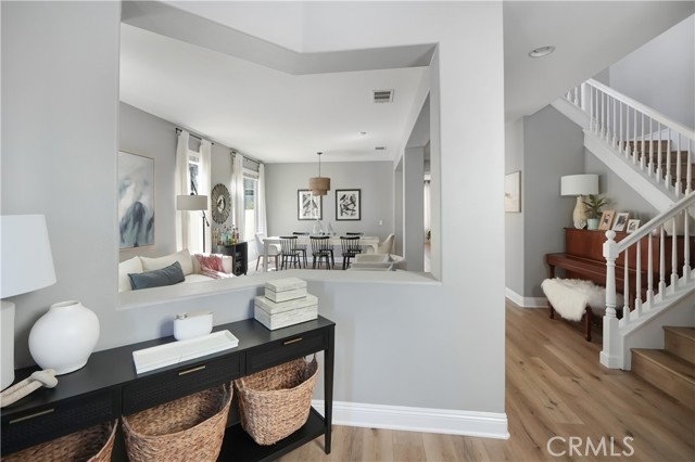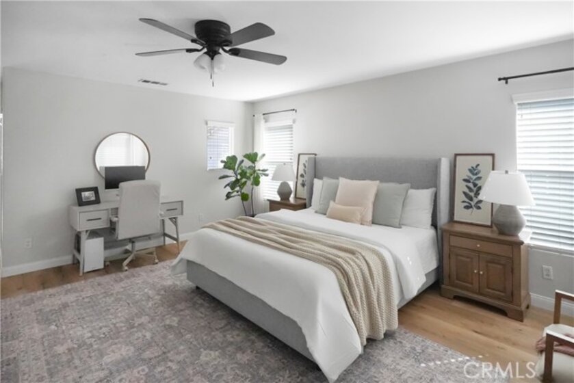 This beautifully upgraded home is located in the Harveston Lake community features a private backyard oasis with a pool, spa, and entertaining area. Enjoy the spacious, light-filled home offering an open floor plan, a main-level bedroom suite with full bath, plus an additional half bath downstairs and additional storage located beneath the staircase. The grand kitchen opens to the family room with built-in shelving and ambient lighting, and there’s a formal dining and living/bonus room on the main level. Upstairs includes a Romeo & Juliet balcony overlooking the entry. A primary suite with upgraded bath (standalone tub, walk-in shower, heated bidet toilet)on one side of the wrap around hallway. Around the corner there are three additional bedrooms and a spacious laundry room. The garage features 2 parking spaces, a converted office in the tandem area, overhead storage, whole-house water filtration, and ethernet throughout the home.