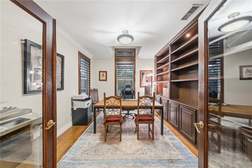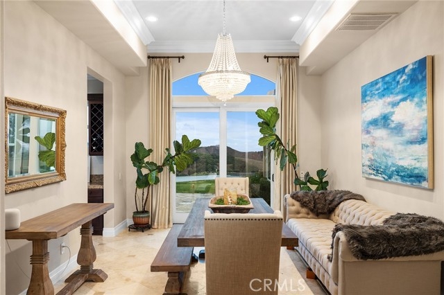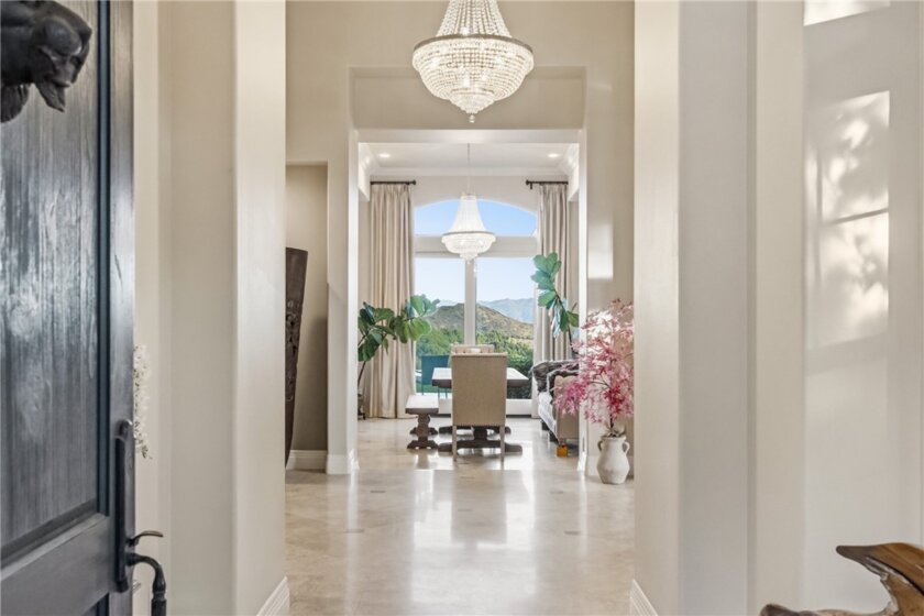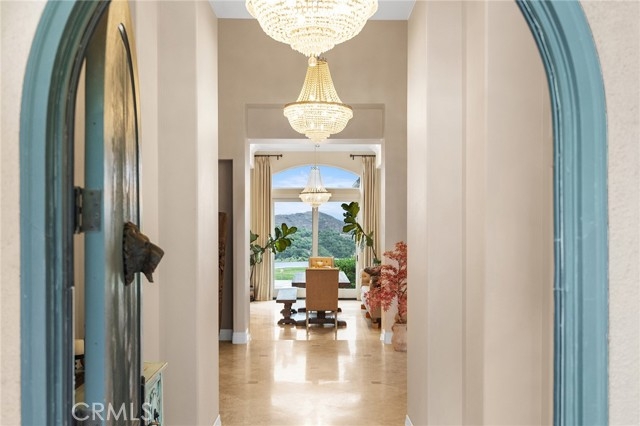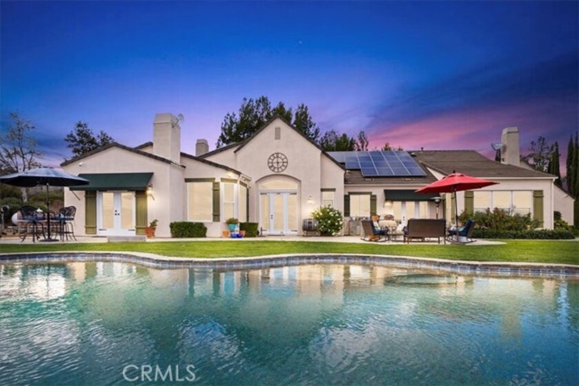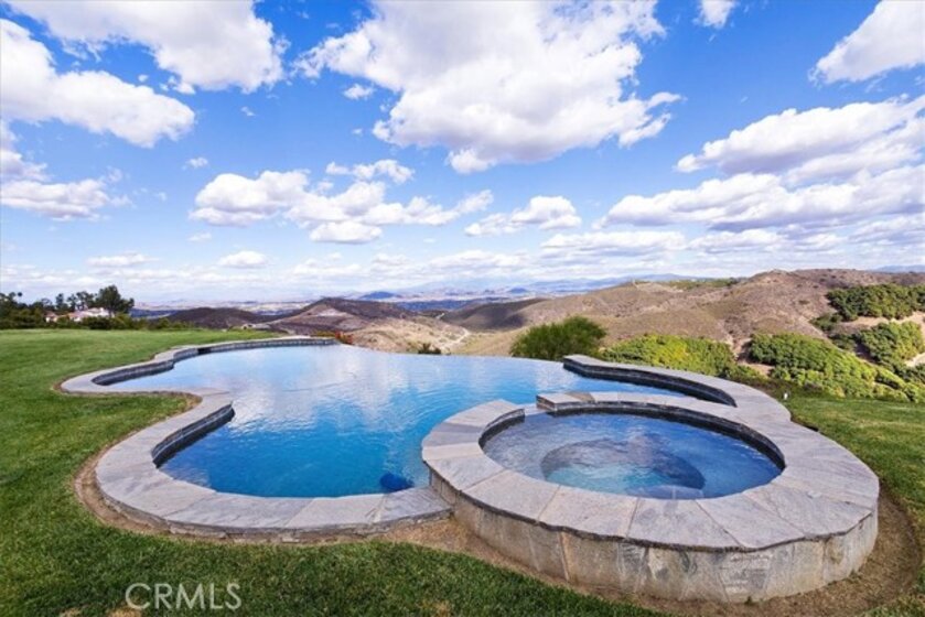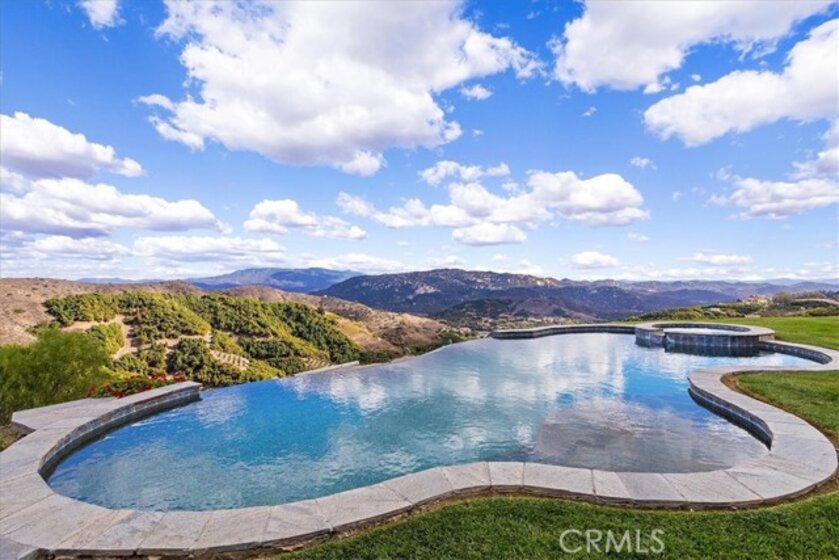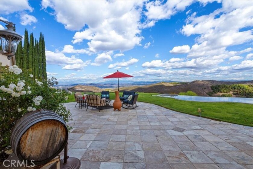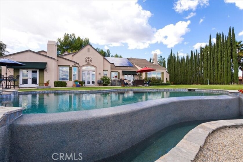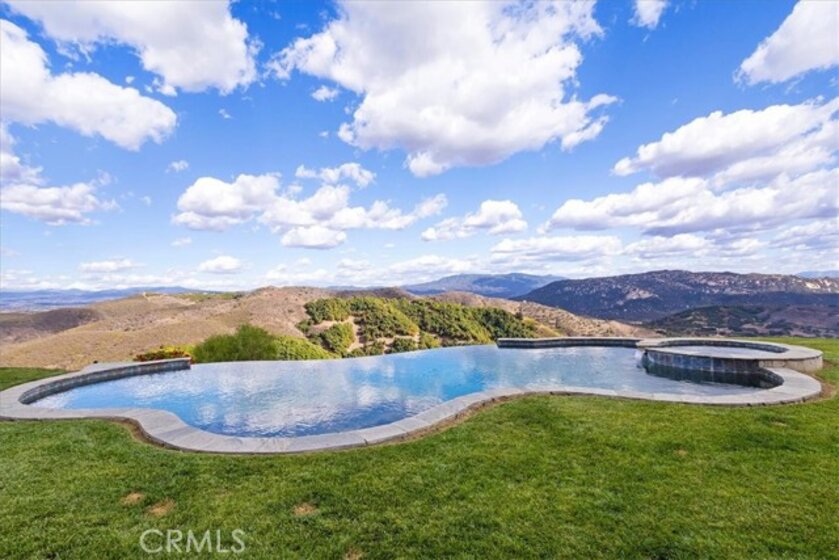 Beyond a private gated entrance lies this exceptional, Single Level, French Country Estate offering 4 Bedrooms, 3.5 Bathrooms, 3844 Sq Ft, (2) 2-Car Garages and a Salt Water Infinity Edge Pool. It's Located at the end of a cul-de-sac on one of De Luz’s most prestigious streets & set on approx 5.7 Acres of beautifully landscaped grounds, with over 150Ft of towering Italian Cypress. Enter into an elegant foyer illuminated by cascading chandeliers, soaring vaulted ceilings, travertine floors, crown molding, and coved architectural details that set the tone for timeless sophistication. This thoughtfully designed Estate features Formal Living & Dining Rooms, an Executive Office, Gourmet Kitchen, Informal Dining & Family Rooms, all blending classic elegance with modern comfort. The Kitchen is the heart of the home featuring a center island, dark brown triple-milled cabinetry with soft-close drawers, granite countertops, & convenient pull-out shelving. The space is equipped with stainless steel appliances, including a six-burner Viking cooktop, overhead range, double ovens, & a walk-in pantry that offers ample storage for all your culinary essentials. The Kitchen opens to an Informal Dining area and Family Room, ideal for everyday living. The primary suite occupies the south wing of the home, serving as a private retreat complete with a fireplace, direct access outdoors, dual walk-in closets, dual sinks, a vanity, walk-in shower, a private water closet & a luxurious soaking tub with a chandelier above. From every room, expansive windows draw your gaze outward, inviting you to experience the beauty that surrounds this extraordinary estate. Nature becomes part of the home, with panoramic 180° views of the rolling mountains, peaceful valleys, and the shimmering city lights of Temecula below. The infinity-edge Pool appears to spill effortlessly into the horizon, serving as the crown jewel of the outdoor living space, evoking the serenity of a world-class resort. The outdoor bar area has a BBQ, countertop seating and a mini frig for entertaining. In the early mornings, a delicate mist drapes across the valley, creating the ethereal sensation of floating above the clouds. It’s a setting that evokes peace, where guests often describe feeling a deep sense of connection to nature, and to something far greater than themselves.This is more than a home, it’s an experience of serenity, beauty, and timeless elegance in one of De Luz’s most coveted, close to town locations.