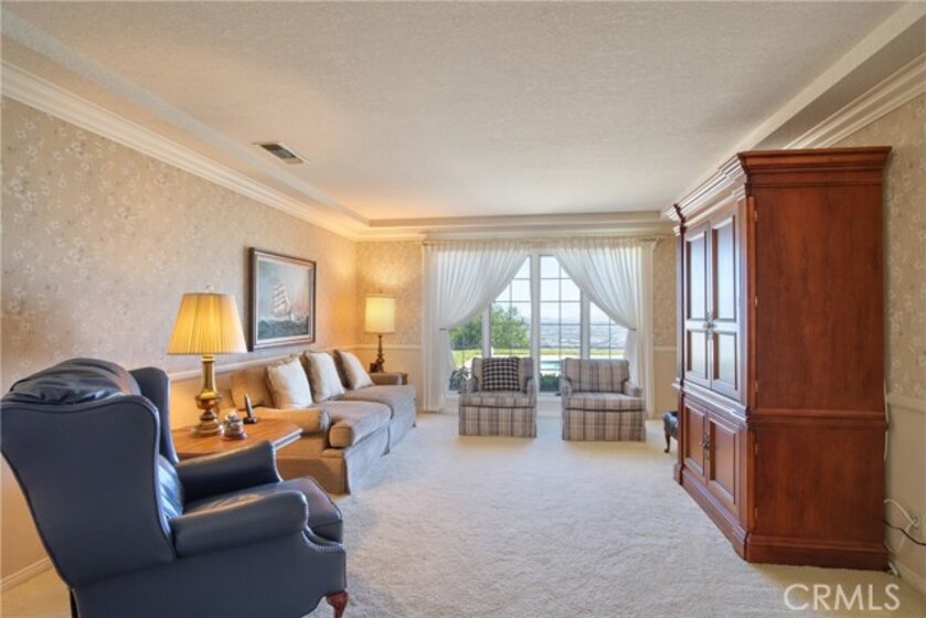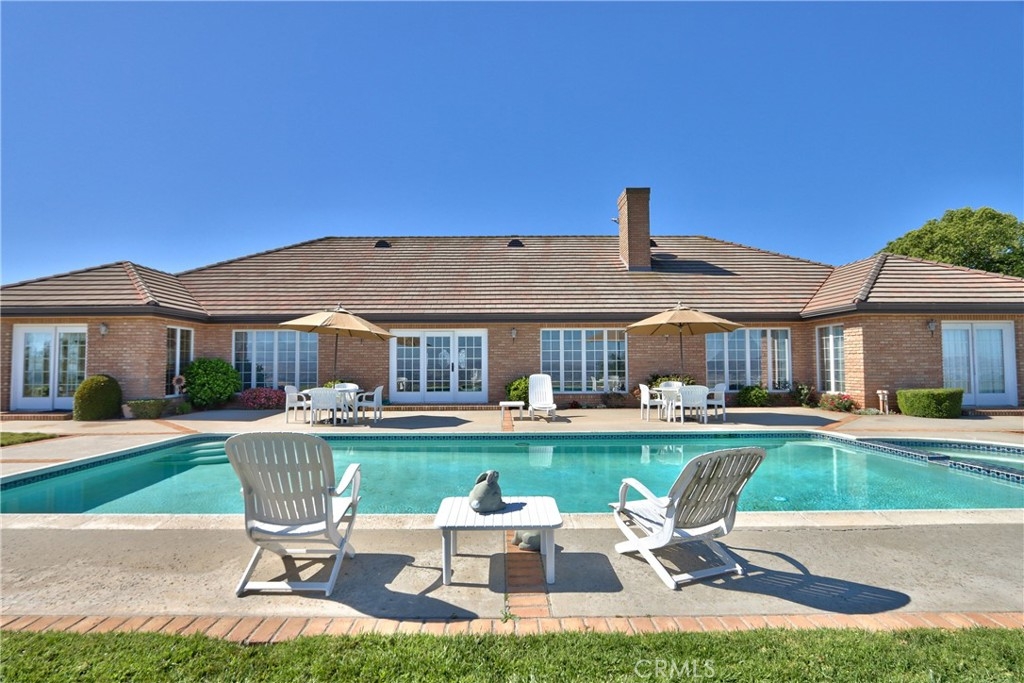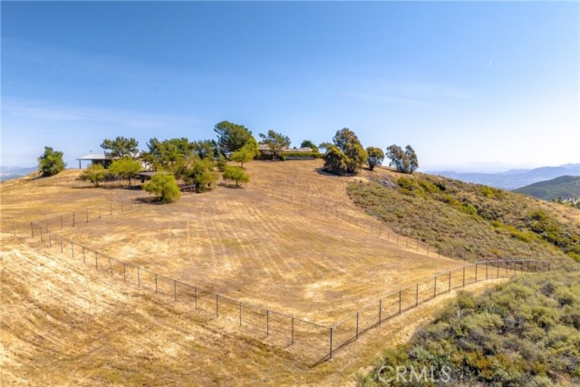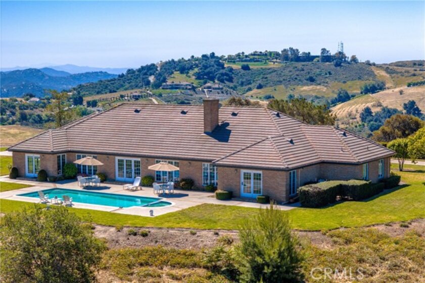 First time on the market, exceptional estate offers sweeping panoramic city light views with a peek of the Pacific, ideally situated in one of Temecula’s most sought-after locations. Perched atop a scenic knoll, the property spans 20 fully fenced acres with a gated entry, large horse and animal facilities. Complete privacy just minutes from I-15 and Old Town Temecula. The custom single-level residence showcases classic French Provincial exterior architecture, originally built in 1984 with timeless brick construction and a durable concrete roof, both meticulously maintained. Designed with a traditional yet functional layout, the home features four bedrooms plus a generously sized office, expansive light-filled living spaces, and floor-to-ceiling windows throughout allow you to capture stunning views from every room. Abundant cabinetry and storage complement the solid construction, offering an ideal canvas for a buyer to update or reimagine to their taste. Outdoor amenities include a pool and open patio surrounded by mature landscaping, perfect for enjoying the tranquil setting. The property also features a separate four-stall barn with two fenced 1+ acre paddocks and an additional 2 stall covered barn. Ample space for additional outbuildings or a guest home, creating potential for a family compound. With no HOA, 5-acre zoning (buyer to verify subdivision potential). The land offers gently rolling terrain and picturesque panaramic vistas.