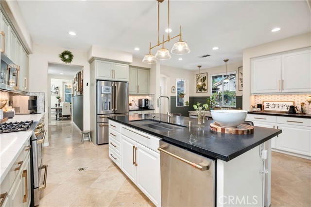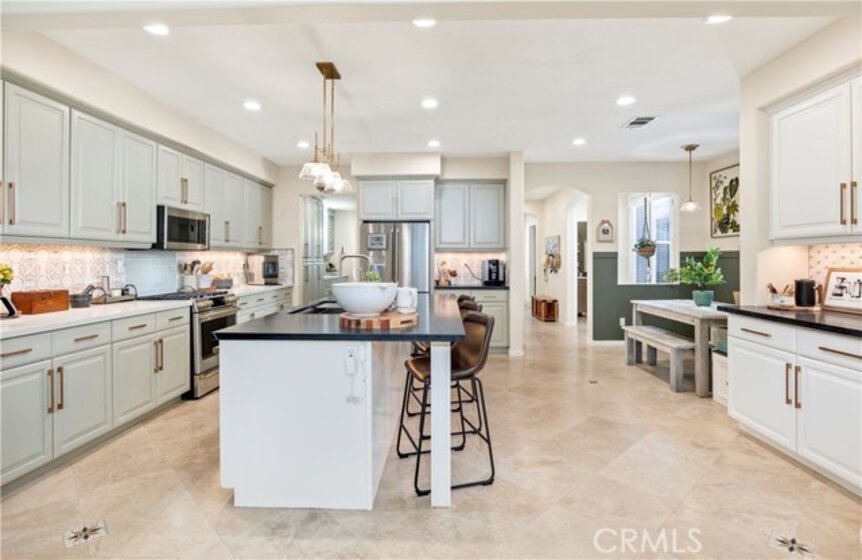 Just 200 Steps from the Lake! Welcome to this stunning remodeled Harveston home offering the perfect blend of modern comfort and timeless charm. Featuring 4 bedrooms, 2.5 baths, and a 3-car tandem garage, this beautiful residence is ideally located just moments from the lake, walking paths, and community amenities. Step inside to a formal living and dining room with elegant designer touches throughout. The upgraded kitchen is a showstopper, featuring Soapstone countertops, GE Café appliances, custom backsplash, pendant lighting, under-cabinet LED lighting, new hardware on all cabinetry, and a new reverse osmosis system. A butler’s pantry off the kitchen provides ample storage and prep space, while the breakfast nook showcases beautiful custom wainscoting, adding warmth and charm. Upstairs, you’ll find all four bedrooms, including a spacious primary suite with walk-in closet, dual sinks, soaking tub, and separate shower. Just off the primary suite is a dedicated tech center, perfect for a work-from-home setup or private study area. The guest bathroom features a brand-new walk-in shower, and the laundry room is conveniently located upstairs for added ease. Enjoy outdoor living in the private backyard with no rear neighbors, complete with an in-ground spa with waterfall and built-in BBQ, ideal for relaxing or entertaining. A gated entry and extra-long driveway offer both privacy and convenience. Recent upgrades include new dual-pane windows, water heater, water softener, reverse osmosis system, new carpet, powder room vanity, updated plumbing and faucets, new toilets, and custom wainscoting — making this home truly move-in ready. Harveston is one of Temecula's most desirable communities, favored by so many for the amenities, olympic sized community pool and splash pad, sports parks, easy commuting, shopping, Ysabel Barnett Elementary and Chaparral High School, and of course the LAKE activities! Close to wine country, Promenade Mall, Old Town Temecula, and the 15 Freeway, come and see why Harveston is at the top of the list for buyers looking for communities to live in Temecula!