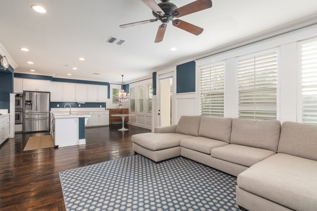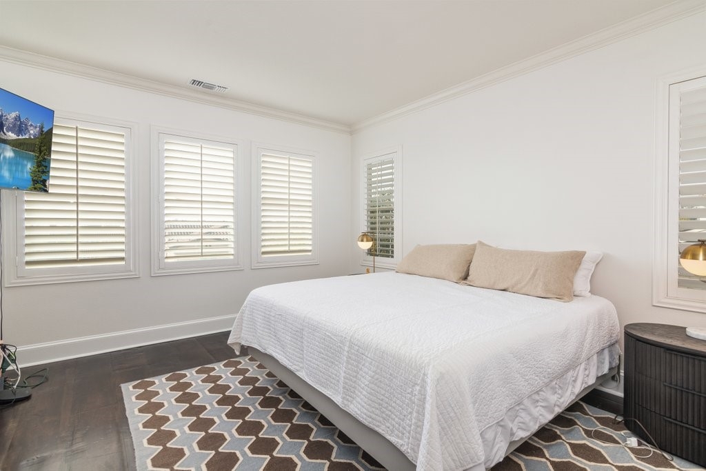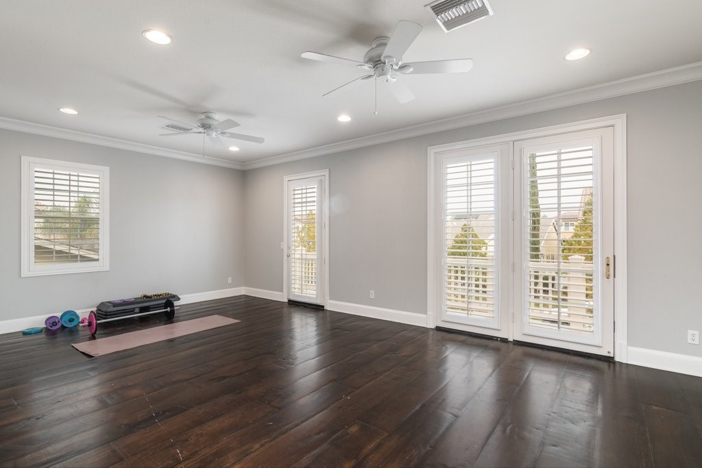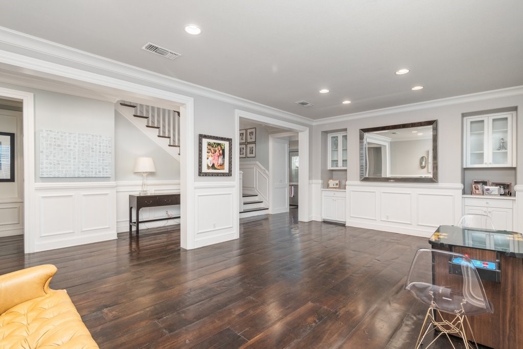 Absolutely gorgeous home located in the highly desirable Harveston community. Turnkey and stunning. This home features millwork in almost every room. Crown molding, wainscot, cased windows and more. Real hardwood walnut floors throughout the home. Upgraded stair banister. There are 4 bedrooms and 4 baths with a flex room and large loft. The loft and a bedroom had doors that open up to a beautiful balcony. 1 bed and one bath downstairs. The kitchen features two ovens. There is a fireplace in the family room. The windows have shutters and above the stairs there are 2 custom beveled windows.. 3 car tandem garage with storage cabinets. Tankless water heater. New HVAC system about 1 year old spent about 30k on. Whole house fan. Community features are fabulous! Junior Olympic size community pool, spa and splash park, 19+ acre sports park, walking/biking path, 17 acre lake, elementary school in development, and clubhouse are just some of the highlights of this development. In the award winning Temecula Valley Unified School District. Close freeway access. Near shopping centers, mall, Lowes, Trader Joes and Costco.
