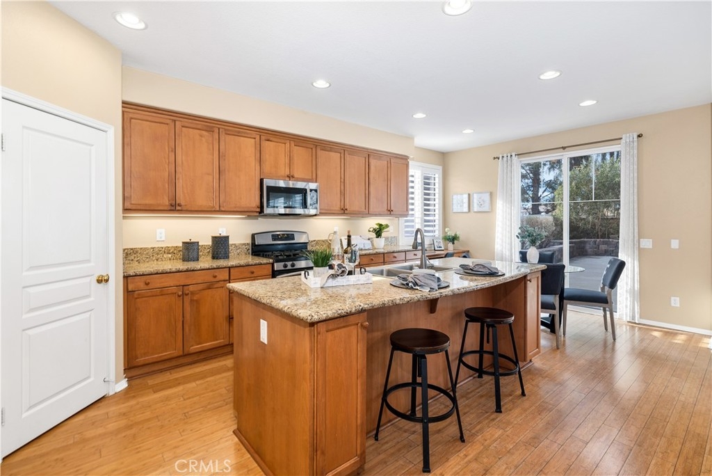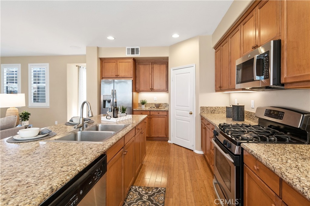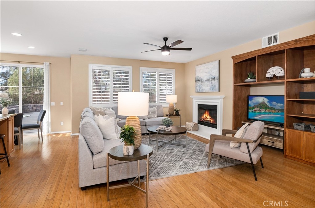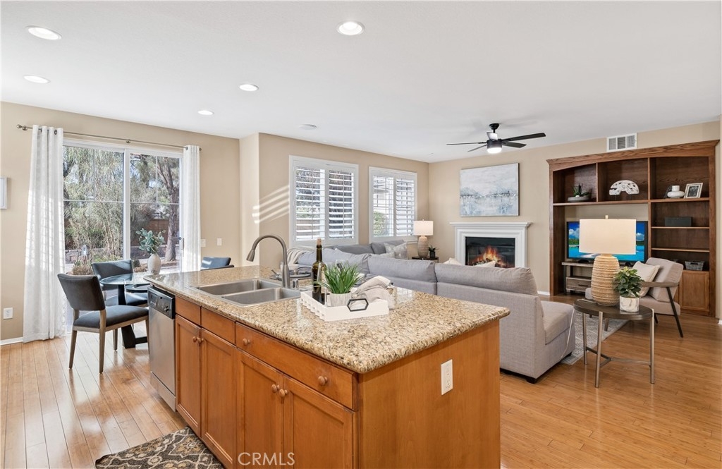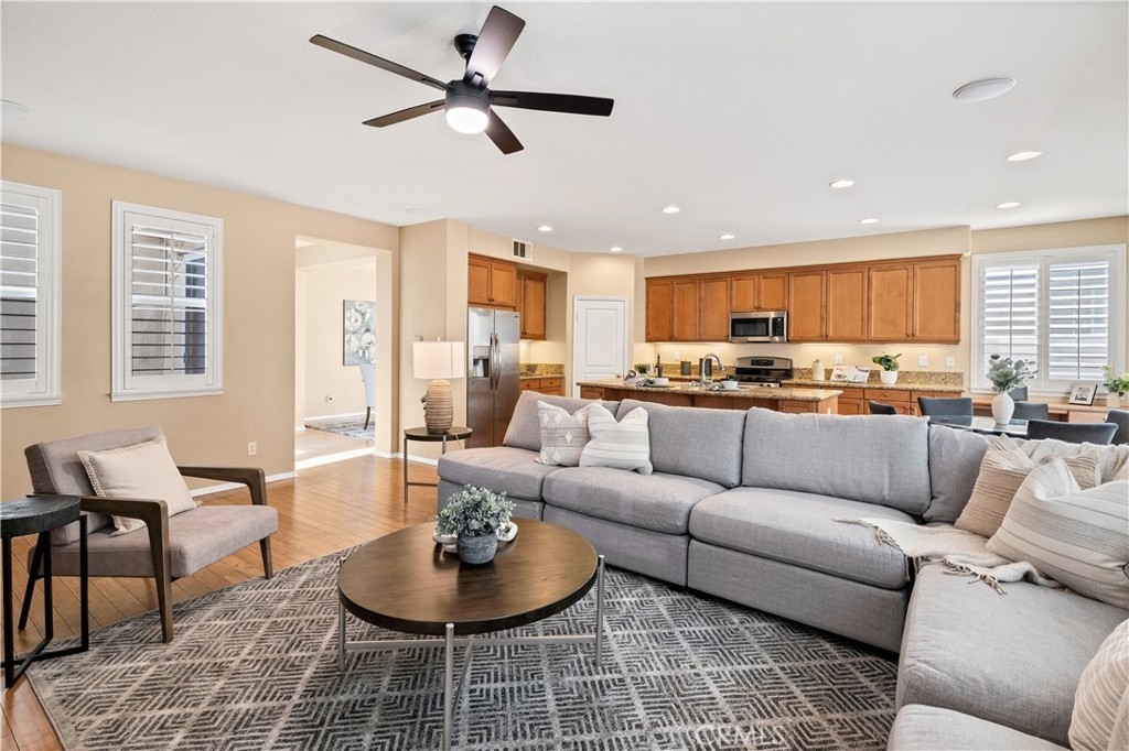 Welcome to this stunning 4-bedroom, 3-bathroom home, plus LOFT conveniently located in the highly sought-after lakeside community of Harveston. Upon entering, you'll be greeted by bamboo flooring that flows throughout the main level, which features a formal sitting room, a sophisticated dining area, a spacious family room, and a well-appointed kitchen. The kitchen boasts beautiful granite countertops, maple cabinetry, and stainless steel appliances, seamlessly opening into the family room, adorned with a cozy fireplace. Plantation shutters enhance the home's aestheticc, providing both privacy and style. The main floor also includes a guest bedroom and a full bathroom, offering convenience and flexibility for guests or family members. Ascend to the upper level, where you will find three additional bedrooms, including an impressive primary suite and Loft which could be convereted into a 5th bedroom.. This tranquil retreat features its own fireplace, a separate shower and soaking tub, as well as a generous walk-in closet. The convenient upstairs laundry area includes a utility sink for added practicality. Additional highlights of this property include a spacious 3-car tandem garage with an extra-long driveway for ample parking and storage solutions. Step outside to your backyard oasis which has room for a pool complete with mature trees, a vegetable garden, and a BBQ area, perfect for entertaining or relaxing amidst nature. Harveston is one of Temecula's most desirable communities, favored by so many for the amenities, olympic sized community pool and splash pad, sports parks, easy commuting, shopping, Ysabel Barnett Elementary and Chaparral High School, and of course the LAKE activities! Close to wine country, Promenade Mall, Old Town Temecula, and the 15 Freeway, come and see why Harveston is at the top of the list for buyers looking for communities to live in Temecula!