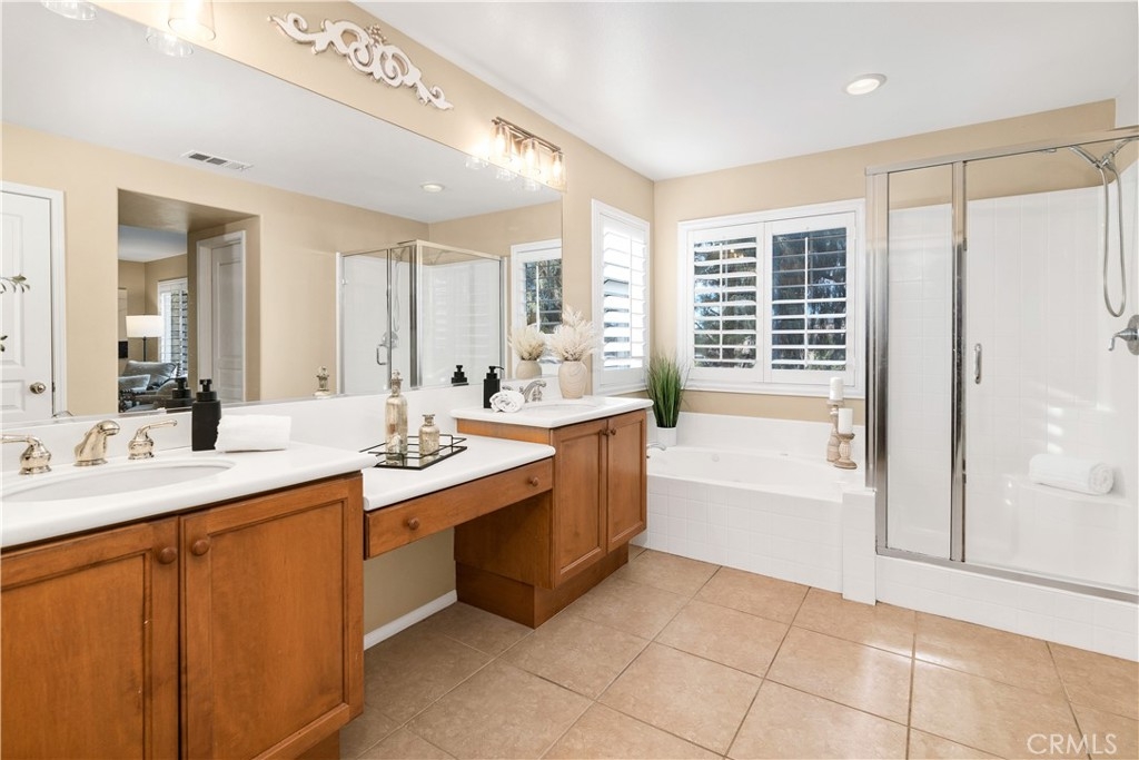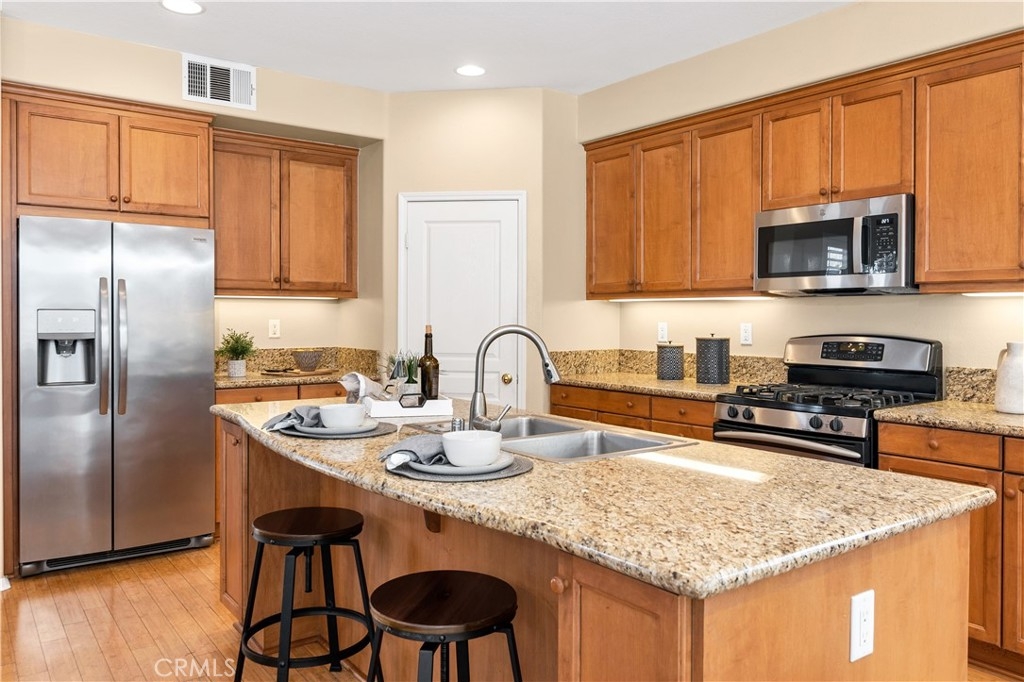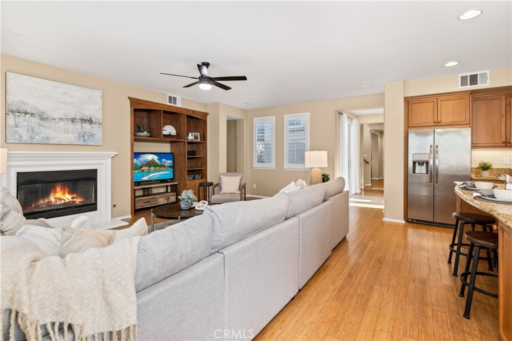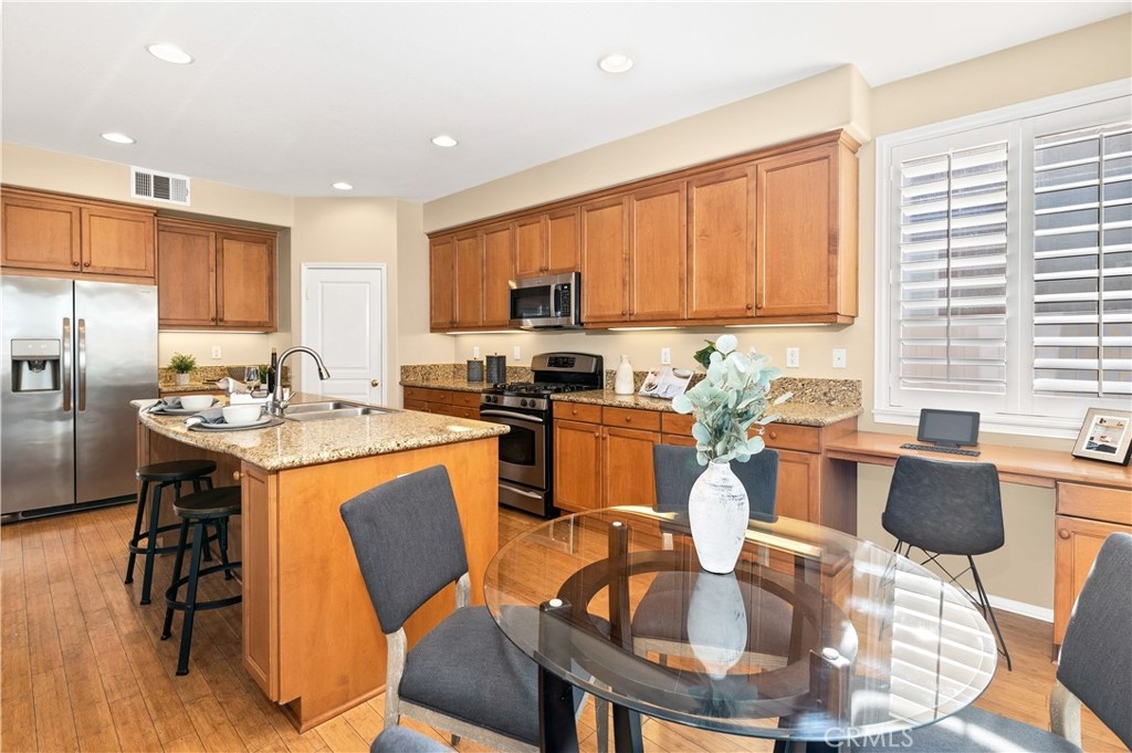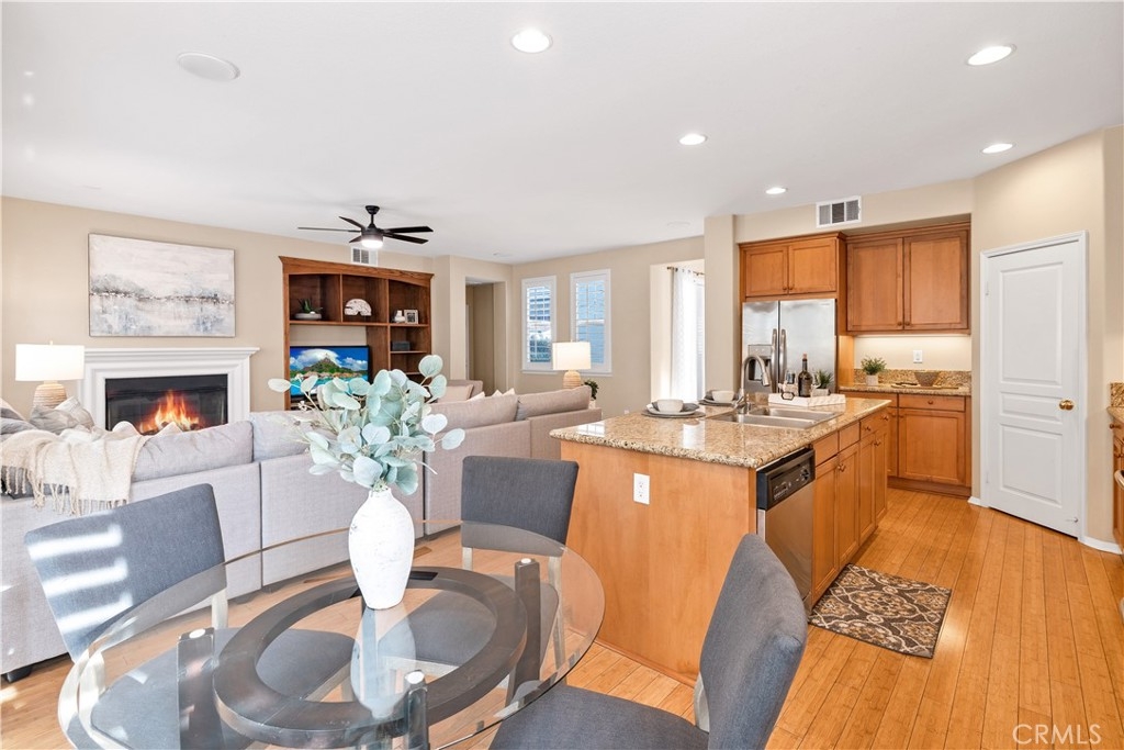 Welcome to this stunning 4-bedroom, 3-bathroom home, plus LOFT conveniently located in the highly sought-after lakeside community of Harveston. Upon entering, you'll be greeted by bamboo flooring that flows throughout the main level, which features a formal sitting room, a sophisticated dining area, a spacious family room, and a well-appointed kitchen. The kitchen boasts beautiful granite countertops, maple cabinetry, and stainless steel appliances, seamlessly opening into the family room, adorned with a cozy fireplace. Plantation shutters enhance the home's aestheticc, providing both privacy and style. The main floor also includes a guest bedroom and a full bathroom, offering convenience and flexibility for guests or family members. Ascend to the upper level, where you will find three additional bedrooms, including an impressive primary suite and Loft which could be convereted into a 5th bedroom.. This tranquil retreat features its own fireplace, a separate shower and soaking tub, as well as a generous walk-in closet. The convenient upstairs laundry area includes a utility sink for added practicality. Additional highlights of this property include a spacious 3-car tandem garage with an extra-long driveway for ample parking and storage solutions. Step outside to your backyard oasis which has room for a pool complete with mature trees, a vegetable garden, and a BBQ area, perfect for entertaining or relaxing amidst nature. Harveston is one of Temecula's most desirable communities, favored by so many for the amenities, olympic sized community pool and splash pad, sports parks, easy commuting, shopping, Ysabel Barnett Elementary and Chaparral High School, and of course the LAKE activities! Close to wine country, Promenade Mall, Old Town Temecula, and the 15 Freeway, come and see why Harveston is at the top of the list for buyers looking for communities to live in Temecula!