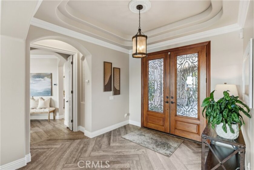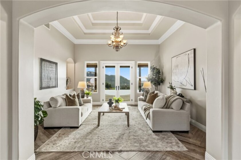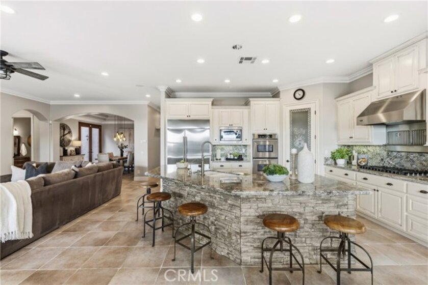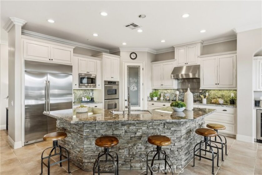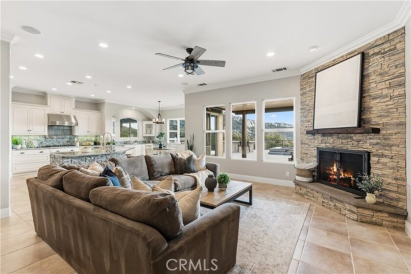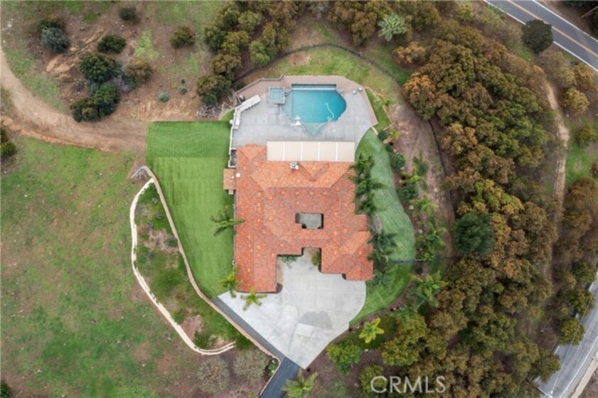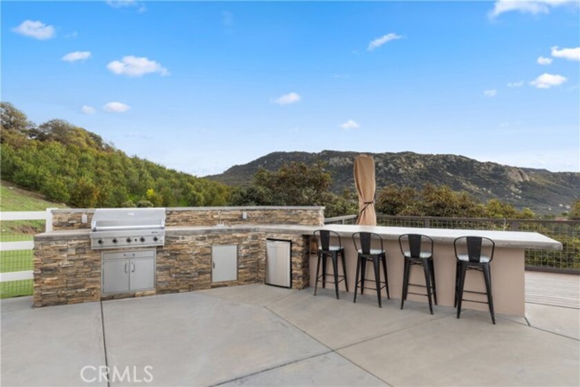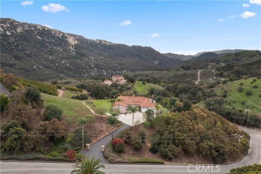 Incredible canyon and sunset views set the stage for this luxury De Luz estate pool home, perched at the end of a private cul-de-sac on over 4.55 acres of productive orchard land overlooking the protected Santa Margarita Preserve. This 4-bedroom, 3.5-bath, 3,272 sq ft residence offers the perfect blend of privacy, elegance, and resort-style living, complete with a breathtaking saltwater infinity-edge pool and spa framed by sweeping hillside vistas. A palm-lined paved driveway leads to a charming courtyard and oversized leaded double doors opening to a light-filled, open floor plan designed for entertaining. Interior features include new interior paint, crown molding, smooth hand-textured walls, graded baseboards, ceiling fans, exterior electric window shades, and carpeted bedrooms. Formal living and dining rooms flow into a welcoming family room with fireplace and a gourmet kitchen featuring a six-burner Viking stove, double KitchenAid ovens, quartz countertops, Bosch dishwasher, walk-in pantry, built-in buffet with wine refrigerator, breakfast bar, and eat-in dining area. The primary suite is a private retreat offering a walk-in closet, spa-style bath with dual sinks, vanity, jetted tub, walk-in shower, and a private office located just off the suite. Two guest bedrooms share a Jack-and-Jill bathroom with dual sinks, providing comfort and functionality. Outdoor living is exceptional with a custom deck surrounding the infinity pool and spa, an Alumawood-covered patio, built-in BBQ, two blue bowl fire pits, outdoor refrigerator, and expansive entertaining spaces ideal for enjoying unforgettable sunsets. The property includes over 200 avocado trees and more than 340 tangerine trees, along with fig, lemon, lime, pomegranate, Asian pear, and olive trees. Additional features include RV parking, room for an ADU, custom chicken coop with run, whole-house fan, dedicated laundry room, ample storage, and a charming half bath with custom wine barrel sink. Located just minutes from Old Town Temecula, wine country, golf, dining, and Pechanga Resort & Casino. Unincorporated Riverside County offers lower tax rates and the option for Temecula or Murrieta schools. A rare opportunity to own a true luxury orchard estate with views, privacy, and lifestyle.