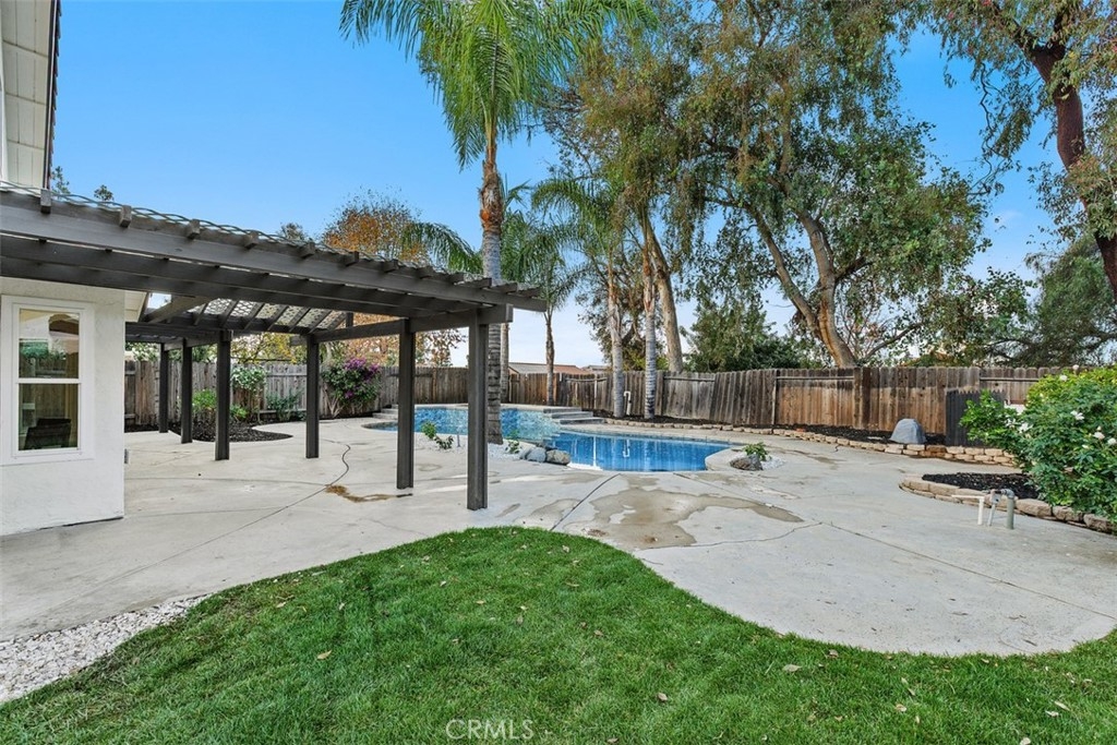 Turn-key Pool Home with Paid-off Solar and No HOA! This stunning, turn-key four-bedroom, three-bathroom residence spans approximately 1,900 square feet and sits on a generous 7,405 square foot lot, offering a rare blend of style, comfort, and functionality. Thoughtfully remodeled, the home features a finished three-car garage, paid-off solar, a brand-new heater, and the added benefit of no HOA. Upon entry, you are greeted by dramatic vaulted ceilings and a light-filled living room highlighted by sophisticated pendant lighting. The space flows effortlessly into the beautifully redesigned kitchen, showcasing white custom shaker-style cabinetry, sleek quartz countertops, a five-burner range, and brand-new microwave and dishwasher—perfect for both everyday living and entertaining. Throughout the main level, luxury stone-inspired flooring, updated baseboards, fresh designer paint, and recessed lighting create a cohesive and modern aesthetic. The main-level guest bathroom has been fully remodeled with a new vanity, while the laundry room offers ample storage with custom cabinetry. An open-concept dining and living area is anchored by a tiled fireplace with a custom mantle and opens to serene views of the backyard. Entire house has updated dual-pane windows with new screens and a duel pane sliding glass door. Upstairs, all four bedrooms provide comfortable living with new luxury laminate plank flooring, new baseboards, new doors, recessed lighting, and ceiling fans, including a beautifully remodeled guest bathroom with a tiled tub and shower and dual-sink vanity. The oversized primary suite serves as a true retreat, featuring vaulted ceilings, expansive windows, a large walk-in closet, and a spa-inspired en-suite bathroom with dual vanities and a walk-in shower complete with a waterfall rain shower head. The backyard is an entertainer’s dream, highlighted by a resort style zero-entry pool with a raised jacuzzi and waterfall, fresh grass and landscaping, and a covered patio ideal for outdoor dining or relaxation. House features a brand new A/C, brand new forced air heater, and 5 year warranty on roof. Conveniently located near shopping, highly rated schools, and just minutes from wine country, this exceptional home offers luxury living with everyday convenience.