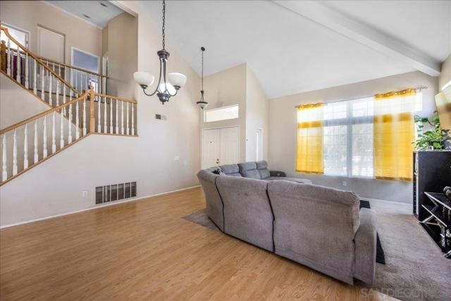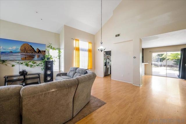 PRICED TO SELL QUICK. NO HOA OR MELLO ROOS IN DESIRABLE NEIGHBORHOOD with close proximity to freeway! Location, Cathedral Ceiling, Open, Light & Bright. This home is truly a gem with very close proximity to freeway for your convenience. Now is your chance to live in a great location! This 4 bedroom/3 full bathroom,2 story home with large 2 car garage conveniently sits in a quiet neighborhood. Bedroom and Full Bath located in first floor. Short distance to Promenade Mall to enjoy shopping and dining, and to Old Town Temecula for more shopping, dining, parks and amenities. Home is equipped with financed solar panels with low monthly fee offering huge savings on electricity costs. Enjoy your large, private backyard relaxing and entertaining in your covered patio. Backyard have fruit bearing trees (Pomegranate, Apple, Tangerine and Lemon). Hurry, priced for quick sell.