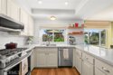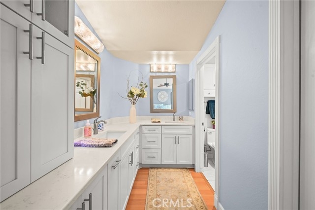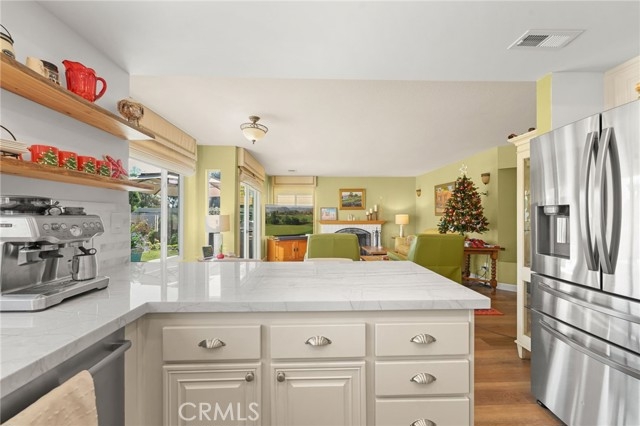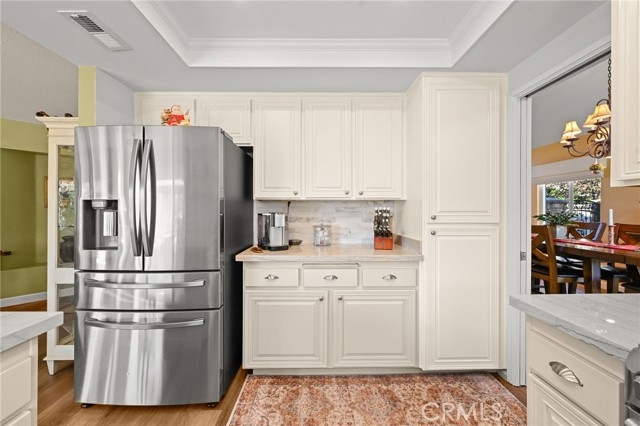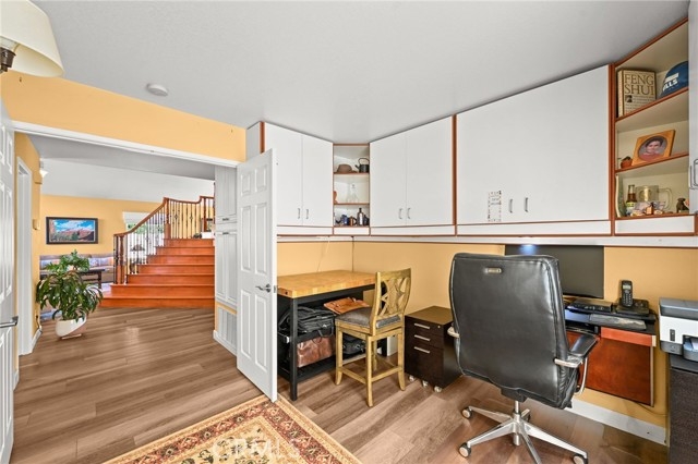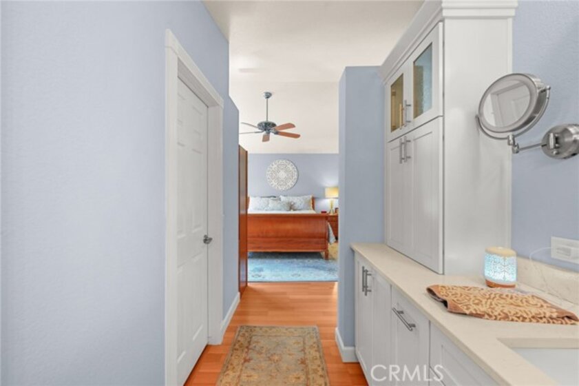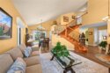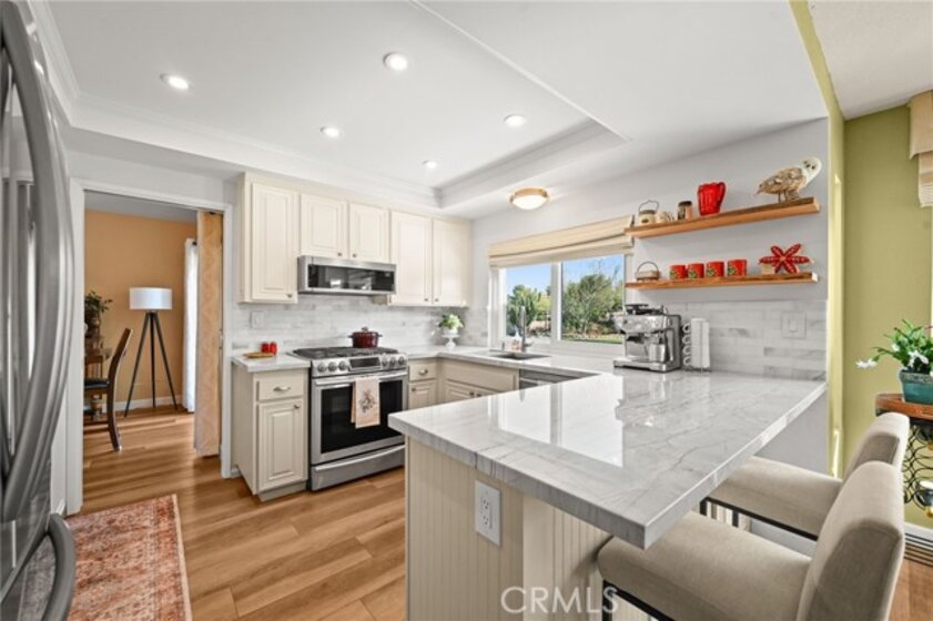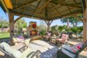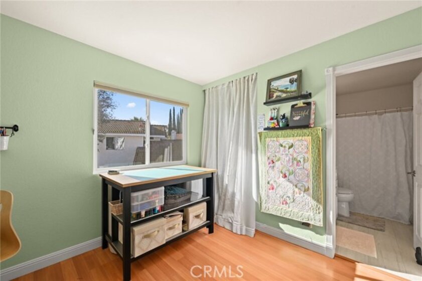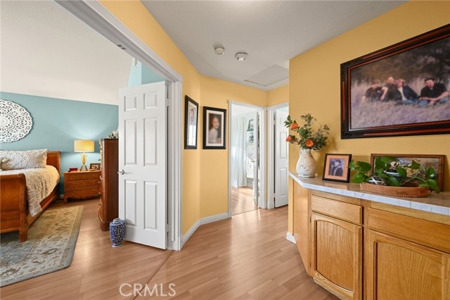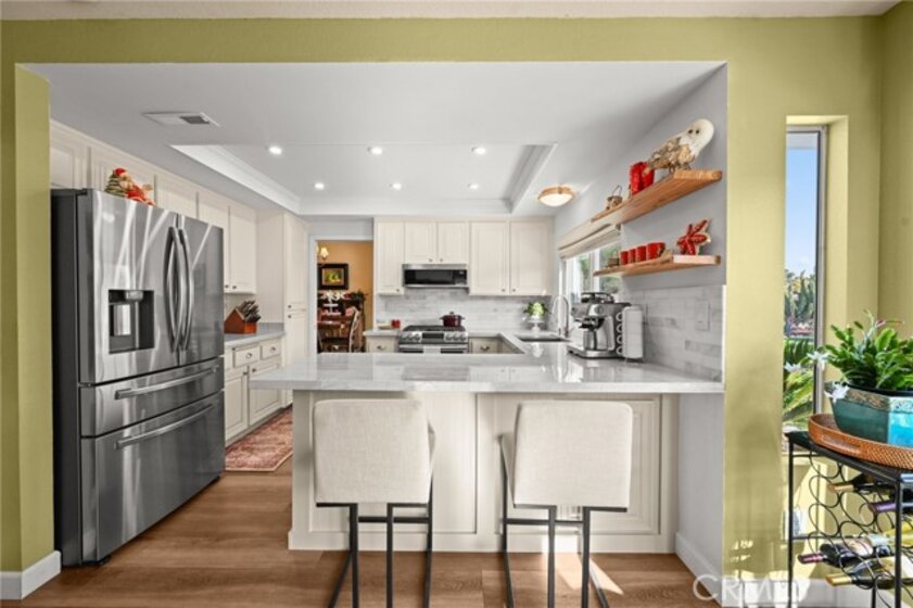 Welcome to this beautifully upgraded cul-de-sac home offering exceptional finishes and thoughtful details throughout. A gorgeous custom hardwood maple staircase with wrought-iron balusters elevates the entry, while dual-pane windows with custom window coverings—including shutters and blackout shades—provide comfort and style. The gourmet kitchen features stunning natural stone quartzite countertops, a marble tile backsplash, a new stainless steel sink and microwave, custom pull-out drawers in the lower cabinets, soft-close doors, and a spacious walk-in pantry. The convenient downstairs bedroom is perfect for guests, and the downstairs bathroom is elegantly finished with a natural stone quartzite countertop. Durable LVP flooring flows throughout the first level. Upstairs, the primary bathroom offers new cabinetry, a sleek quartz countertop, new double sinks & light fixtures and a tiled shower. The Jack & Jill bathroom features a vanity with a marble countertop, tile floor and barn door. The upstairs living areas are complemented by uniform 3M laminate flooring. Stepping outside, the inviting front courtyard features a peaceful fountain and wrought-iron gate, creating a charming outdoor retreat. The oversized backyard is an entertainer’s dream, showcasing two Yardistry wooden gazebos, a custom stone propane CalFlame fireplace, and a 2017 CalSpa. Additional outdoor highlights include vinyl privacy fencing, a dedicated dog run with a custom dog condo, and four large raised garden beds for gardening enthusiasts. Energy efficiency is enhanced by owned solar, offering long-term utility savings. This home is truly one-of-a-kind—move-in ready, meticulously upgraded, and perfectly situated on a quiet cul-de-sac.