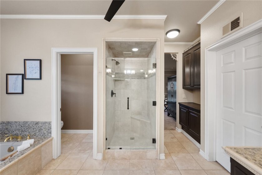 ENJOY SWEEPING TEMECULA MOUNTAIN VIEWS AND BREATHTAKING SUNSETS from this well-appointed Los Ranchitos custom estate! This five-bedroom Cape Cod–inspired residence offers SOLAR and sits on approximately 2.32 acres overlooking coveted South Temecula. A gated private drive leads to an elegant entry with a leaded-glass door, travertine flooring, soaring ceilings, plantation shutters, and thoughtful designer details throughout. The main-level primary suite enjoys its own private deck, a spacious walk-in closet, a jetted soaking tub, dual sinks with a vanity area, and generous linen storage. Two additional bedrooms offer en-suite bathrooms, while two more share a full bathroom with dual sinks and a walk-in shower. The home features a dedicated downstairs office and an expansive formal living room with a brick-accented fireplace, vaulted ceiling, and inviting window seats perfectly positioned to take in the breathtaking views or an afternoon read. The adjacent formal dining room enjoys spectacular views from oversized windows and is enhanced by a chandelier set within a ceiling medallion and framed by crown molding. The beautifully designed kitchen showcases granite counters, a hooded cooktop with tile backsplash, a pot filler, a trash compactor, stainless steel appliances, a GE Monogram built-in refrigerator, a bay window, a large built-in buffet with storage, and a charming breakfast nook. Overlooking the dining room is the warm and welcoming family room, complete with a second fireplace and two sets of double doors opening to a covered patio with a gas firepit, creating a seamless indoor-outdoor living experience! Just off the kitchen, the lower backyard hosts a built-in BBQ island with bar seating—ideal for effortless summer gatherings—while the expansive rear and side yards offer abundant space for a pool, sport court, barn, RV parking, or other custom amenities. With nearly 3,800 square feet of living space, this home offers comfort, versatility, and room for multi-generational living. Located in the prestigious Los Ranchitos community—known for its horse trails, custom estates, and unbeatable proximity to Temecula’s dining, shopping, award-winning schools, wineries, and entertainment—this exceptional slice of Southern California is one you won’t want to miss. Schedule your private tour today.