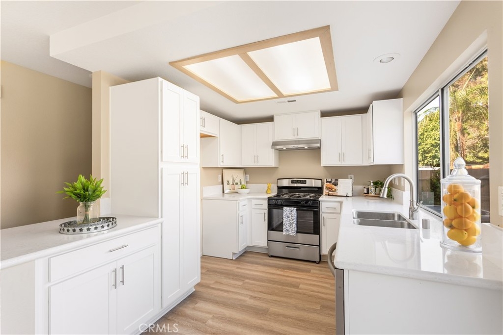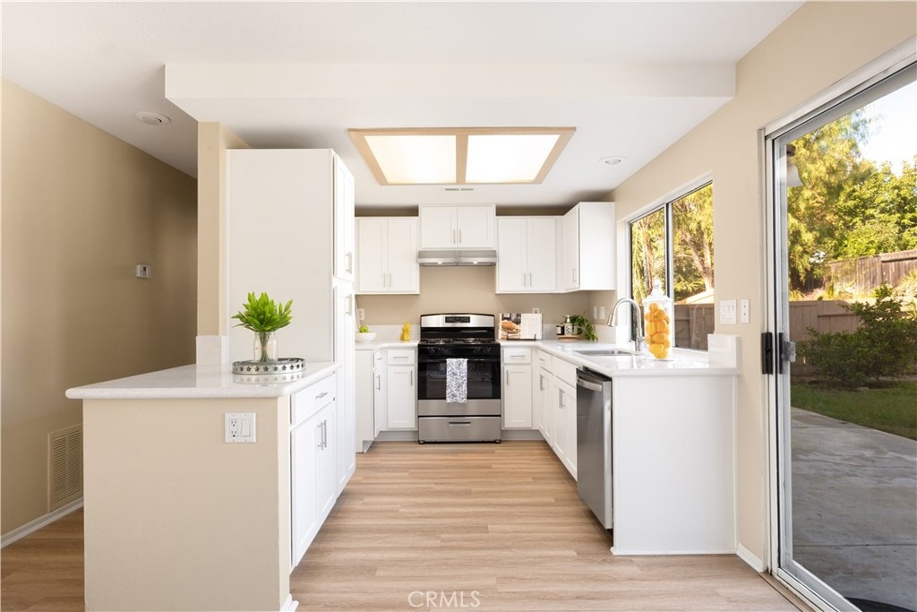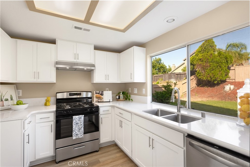 Discover this affordable and beautifully remodeled, fully turnkey, move-in ready, 4-bedroom home perfectly situated in one of Temecula’s lowest tax rate areas — with no HOA! Enjoy the freedom of homeownership without extra HOA fees and stifling oversight, all while being zoned for the highly rated Temecula Unified School District. Ditch the high prices of San Diego and Orange County and move into an area where value meets lifestyle! Situated in a cul-de-sac, this bright and spacious starter home (with plenty of room to grow into) welcomes you with soaring ceilings, abundant natural light, and a flexible floor plan featuring a main-level bedroom and full bath — ideal for guests, multi-generational living, or a home office. Step into the stunning brand-new kitchen, complete with white shaker cabinetry, soft-close drawers, quartz countertops, new stainless-steel appliances, and additional counter space that opens to the living area. Modern LVP flooring, fresh neutral paint, and brand-new carpet throughout give this home a crisp, modern feel. Every detail has been upgraded — from new six-panel doors, closet sliders, and vanities in all bathrooms, to updated lighting and plumbing fixtures. The HVAC system and water heater have also been replaced in recent years for peace of mind. Outside, the spacious backyard offers endless possibilities — plenty of room to design your dream pool, add a garden, or create a private outdoor retreat under Temecula’s blue skies. Conveniently located near top-rated schools like Chaparral High, shopping, Promenade Mall, restaurants, parks, and Temecula Wine Country, this home is a great value for the area and delivers the best of Southern California living with no HOA and low taxes. Don’t miss your chance to own a beautifully updated home in a sought-after area that combines freedom, comfort, and location — all in one incredible package!