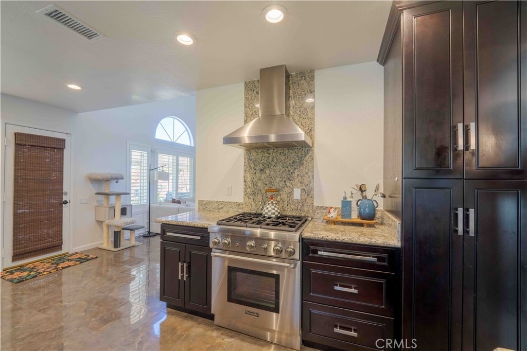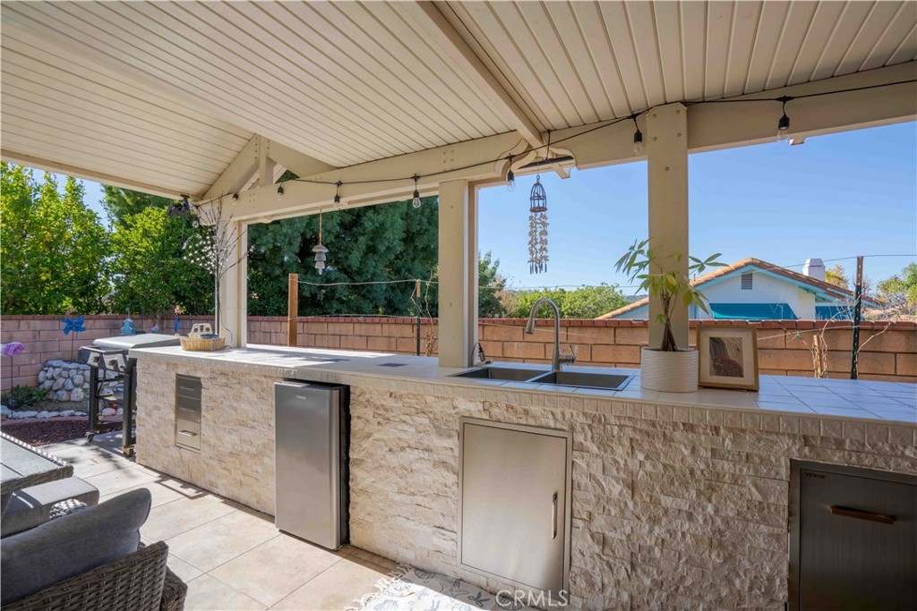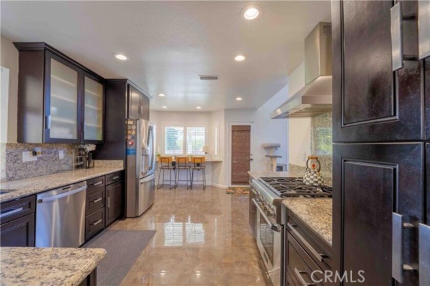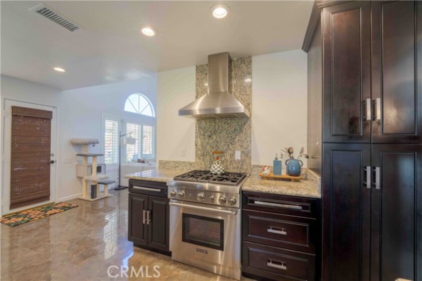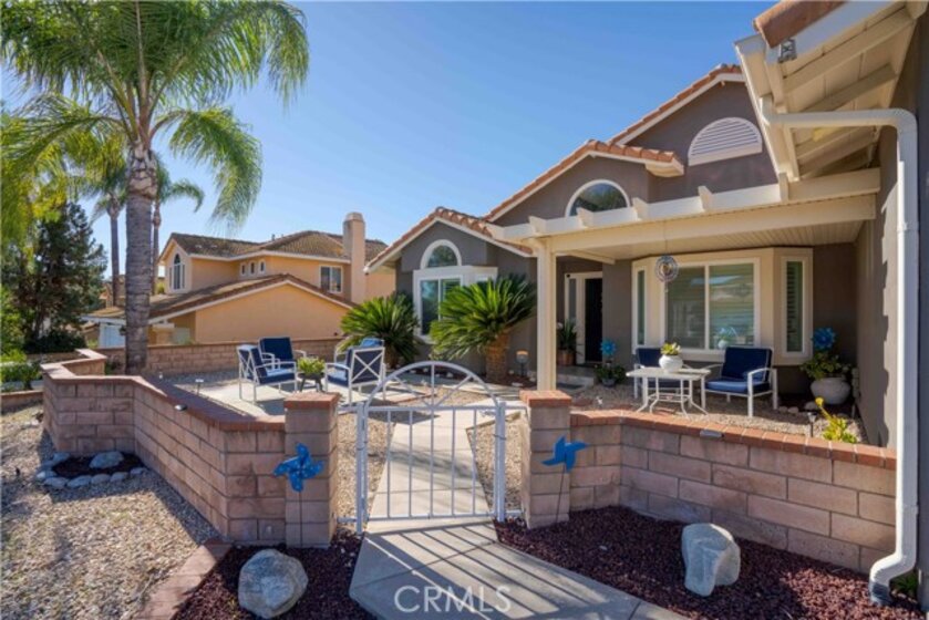 Welcome to 30519 Colina Verde. An elevated living in the Heart of Temecula! This stunning 2,037 sq ft remodeled single-story home offers panoramic views and modern luxury. An enclosed gated courtyard leads into an open floor plan featuring vaulted ceilings, wood & tile flooring, and abundant natural light via elegant bay windows. The chef’s kitchen is a showstopper with new cabinetry, granite counters, and a premium Thermador range. Relax in the spacious family room by the stately fireplace or retreat to the primary suite featuring a soaking tub, tiled shower, and walk-in closet. Energy efficiency is unmatched with two solar systems (one fully paid, one leased, and two (2) Tesla battery packs. Upgrades include dual-pane vinyl windows, louvered shutters, and fresh interior paint. Outside, enjoy the view under a full-length alumawood patio cover, newly built in stone barbeque surrounded by drought-tolerant landscaping. Conveniently located near Temecula’s best amenities—this rare single-story gem is a must-see!