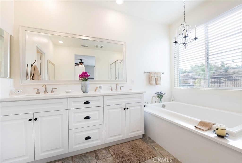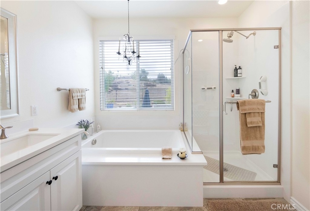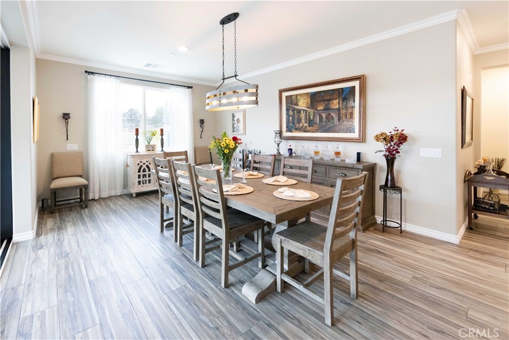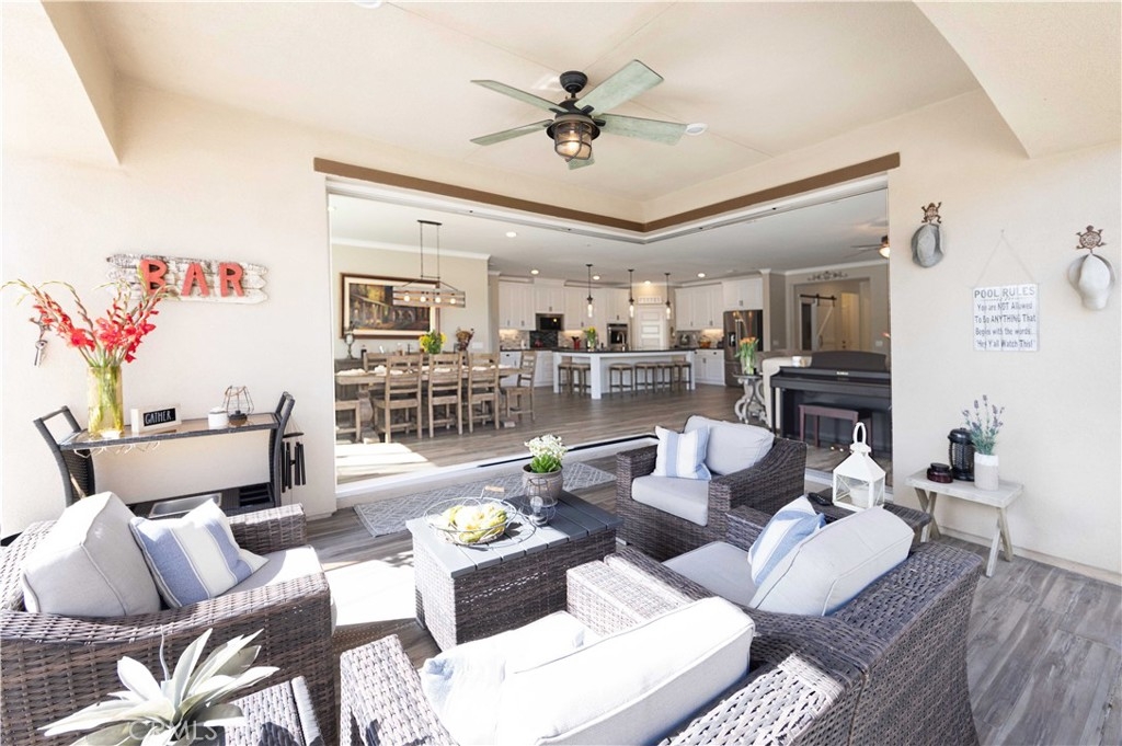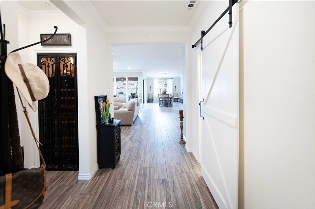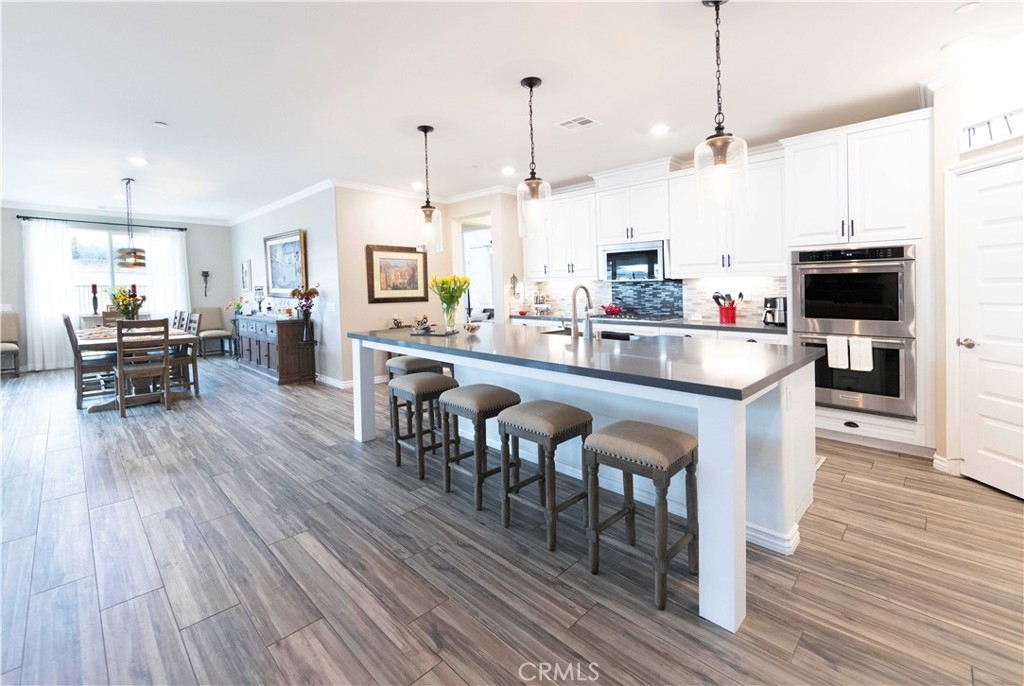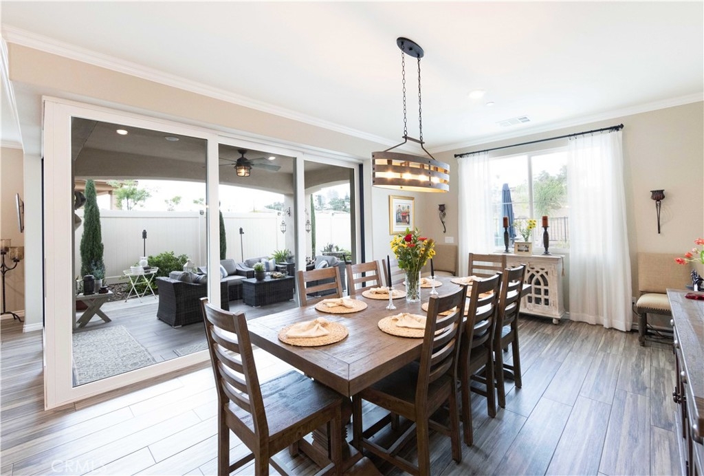 Exceptional luxury single-story residence in the highly sought-after gated Nicolas Heights community. Situated on a premium lot with scenic backyard views and enhanced privacy, this beautifully upgraded home features an open floor plan with crown molding and wood-look tile flooring throughout. Designed for indoor-outdoor living and effortless entertaining, corner sliding doors disappear into the walls, opening to a resort-style backyard oasis with a covered California room, professionally maintained pool and spa with Baja shelf, outdoor kitchen, and gas fire table. The chef’s kitchen offers a large center island, double ovens, custom quartz countertops, white cabinetry with new pull-out shelving, glass backsplash, spacious pantry, and high-end stainless steel appliances. The primary suite features a private en-suite bath and custom walk-in closet. A guest suite with en-suite bath and walk-in closet provides ideal privacy, while two additional bedrooms share a full bath with double vanity. Additional highlights include a three-car garage with built-in storage, indoor laundry with cabinetry, leased solar, tankless water heater, and smart-home technology with Ring security. Residents enjoy community amenities including a splash-pad park, dual gated entrances, and pedestrian access. Ideally located near Temecula’s award-winning wineries, Old Town, shopping, dining, and top-rated schools.
