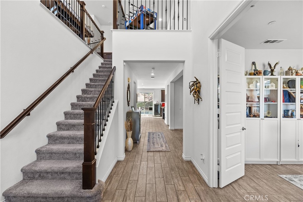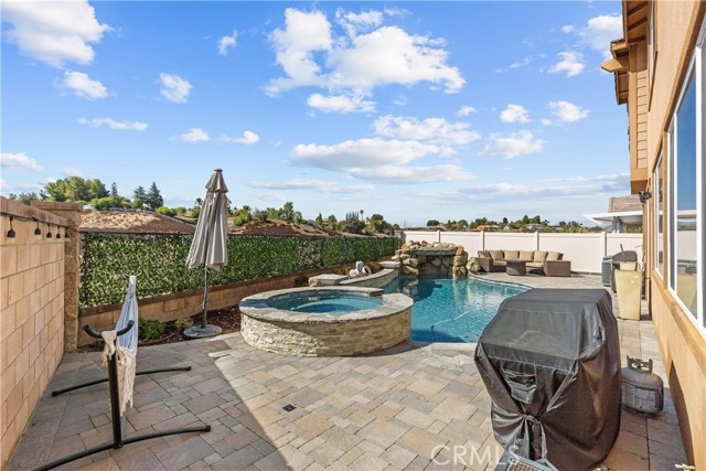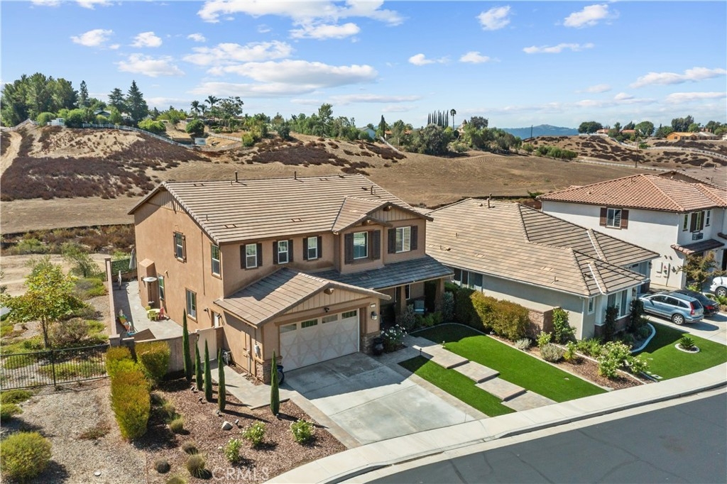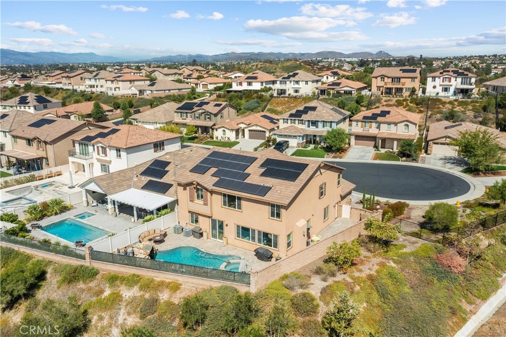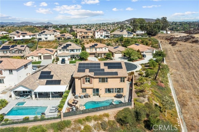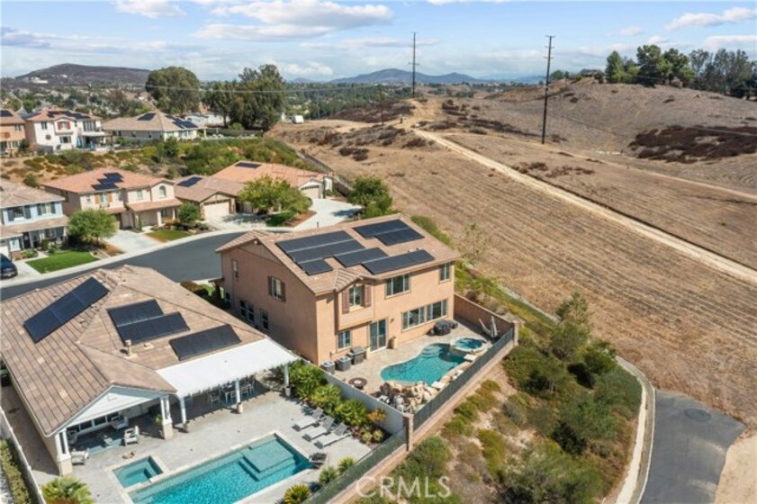 Welcome to this stunning 5-bedroom, 3.5-bath home in the gated Nicolas Heights community of Temecula. Offering 3,648 sq. ft., a 3-car tandem garage, and 24 solar panels that will be paid off at close of escrow, this home blends comfort and efficiency. Tucked at the end of a cul-de-sac with no neighbors behind or to the right, you'll enjoy wide-open meadow views and beautiful sunsets. Inside, the open floor plan features a downstairs office, a convenient first-floor bedroom, and a chef's kitchen with granite countertops, stainless steel appliances, a center island, and double ovens that flow seamlessly into the family room filled with natural light. Upstairs, a spacious loft leads to four bedrooms and the laundry room, including a primary suite with a soaking tub, walk-in shower, and walk-in closet. Step outside to your private retreat with a pool, spa, and waterfall feature. All this in a gated community just minutes from award-winning Temecula wineries, top schools, shopping, and dining.