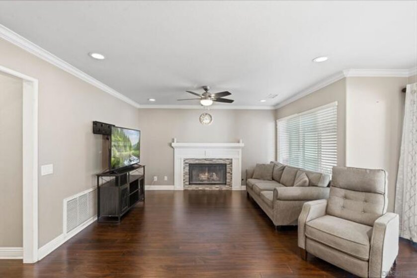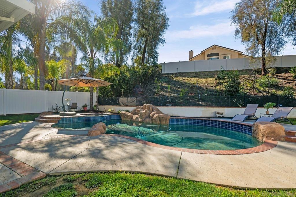 WELCOME HOME! highly desirable neighborhood. Thoughtfully designed floorplan features a main-level BR & full BA—ideal for guests or multigenerational living. Interior highlights include Nest HVAC, whole house fan, dedicated laundry rm & inviting FP. Well-appointed kitchen showcases lazy Susan pantry cabinet & upgraded roll-outs in select cabinetry. Home alarm system + Ring doorbell. Impressive 3-car garage w/ gated RV/boat parking. Resort-inspired backyard w/ in-ground pool & spa, covered patio & smart WiFi sprinkler system. Recent pool enhancements incl new pump, new vacuum & new filter grids; pool recently drained, acid washed & refreshed. Expansive rear hillside newly cleared & enhanced w/ young fruit trees incl banana, apricot, plum, avocado, orange, lime & grapefruit. 3 exterior security cameras included. Located near highly rated schools. Low HOA! DON’T MISS OUT!
