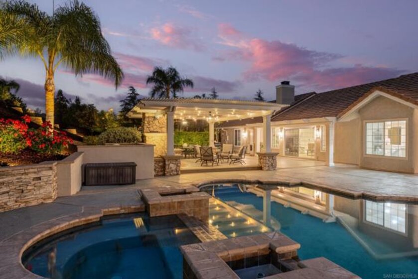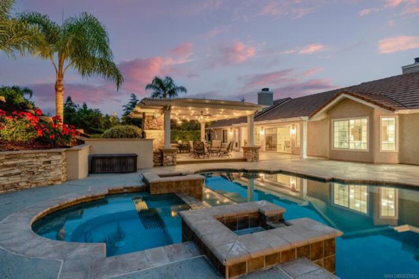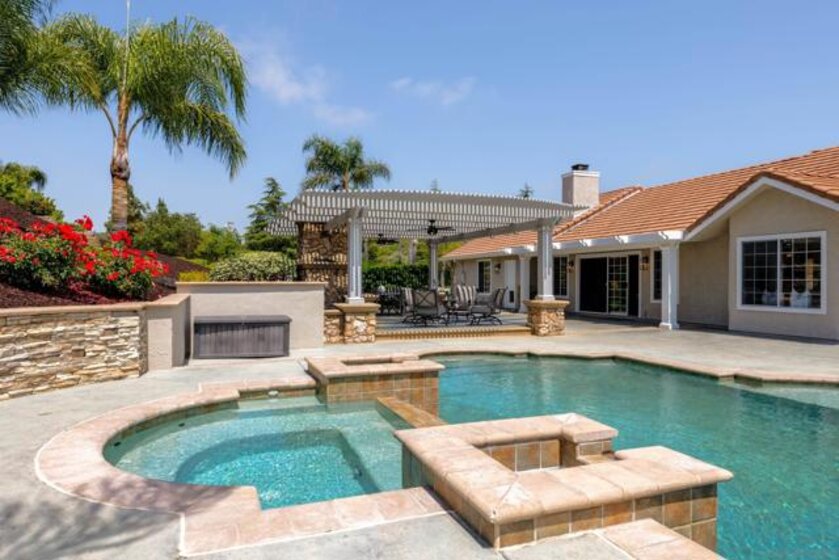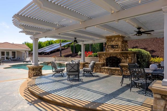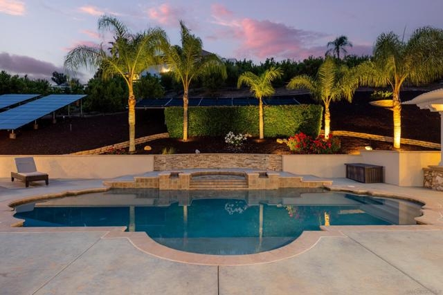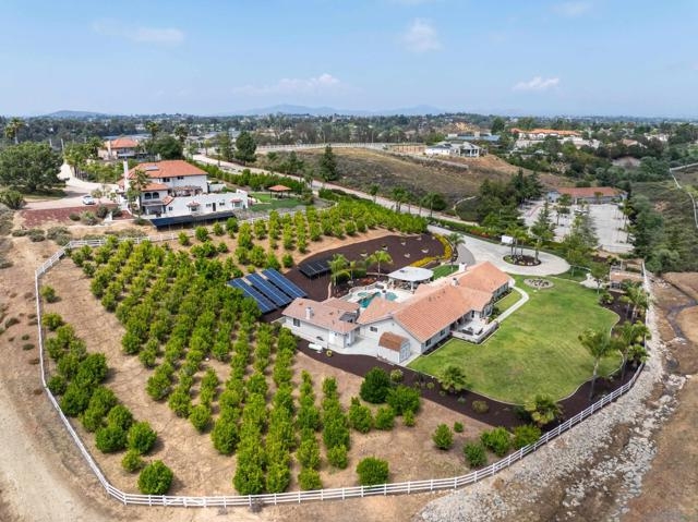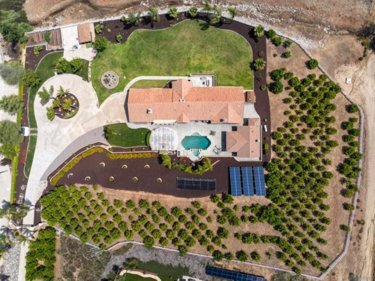 Welcome to your private slice of countryside in the heart of Temecula. Behind the gates, 3.75 acres unfold into a self-sustaining oasis where luxury meets everyday ease. The 3,800 sq. ft. main home blends elegance and comfort with 4 bedrooms, a home office, and a chef’s dream kitchen featuring Thermador appliances and a custom oversized island made for gathering. Outdoors, life feels like a vacation. A sparkling heated pool and spa, covered outdoor living room with fireplace, and spacious lawns invite year-round entertaining. Guests will love the 800± sq. ft. pool house with full bath and Sub-Zero wine fridge—or claim it as your personal studio or retreat. Designed with sustainability in mind, this estate runs on fully owned solar and low-cost ag-zoned water. A producing mandarin grove, fruit trees, and gardens keep the land thriving. Even the custom-built chicken coop is crafted for beauty and function. And on the 4th of July, enjoy front-row views of Temecula’s fireworks from home. All of this, just minutes from award-winning schools, shopping, and world-class wineries.