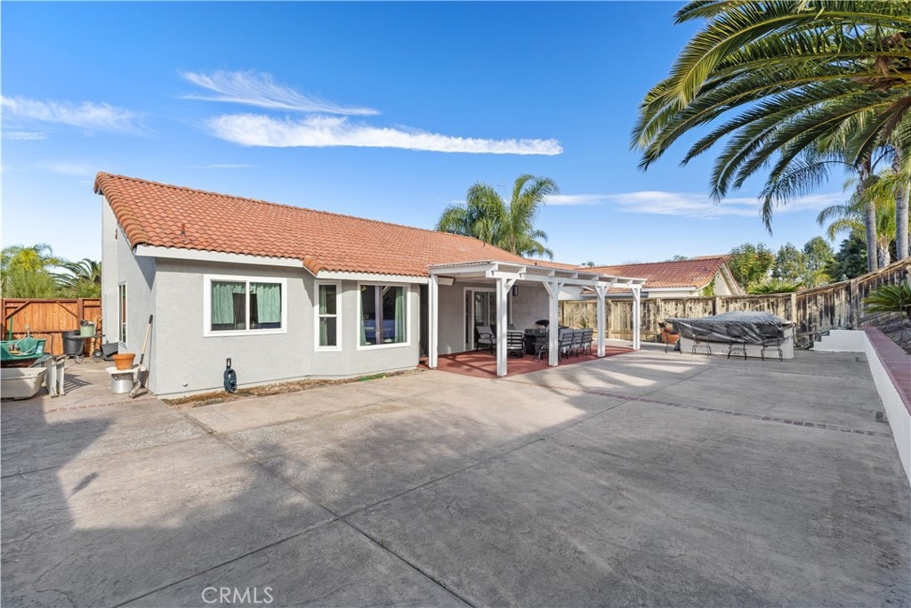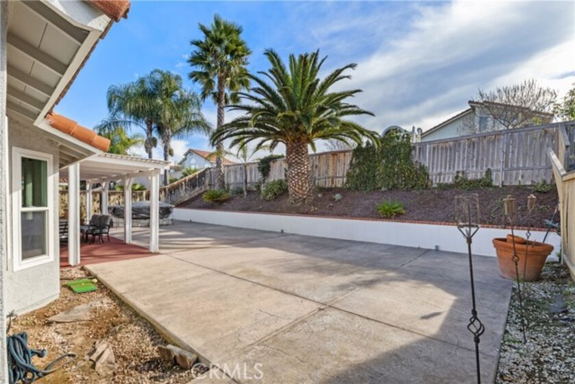 This inviting single-story Temecula home offers 4 bedrooms, 2 bathrooms, and approximately 1,613 square feet of comfortable living space. The updated kitchen features white cabinetry, stainless steel appliances, and ample counter space, opening to the dining area and living room with vaulted ceilings. The private primary bedroom includes double glass doors that provide direct access to the backyard. The spacious backyard is fully paved for easy, low-maintenance living and offers plenty of room to relax, entertain, or customize to your needs. A small covered patio provides a shaded area perfect for outdoor dining or lounging. Situated in a peaceful neighborhood with a prime Temecula location, this home is less than five minutes from Pechanga Resort Casino and just moments from Temecula Parkway, offering quick access to shopping centers, dining, schools, and everyday conveniences. A great blend of comfort, location, and lifestyle.