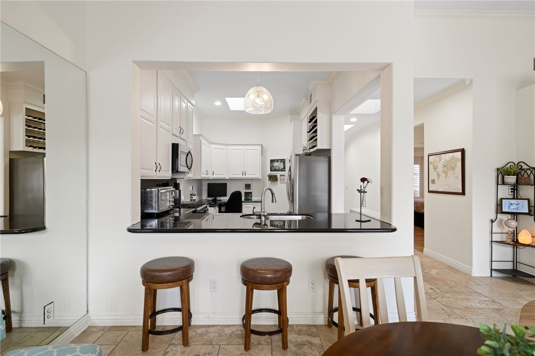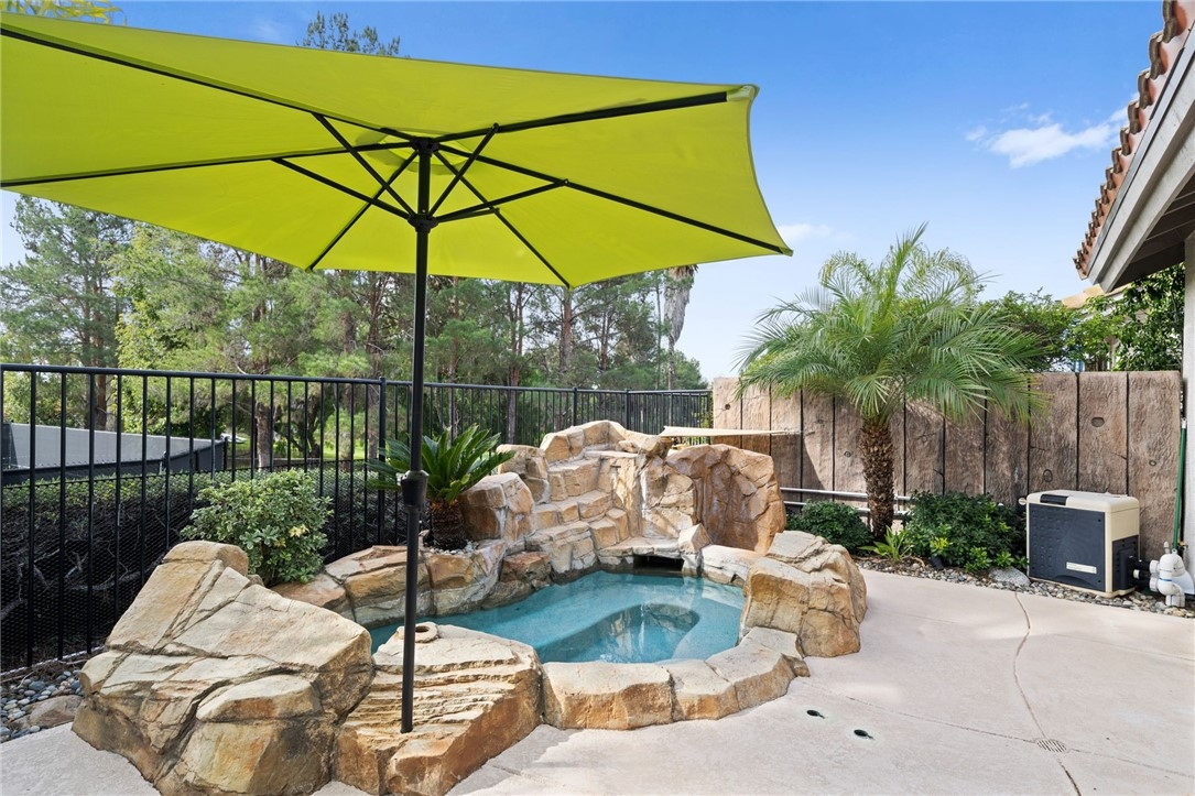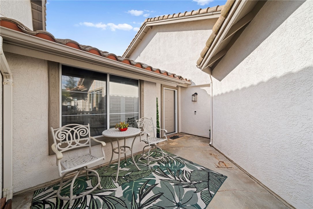 Resort style living in this fabulous single-story condo in Temeku Hills. One of only 4 condos in this neighborhood of single family homes. This hidden gem is just around the corner from the Temeku Hills clubhouse. Enter through the private gated courtyard. This former model features 2 large bedrooms, 2 upgraded bathrooms, an open living room and dining room with a wall of windows overlooking the sparkling in-ground spa with the pool and tennis courts and golf course beyond. In this well-designed kitchen, there is a breakfast bar, skylights, and built in desk plus granite counters and stainless appliances. The great room has custom built ins plus a fireplace and ceiling fans. The spacious primary suite has two closets, dual sinks and walk in shower. The guest bedroom has ceiling fan, oversized closet and a built-in storage under the window. Indoor laundry with storage plus linen cabinet. There are skylights, crown molding, plantation shutters throughout along with luxury vinyl planking throughout. The rear yard has its own private in-ground spa with waterfall and cool deck surface plus built in umbrella stands. The two car garage has epoxy flooring. Temeku Greens HOA maintains the front yard of this home and this elegant single level home feels like true resort style living. Roofs and skylights were replaced in 2017.