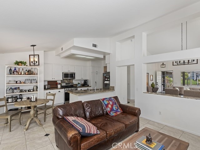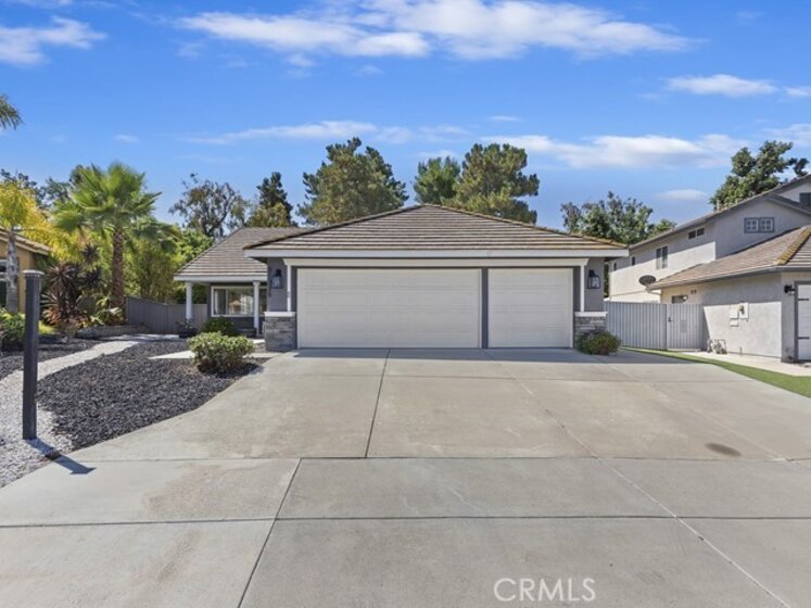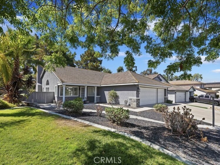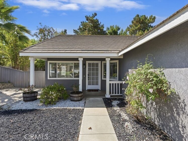 Welcome to this charming and thoughtfully updated single-level home, tucked away on a peaceful cul-de-sac in the highly sought-after Paloma Del Sol community. No rear neighbors. Step inside to discover a bright and open floorplan featuring vaulted ceilings and an abundance of natural light from numerous windows. Charming home with front porch and open floor plan. Durable tile flooring throughout the main living areas and carpet in the bedrooms. Off the entry, you’ll find a formal living and dining room that flows effortlessly into the spacious kitchen and family room. The kitchen is a standout with its bright white cabinetry, granite countertops, large pantry, breakfast nook, and bar seating. The family room is anchored by a tile-accented fireplace and looks out onto the greenery of the private backyard. Enjoy the outdoors in the low-maintenance backyard, complete with a spacious concrete patio, mature trees, and backs up to greenbelt with no rear neighbors. Down the hallway are four bedrooms, two full bathrooms, and convenient access to the attached 3-car garage. The primary suite is a peaceful retreat with vaulted ceilings, a ceiling fan, walk-in closet, and an en suite bath. Best of all, enjoy Temecula’s 4th of July fireworks show right from your backyard! Paloma Del Sol offers incredible amenities including pools, spas, parks, playgrounds, walking trails, and picnic areas. All just minutes from excellent schools, shopping, and dining. Fantastic location!
