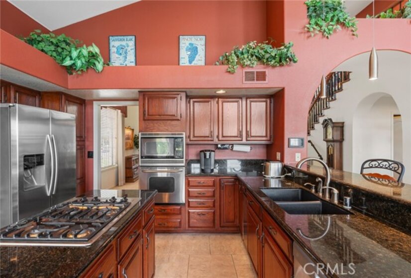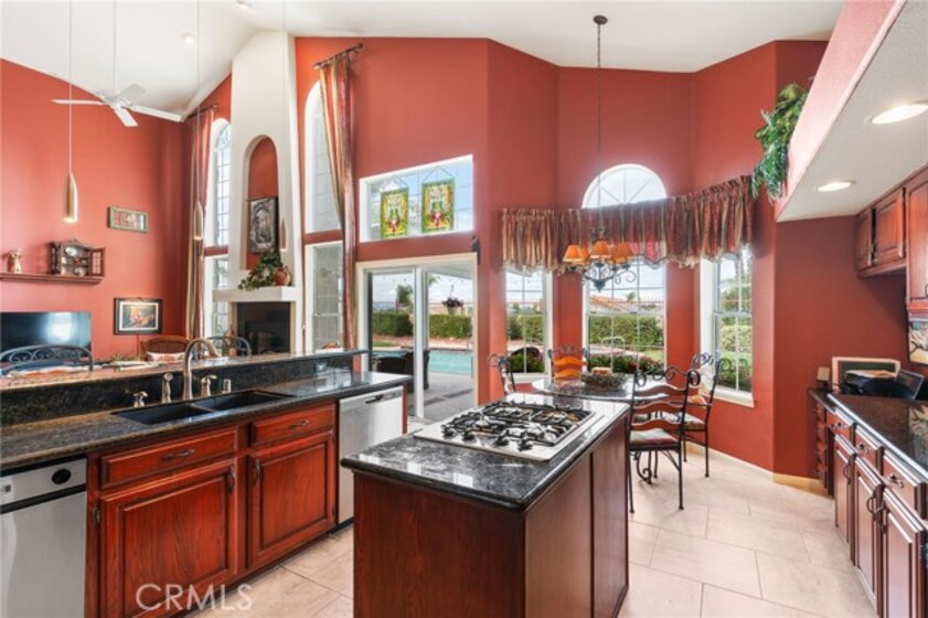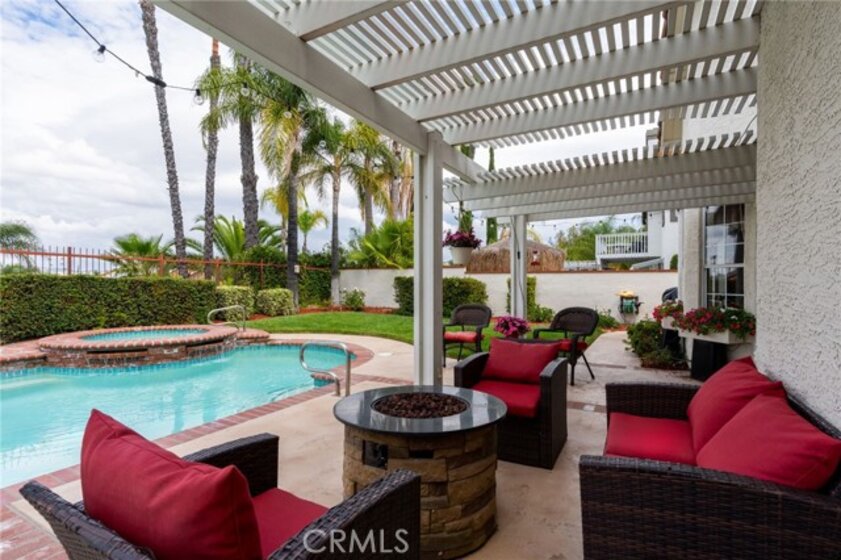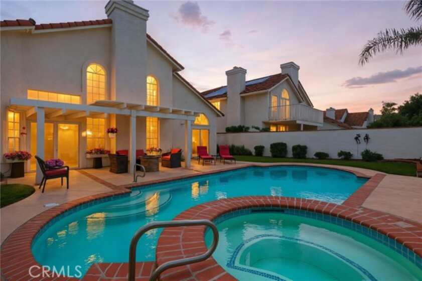 Beautifully maintained home offering spacious living areas, refined architectural details, and a true resort-style backyard. The main level features multiple living and dining spaces, high ceilings, archways, and abundant natural light. The well-appointed kitchen includes rich wood cabinetry, granite countertops, stainless steel appliances, double ovens, a gas cooktop, large prep island, and an extended breakfast bar that opens to the family room with fireplace. Upstairs you’ll find generously sized bedrooms, including a large primary suite with a soaking tub, walk-in shower, dual sinks, and an expansive vanity area. Additional bedrooms offer comfortable layouts and plenty of natural light. The home also features a spacious laundry room and well-designed storage throughout. The backyard is an entertainer’s dream with a sparkling pool, elevated spa, mature landscaping, covered patio, and multiple seating areas for outdoor dining and relaxation. This property offers excellent indoor-outdoor flow and is ideal for gatherings or quiet evenings at home. A wonderful opportunity to own a beautifully cared-for residence with standout curb appeal, quality finishes, and an inviting atmosphere in every room.