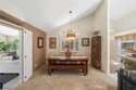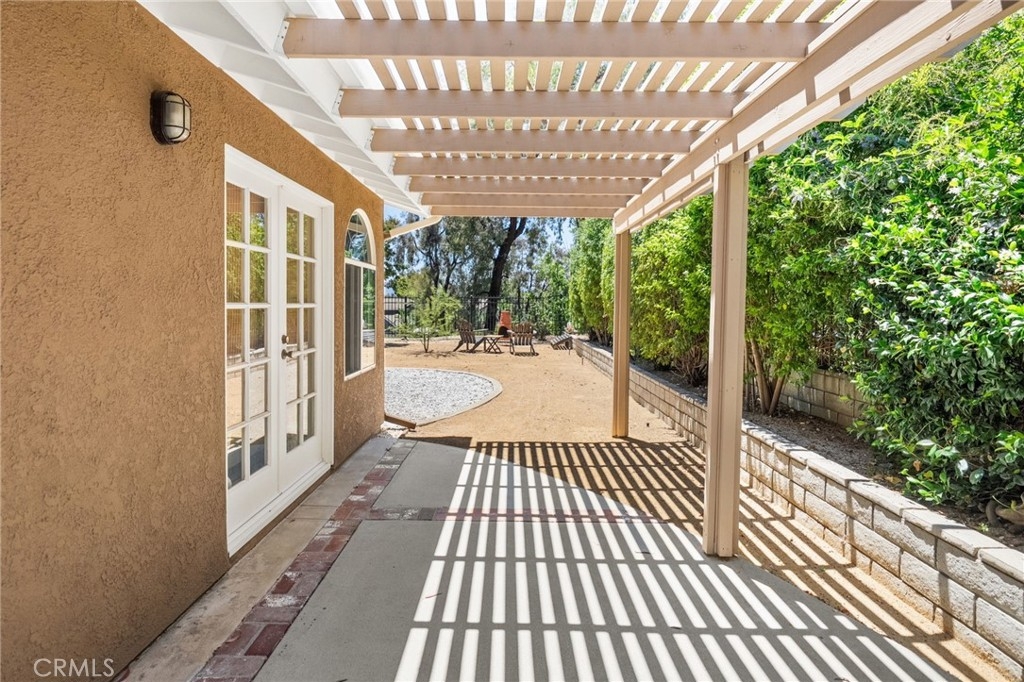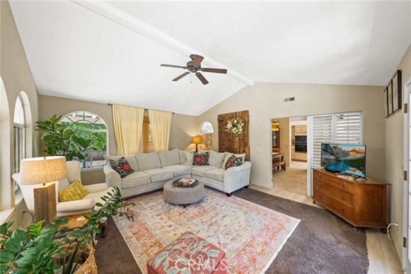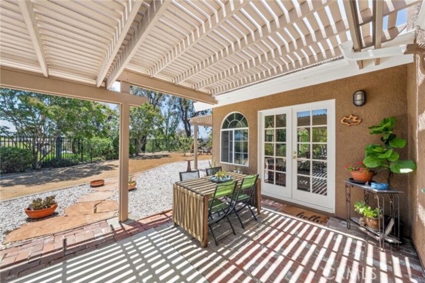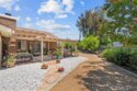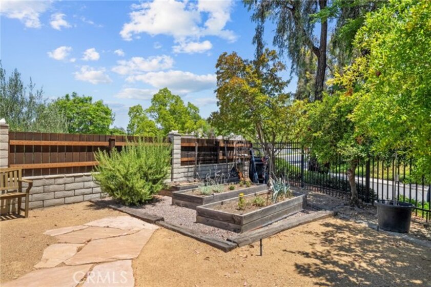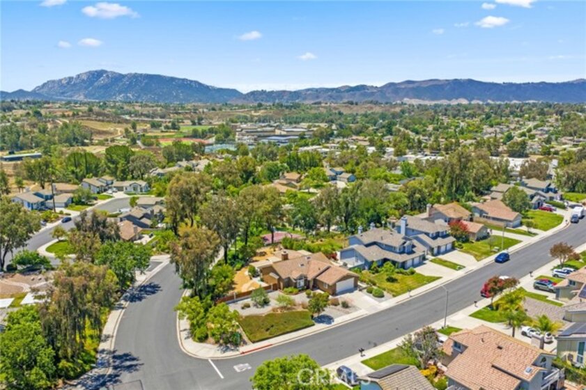 Nestled on a spacious corner lot in the desirable Villa Avanti neighborhood in Temecula, this charming single-story home boasts a rare oversized .35-acre lot with a low-maintenance yard and scenic raised garden beds. With an elevated position, this private 3 bdrm, 2 bath home features an open floorplan spanning 1,718 sq ft, highlighted by vaulted ceilings and abundant natural light. The primary bedroom features vaulted ceilings and direct access to the backyard, while the ensuite primary bathroom offers dual sinks and a tub/shower combination. Two additional well-appointed bedrooms provide flexibility and space for family or guests. Architectural angles add character and style to this inviting home. The kitchen, complete with bar seating, overlooks the living room and is equipped with a gas cooktop, microwave, oven, and dishwasher, catering to culinary enthusiasts. Laminate floors complemented by carpet flow throughout, adding warmth and comfort. Step outside through French doors and enjoy the serene ambiance from the covered patio, offering ideal outdoor relaxation. Situated above a park, this residence enjoys a prime location within walking distance to Temecula Valley High School and close proximity to shopping, libraries, renowned wineries, and dining options. Centrally located with low taxes and a low HOA, this Temecula gem presents a rare opportunity for comfortable, convenient living.