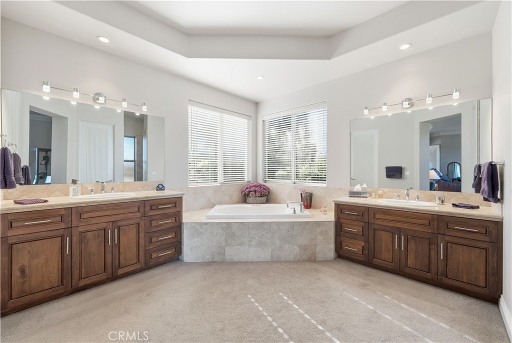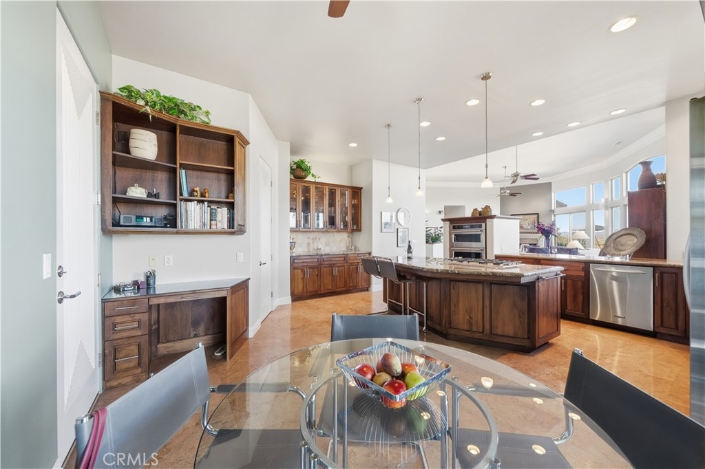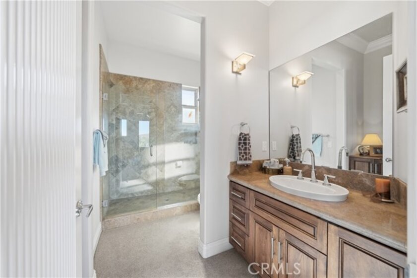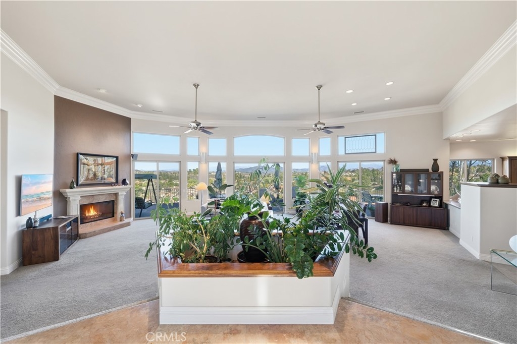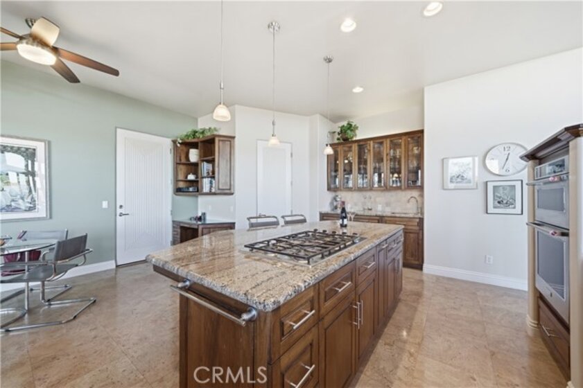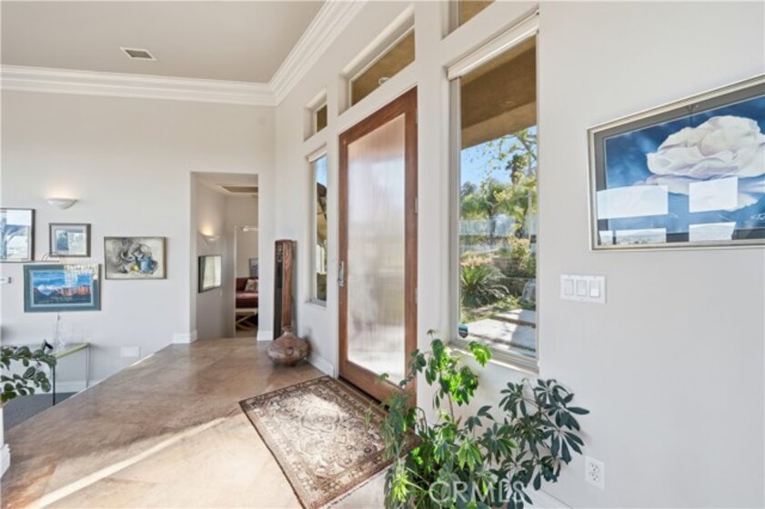 Listed for the first time, this exceptional custom-built single-story residence is gracefully positioned at the end of a private cul-de-sac, elevated to capture sweeping panoramic views. Thoughtfully designed with three bedrooms—including a grand primary suite, a private junior suite, and a guest bedroom. The home welcomes you through a dramatic open-concept entry into expansive living and dining spaces crowned by soaring 14-foot ceilings! Floor-to-ceiling glass windows frame the scenery while a gas fireplace, refined 12-inch crown molding, tall baseboards, and recessed lighting create an atmosphere of understated elegance. A chef's kitchen is both beautiful and functional, showcasing granite countertops, a substantial center island with bar seating, stainless steel appliances, a refined dry bar, and custom wood-and-glass cabinetry ideal for displaying curated collections. The luxurious primary bedroom offers direct access to the balcony through sliding glass doors, a large retreat and features a spa-inspired bath with dual vanities, walk-in shower, separate jetted soaking tub, and a generous walk-in closet. Designed for effortless indoor-outdoor living, six sliding glass doors open to scenic patios and entertaining spaces. Additional highlights include 12x30 RV PARKING, reinforced 2x6 exterior construction for enhanced insulation and durability, solid-core fluted interior doors throughout, and a three-car garage with 8-foot doors, built-in workbenches, and ample storage. Ideally located near Temecula’s renowned wine country and just minutes from premier shopping, dining, and entertainment, this one-of-a-kind residence offers privacy, craftsmanship, and an elevated lifestyle rarely found. Welcome Home!