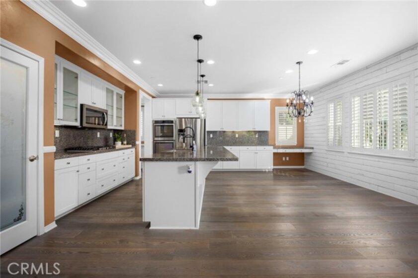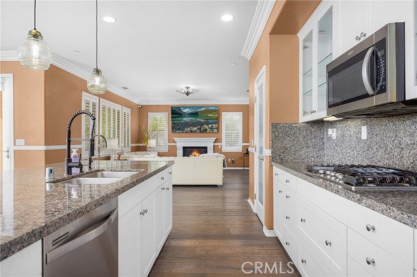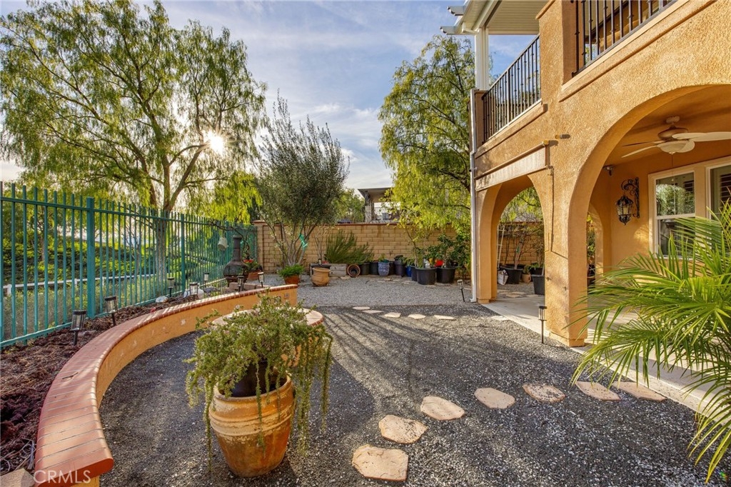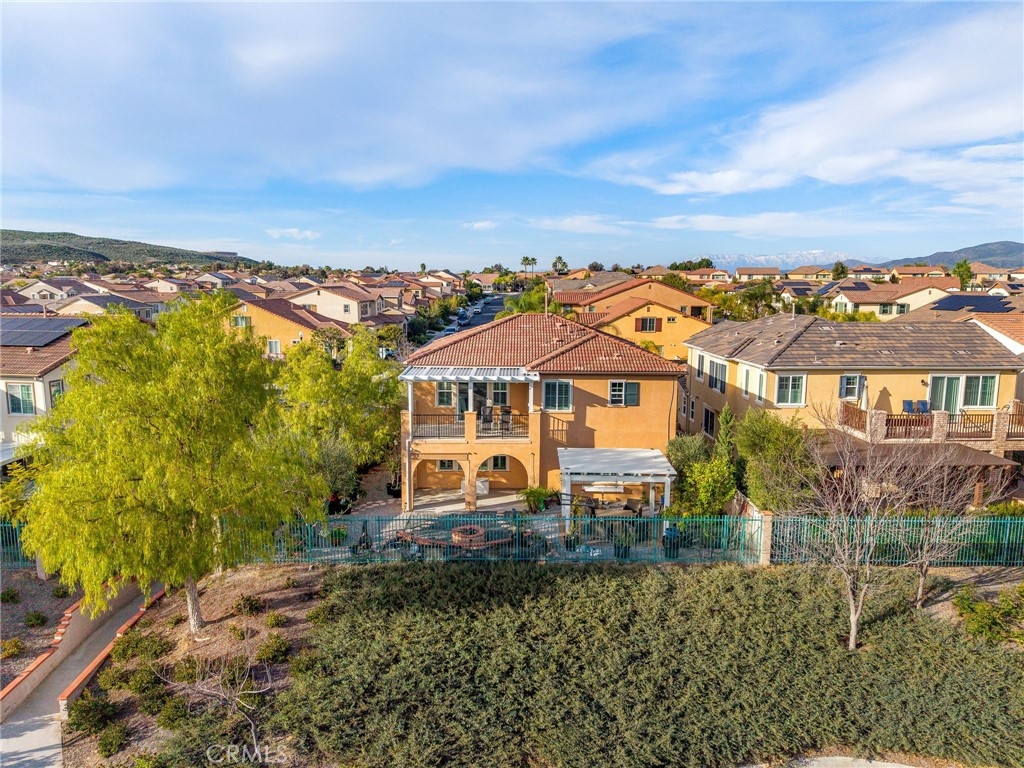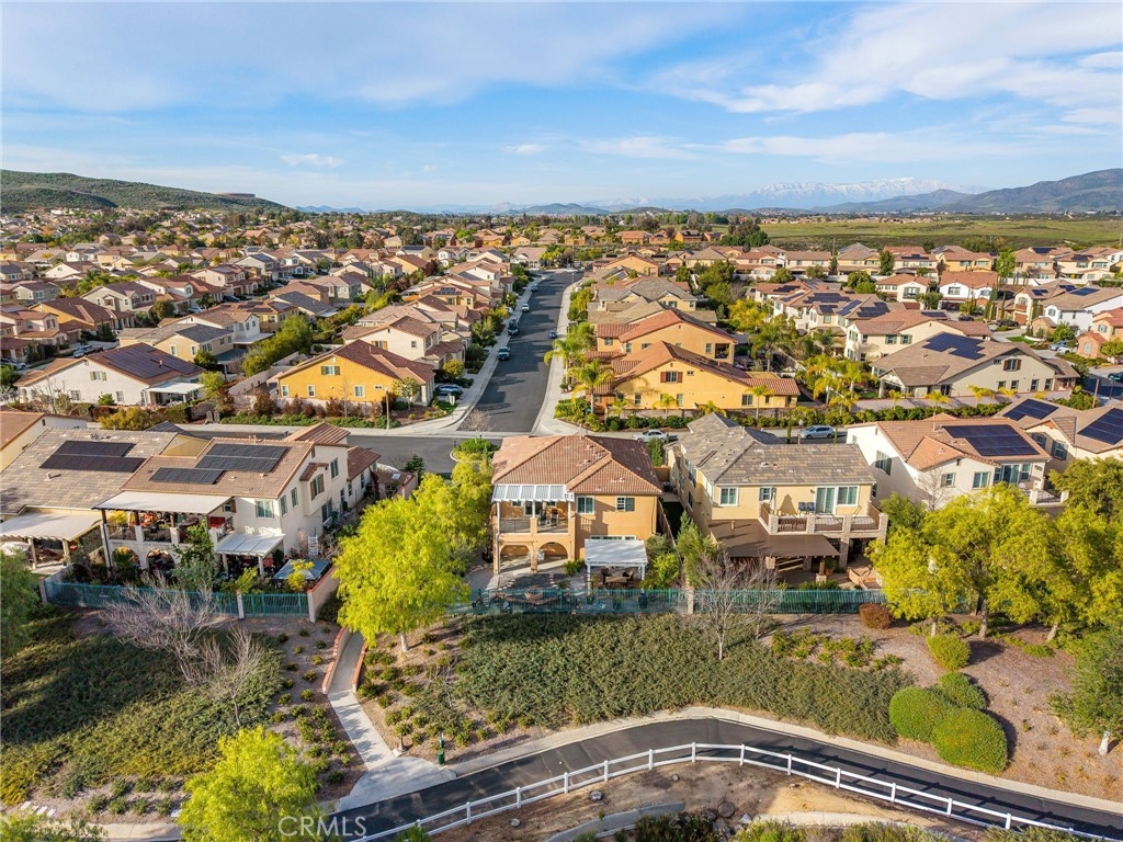 Welcome to the Wine Country Cottage! Located in the highly sought-after gated community of Roripaugh Ranch, this beautifully upgraded home sits on a premium view lot with only one direct neighbor, offering privacy and serene surroundings. Step through the beveled glass front door and onto 6” wide luxury vinyl plank flooring that flows throughout the open-concept layout. Offering nearly 2,700 square feet, this spacious residence features 4 bedrooms, 3.5 bathrooms, and a versatile upstairs loft. The main level includes a private guest suite with a ¾ bath—perfect for multigenerational living or visiting guests—along with a convenient powder room. The expansive kitchen is the heart of the home, showcasing a large center island, white thermofoil cabinetry with glass doors and interior lighting, granite countertops, pendant lighting, a custom frosted glass walk-in pantry door, and stainless steel appliances including a gas cooktop and double ovens. The kitchen seamlessly opens to the dining and family rooms, creating an ideal space for gathering and entertaining. Through the California Room, enjoy year-round shade and effortless indoor-outdoor living. The backyard offers dazzling views, lush garden landscaping, and an expansive side yard complete with a built-in bocce ball court—perfect for hosting family and friends. Upstairs, the views continue from the spacious primary suite featuring a custom-covered private deck with dual outdoor ceiling fans and recessed lighting. The luxurious en-suite bath offers dual sinks, a vanity area, soaking tub, and glass-enclosed shower. Two additional secondary bedrooms share a full bathroom with dual sinks and ample storage. You’ll also find a generous loft space and an upstairs laundry room for added convenience. One of the most desirable features of this location is its proximity to a private walking trail entrance, providing direct access to Roripaugh Ranch’s resort-style amenities, including a grand clubhouse, pool and spa, 24/7 fitness center, tennis courts, basketball courts, and Central Park. Additional highlights include: • Well-lit, air-conditioned 2-car garage with overhead storage • Tankless water heater • Decorative crown, chair rail, and baseboard molding • Recessed lighting throughout • Fresh interior paint • Quiet neighborhood setting within top-rated schools This is the perfect blend of comfort, privacy, and community living in one of Temecula Valley’s most desirable gated neighborhoods.