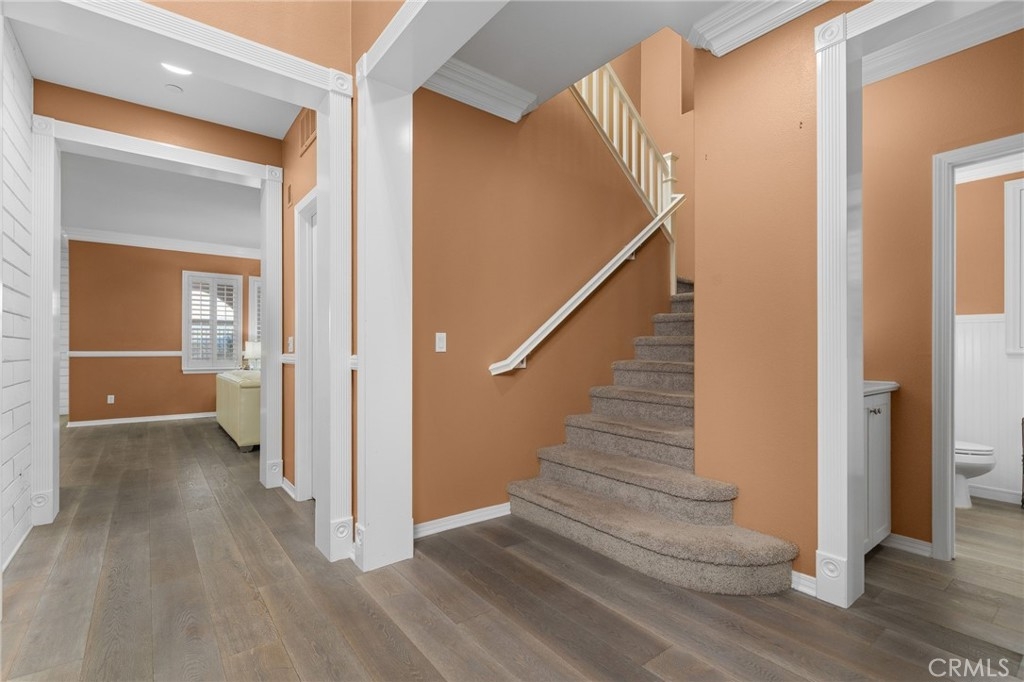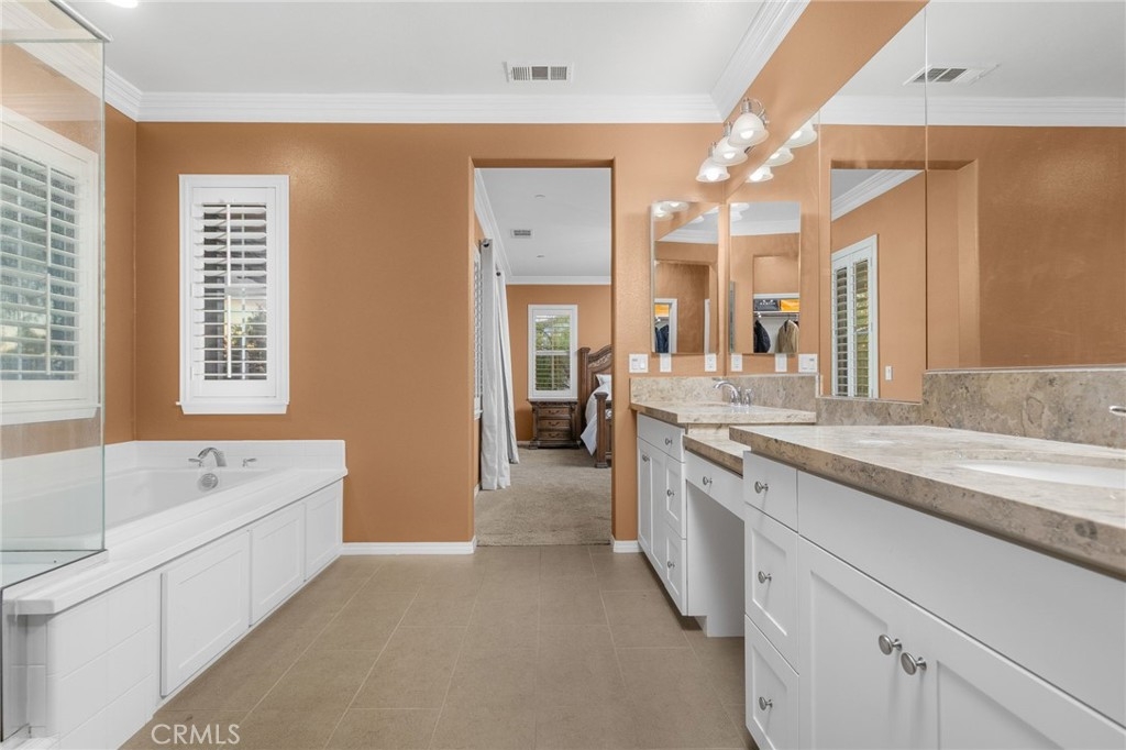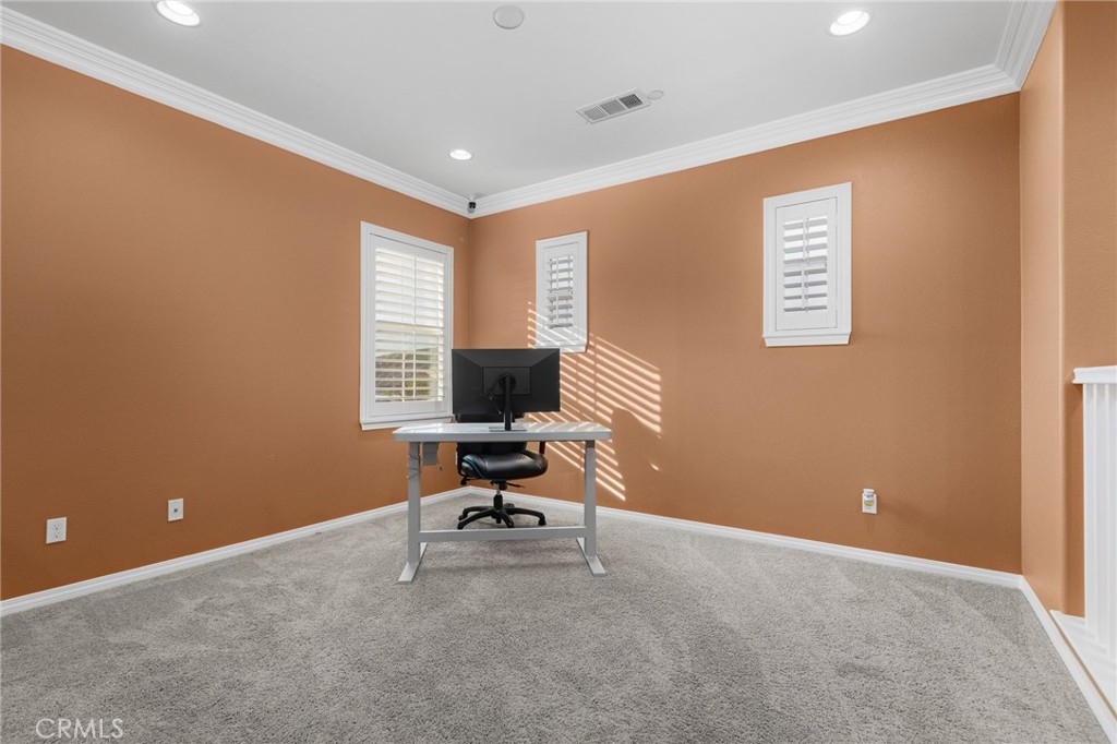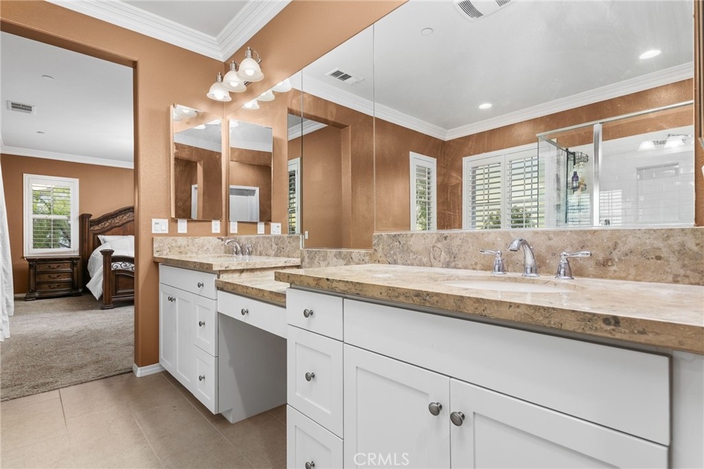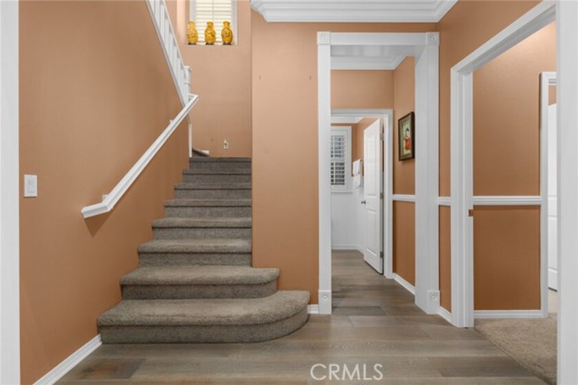 Welcome to the Wine Country Cottage! Located in the highly sought-after gated community of Roripaugh Ranch, this beautifully upgraded home sits on a premium view lot with only one direct neighbor, offering privacy and serene surroundings. Step through the beveled glass front door and onto 6” wide luxury vinyl plank flooring that flows throughout the open-concept layout. Offering nearly 2,700 square feet, this spacious residence features 4 bedrooms, 3.5 bathrooms, and a versatile upstairs loft. The main level includes a private guest suite with a ¾ bath—perfect for multigenerational living or visiting guests—along with a convenient powder room. The expansive kitchen is the heart of the home, showcasing a large center island, white thermofoil cabinetry with glass doors and interior lighting, granite countertops, pendant lighting, a custom frosted glass walk-in pantry door, and stainless steel appliances including a gas cooktop and double ovens. The kitchen seamlessly opens to the dining and family rooms, creating an ideal space for gathering and entertaining. Through the California Room, enjoy year-round shade and effortless indoor-outdoor living. The backyard offers dazzling views, lush garden landscaping, and an expansive side yard complete with a built-in bocce ball court—perfect for hosting family and friends. Upstairs, the views continue from the spacious primary suite featuring a custom-covered private deck with dual outdoor ceiling fans and recessed lighting. The luxurious en-suite bath offers dual sinks, a vanity area, soaking tub, and glass-enclosed shower. Two additional secondary bedrooms share a full bathroom with dual sinks and ample storage. You’ll also find a generous loft space and an upstairs laundry room for added convenience. One of the most desirable features of this location is its proximity to a private walking trail entrance, providing direct access to Roripaugh Ranch’s resort-style amenities, including a grand clubhouse, pool and spa, 24/7 fitness center, tennis courts, basketball courts, and Central Park. Additional highlights include: • Well-lit, air-conditioned 2-car garage with overhead storage • Tankless water heater • Decorative crown, chair rail, and baseboard molding • Recessed lighting throughout • Fresh interior paint • Quiet neighborhood setting within top-rated schools This is the perfect blend of comfort, privacy, and community living in one of Temecula Valley’s most desirable gated neighborhoods.