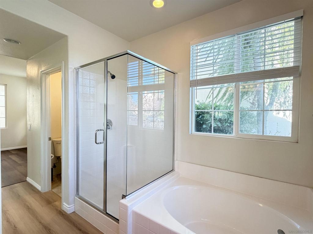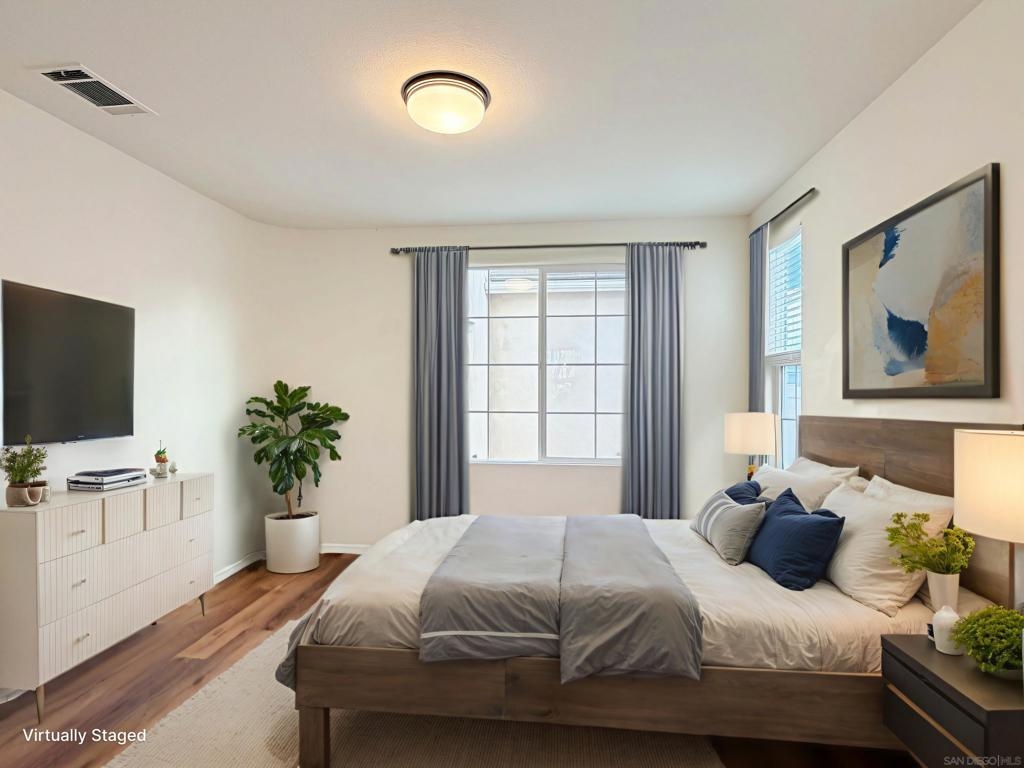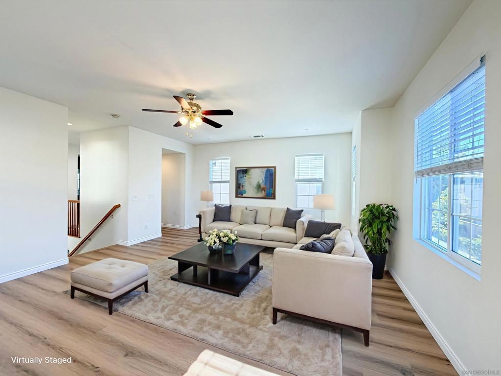 This exquisitely upgraded 3-bedroom, 2.5-bath single-family home offers 2,065 sq ft of sophisticated modern living. An open-concept layout highlights luxury vinyl plank flooring throughout, and a fully remodeled chef’s kitchen appointed with quartz countertops and premium stainless steel appliances—ideal for both refined entertaining and everyday comfort. All three bedrooms are generously sized with the primary suite elegantly situated on the main level. This private retreat features a walk-in wardrobe, dual vanities, and an indulgent deep soaking tub. The upper level presents an expansive family lounge complemented by a built-in office niche, perfect for remote work or study. Bathed in natural light, the home is enhanced by a new A/C system installed in 2022, a two-car attached garage, and owned solar panels for exceptional energy efficiency. Lush front and rear landscaping, including manicured lawns, mature trees, and shrubs, are HOA-maintained at remarkably low fees. Enjoy resort-inspired living in the highly desirable Wolf Creek community, featuring pools and spas, a fitness center, clubhouse, outdoor barbecues, and serene park spaces—conveniently located just across the street. Situated within the award-winning Temecula school district, including Great Oak High School, with nearby shopping and effortless I-15 access. Come experience the lifestyle this exceptional home has to offer!