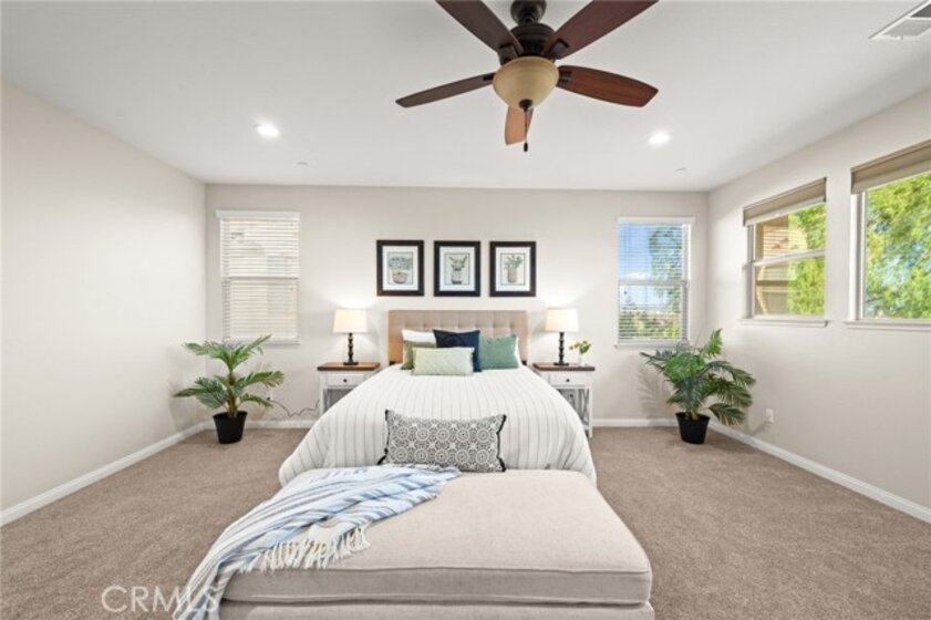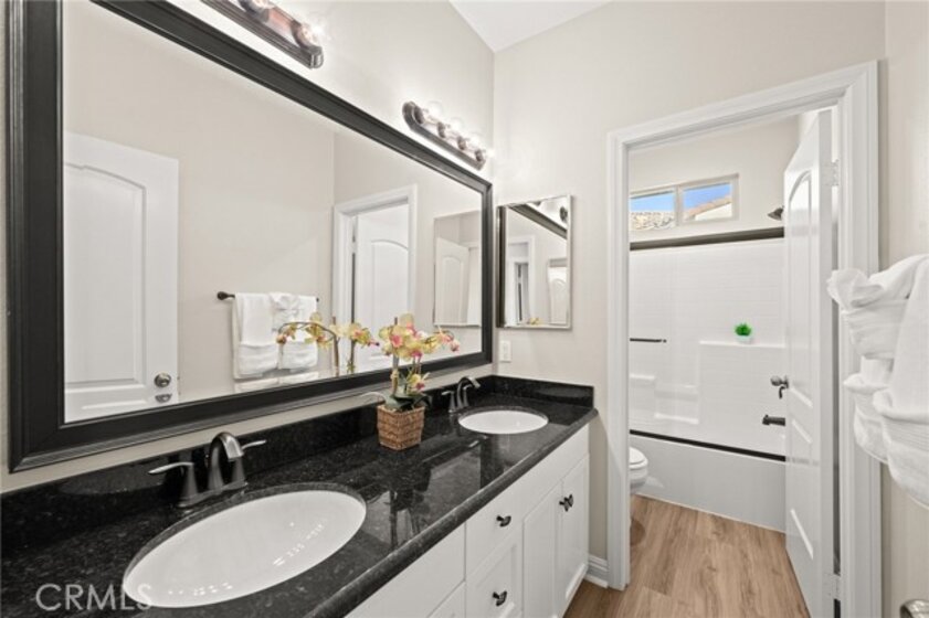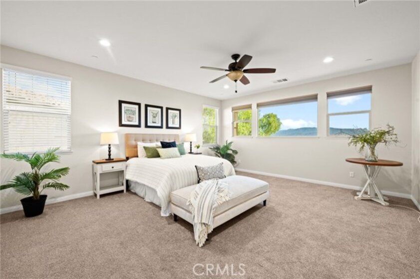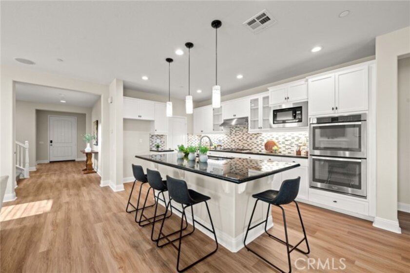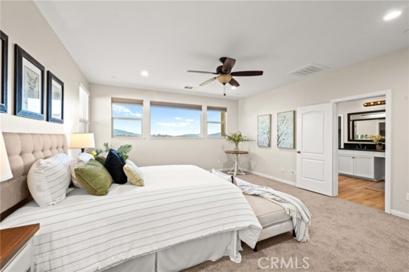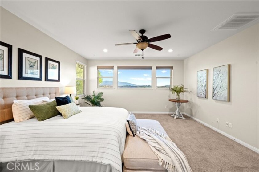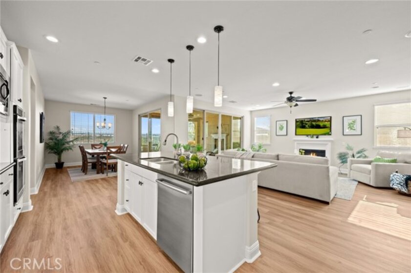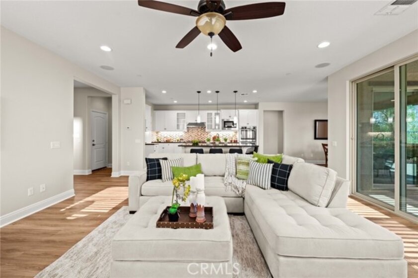 Located on one of the most desirable elevated lots in the gated community of Roripaugh Ranch, this home offers over 90 linear feet of unobstructed southern views, ultimate privacy, and room to add a future pool—making it hands down the best lot in the neighborhood. Spanning just under 3,200 sq. ft., this sought-after 2nd Gen floorplan features a rare downstairs attached casita with its own private entrance. Designed as a fully functioning apartment, the casita includes a living room, bedroom, wet bar with under-counter refrigerator, built-in microwave, and its own stackable washer/dryer. Inside the main residence, brand-new LVP flooring extends throughout the downstairs. Off the entry is a private office, while the open-concept layout showcases a chef’s kitchen with a large central island, granite countertops, stainless steel appliances, and a double oven. The kitchen flows seamlessly to the dining area and great room, both offering direct access to the covered California room with a built-in fireplace—perfect for indoor/outdoor living and entertaining. Upstairs, you’ll find a spacious loft, laundry room, and two secondary bedrooms with a shared bath. The luxurious primary suite is a true retreat, highlighted by three oversized windows framing the breathtaking views, a spa-like bath with dual sinks, soaking tub, walk-in shower, and an expansive walk-in closet. Living in Roripaugh Ranch means enjoying resort-style amenities including a clubhouse, 24/7 fitness center, pool and spa, tennis and basketball courts, newly added pickleball courts, two parks, and private walking trails. This is a rare opportunity to own a premier view lot and a versatile multigenerational home in one of Temecula’s most sought-after communities.