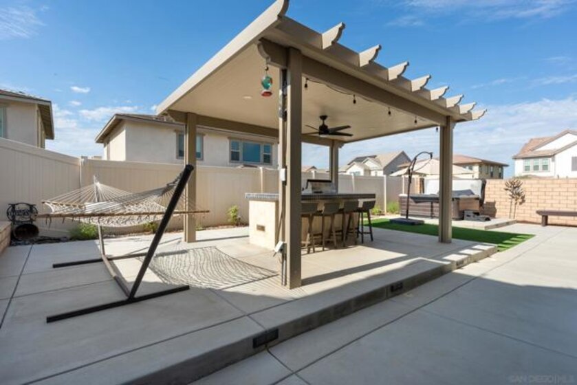 Welcome to 32005 Radiant Drive, a beautifully upgraded home in the highly desirable Sommers Bend community of Temecula. Just 10 minutes from award-winning wineries, local shopping, restaurants, gyms, and freeway access, this residence also falls within the sought-after Temecula school district, making it an ideal place to call home. Inside, you’ll find 3 bedrooms, 2.5 bathrooms, and 1,818 square feet of thoughtfully designed living space. The open-concept layout features luxury vinyl plank flooring and an upgraded kitchen with sleek quartz countertops, crisp white cabinetry, and premium appliances. The spacious great room flows seamlessly into the dining and kitchen areas, perfect for entertaining or family gatherings. Step outside to a private backyard retreat with low-maintenance turf, ideal for pets and play. Enjoy a built-in BBQ island with refrigerator, a new spa with soothing water features, and a large umbrella for shade. The side yard offers flexibility for a dog run or extra storage, while the front yard is landscaped to boost curb appeal with minimal upkeep. Living in Sommers Bend provides access to incredible community amenities, including a resort-style clubhouse with pool, gym, and event space, plus basketball courts and a tot lot. Outdoor enthusiasts will appreciate the sports complex with baseball and soccer fields, additional courts, and over 3 miles of scenic walking trails throughout the community. This home combines modern upgrades, indoor-outdoor living, and access to unmatched community amenities.