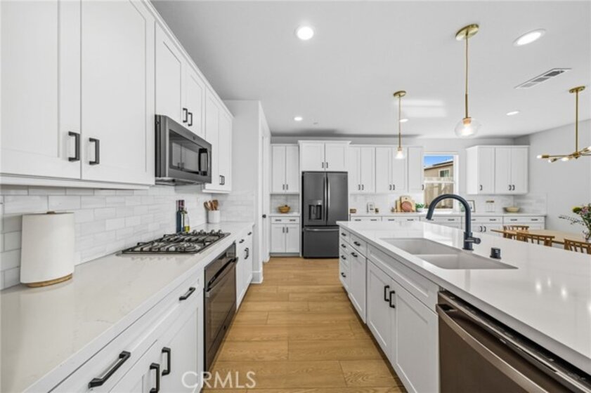 Welcome to 32017 Radiant Drive, a fantastic, fully updated, 4-bedroom, 3-bathroom home with a 2-car garage in a highly desirable Temecula community. This property is built for modern living, offering a perfect blend of stylish interiors, incredible amenities, and a convenient location. It's a turnkey opportunity to secure a vibrant, amenity-rich lifestyle. Inside, you will find high ceilings, recessed lighting, and a mix of upgraded luxury vinyl plank, tile, and carpet flooring not only for easy maintenance, but also for added style. When it comes to layout, this house speaks to convenience, as it includes a main-level bedroom and full bathroom, providing ideal flexibility for you and your guests. The gourmet kitchen features Quartz counters and a large island that flows openly to the family room with a fireplace - perfect for gatherings so you won't miss any of the action. Outside, you can easily relax on the covered patio with views of the surrounding hills. By living here, you don't just enjoy the comforts of your turnkey home. You can also access amazing facilities such as the community pool, spa, clubhouse, gym, sports courts, dog park, and miles of biking/hiking trails! Combining a beautiful, thoughtfully designed interior with a wealth of community amenities, this Temecula home offers the pinnacle of comfortable, active living. All the work is done—it's time for you to move in and enjoy.