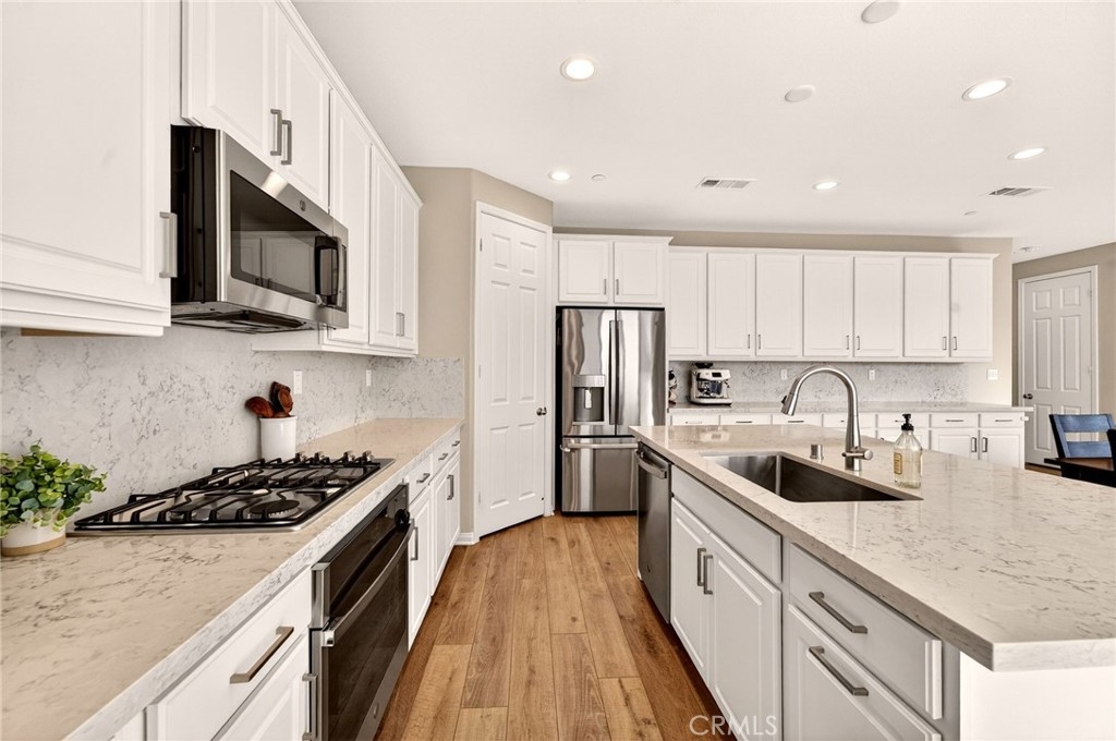 Welcome home to this beautifully designed 3-bedroom, 2 and a half bathroom, corner lot home, in the highly desirable Sommers Bend community! The open floor plan creates a bright, airy feel, perfect for both everyday living and entertaining. The kitchen is a standout! Something you won't find in ANY other home in this neighborhood... Seven additional feet of countertop space along with extra cupboards and cabinets expand the kitchen to be a significantly more useful space. The spacious primary suite features stunning views from the master bedroom, his and hers sinks and a walk-in closet. The laundry room is conveniently located upstairs for you as well. With over $30,000 invested into the front and the backyard, you'll be ready to entertain family and friends all year long! It also adds to the curb appeal. The HOA features a massive pool, wonderful for adults and kids of all ages! Two soccer fields, 2 baseball fields, basketball courts, and a park are just a few streets over from you. Just 5 minutes from Temecula's award winning wineries, zoned for Temecula schools, and a few miles from all of the best eats, you have it all here! Thoughtfully laid out, upgraded, and filled with natural light, this home blends comfort, style, and practicality in one of the Temecula's most sought-after communities.