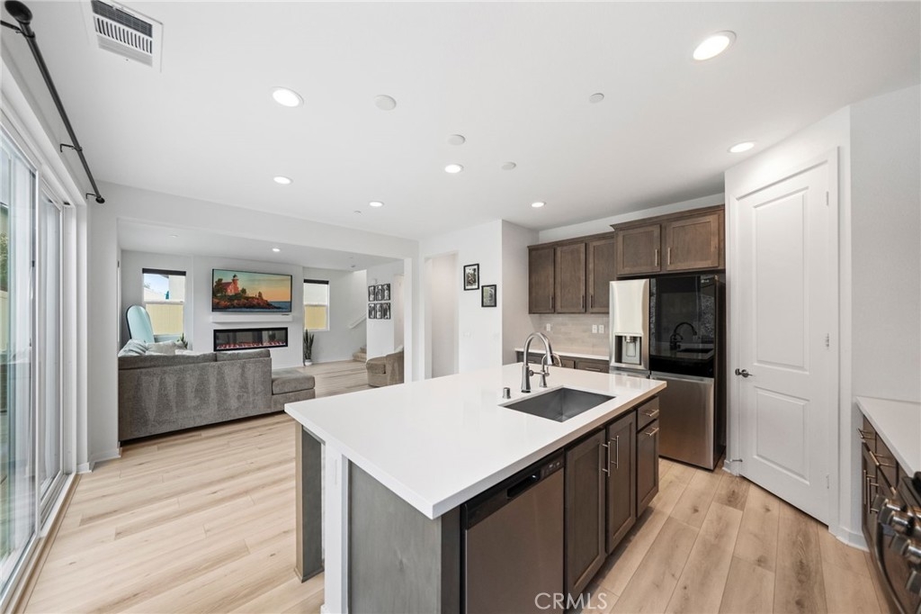New Price! Welcome to 32182 Penstemon Way – a beautifully upgraded, 2023-built home in the highly sought-after community of Sommers Bend, where luxury meets lifestyle just minutes from Temecula Valley Wine Country. This popular Medley Plan 1 showcases a thoughtfully designed layout with modern upgrades throughout, including luxury vinyl plank flooring, upgraded cabinetry, an oversized kitchen island, and a deep stainless steel sink. The open-concept kitchen flows seamlessly into the family room, anchored by a cozy fireplace - perfect for entertaining or relaxing evenings at home. Upstairs, you’ll find three generously sized bedrooms, two full bathrooms, and a convenient laundry room. The primary suite offers an upgraded spa-inspired super shower and dual vanities. Enjoy the peace of mind and savings of fully owned solar and professionally completed landscaping in both the front and backyard. The backyard features low-maintenance turf and a spacious patio - ideal for outdoor gatherings. A charming covered front porch invites you to enjoy morning coffee or the warm Temecula sunshine. Situated on one of the larger lots in Sommers Bend’s Medley collection and conveniently located near the resort-style amenities, you’ll have access to a stunning clubhouse, pool, spa, lap pool, fitness center, miles of scenic trails, and a 21-acre sports park designed for all ages. Located within the award-winning Temecula Unified School District and minutes from top-rated wineries, golf, shopping, and dining, this move-in-ready home offers the perfect balance of luxury, convenience, and community. Don’t miss your chance to own this better-than-new gem in one of Temecula’s premier master-planned communities!