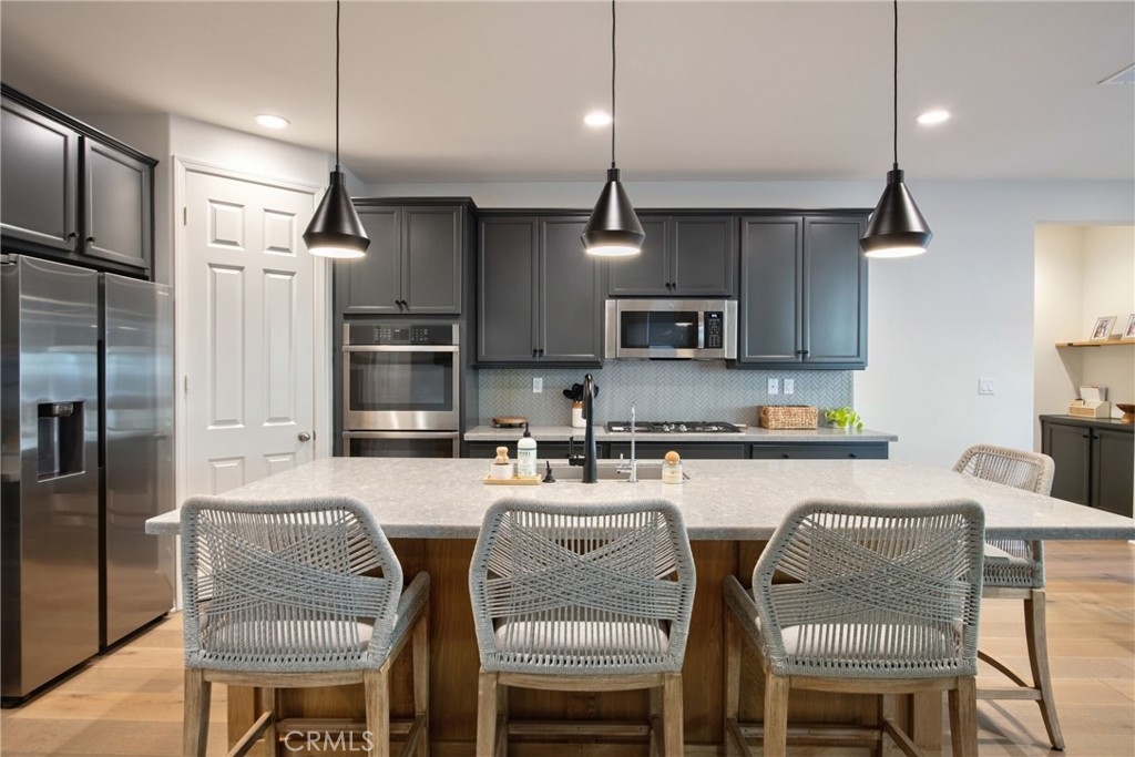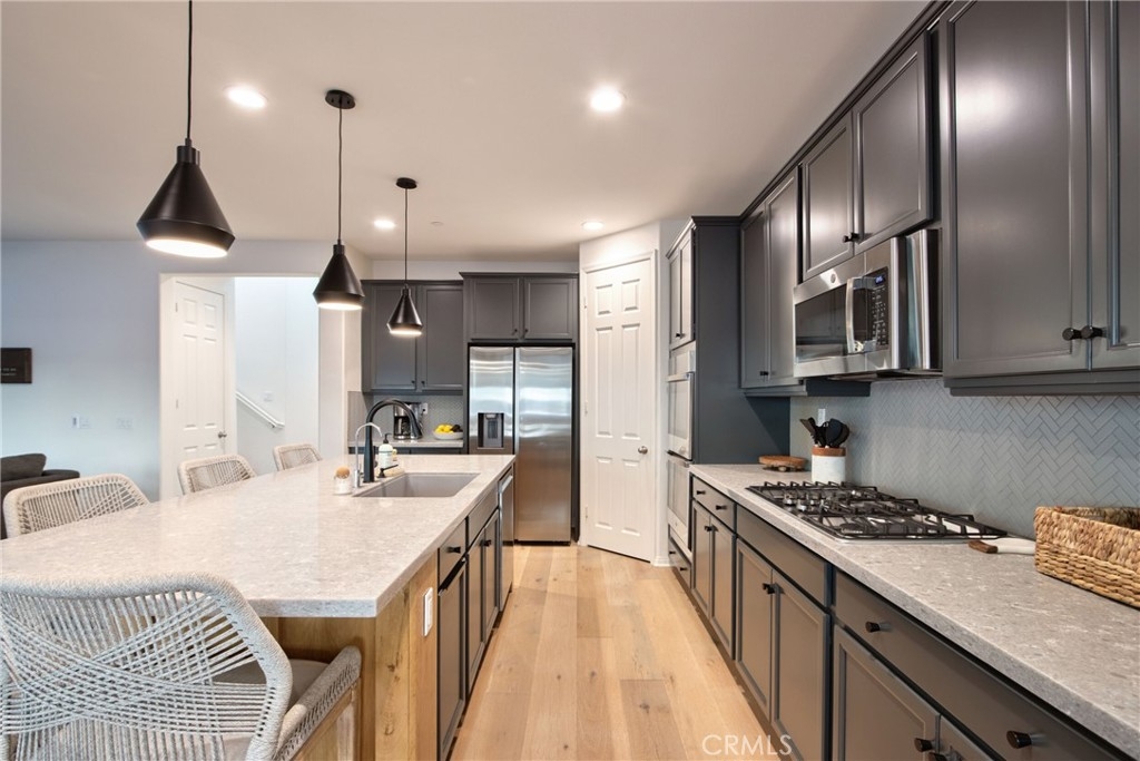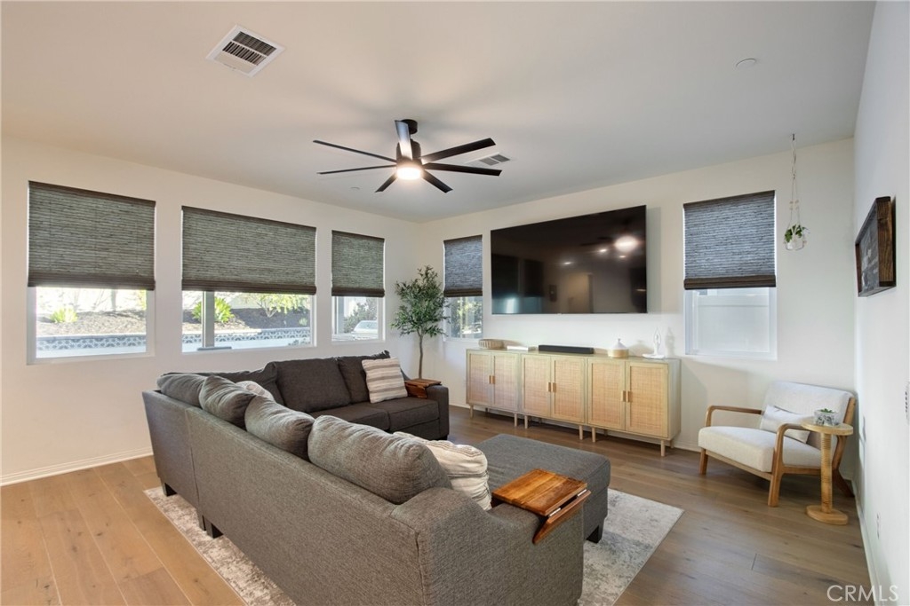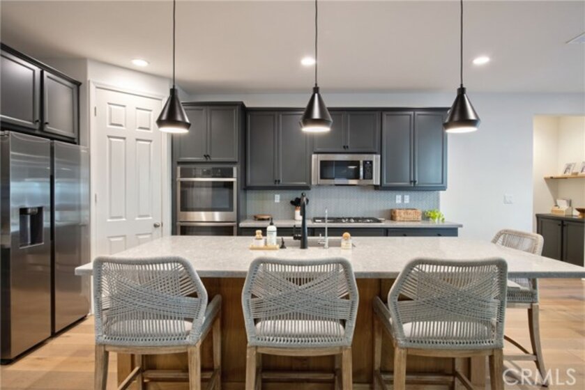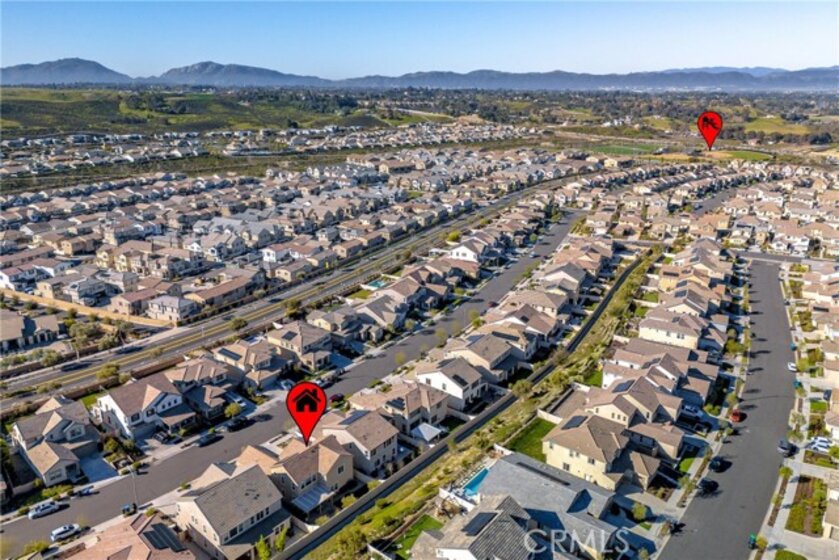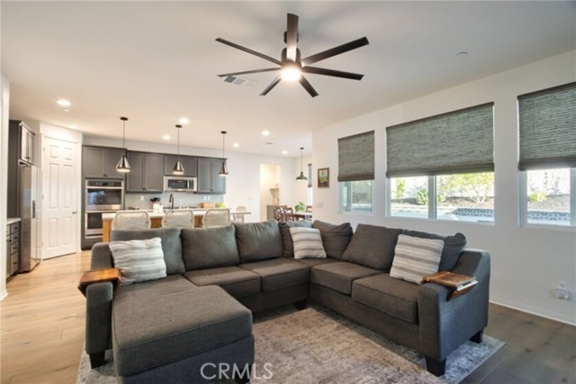 Welcome to the beautiful Sommers Bend community in the heart of Temecula. This spacious 4-bedrooms home, with a den that can easily serve as a 5th bedroom, offers the perfect combination of comfort, style, and everyday functionality. Even better, the home comes with paid-off solar panels, helping you enjoy energy efficiency from day one. As you enter the home, you’ll immediately notice the warm and welcoming feel created by the gorgeous white oak wood flooring throughout the downstairs and the abundance of natural light that fills the space. The thoughtfully designed floor plan includes a convenient downstairs bedroom and full bathroom, perfect for guests or multi-generational living. The den provides flexible space that can be used as a home office, playroom, or additional bedroom depending on your needs. The heart of the home is the open and inviting kitchen, featuring stainless steel appliances, a double oven, walk-in pantry, quartz countertops, and a large center island that doubles as a breakfast bar. It’s a wonderful space for cooking, gathering, and entertaining family and friends. Upstairs, you’ll find three additional bedrooms, including the spacious primary suite with a walk-in closet and a relaxing en suite bathroom with dual sinks, a soaking tub, and a separate shower. One of the secondary bedrooms even includes its own walk-in closet. The upstairs also offers a large laundry room with sink and cabinetry, adding convenience to your daily routine. Step outside to your private backyard retreat, where you can relax under the covered patio or host gatherings around the BBQ island and fire pit while enjoying the peaceful sound of the fountain. The backyard also features low-maintenance artificial grass and a side yard ready for your garden plus self watering feature with low maintenance for your plants. The 3-car tandem garage provides plenty of room for parking, storage, or even a workshop or hobby area. Living in Sommers Bend means enjoying wonderful community amenities, including a clubhouse, resort-style pool, event spaces, a 21-acre sports park, fitness center, and scenic walking trails, all within a friendly and welcoming neighborhood. This exceptional home truly offers the best of Temecula living. Come see it for yourself and imagine making it your forever home.