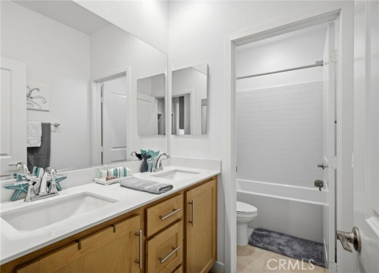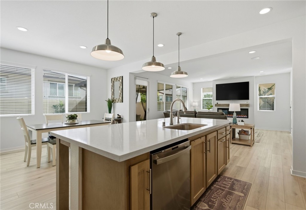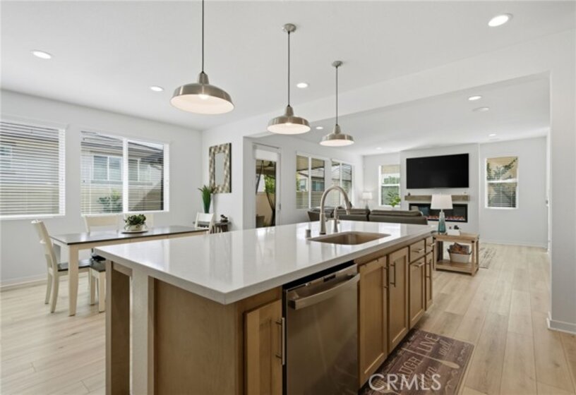 Experience elevated Temecula living in the highly sought-after, resort-style community of Sommers Bend. Built in 2023, this nearly new Medley Collection home offers 4 bedrooms plus a loft and 3 bathrooms, combining modern design with high-end upgrades throughout. The open-concept layout welcomes you in, with the great room centered around a stylish fireplace and flowing seamlessly into the beautifully upgraded kitchen. This space features upgraded countertops and backsplash, pendant lighting over the island, and a premium GE Profile stainless steel appliance package, including a 36-inch gas cooktop with griddle, designer hood, wall oven with built-in convection microwave, and a dishwasher with multiple cycle and option settings—perfect for both everyday living and entertaining. Natural light fills the home, highlighting the upgraded flooring and the open baluster stair system that adds a custom, architectural touch to both levels. The main floor includes a full bedroom and bathroom, ideal for guests, extended family, or a private home office. Upstairs, the primary suite serves as a relaxing retreat with a spacious bedroom, walk-in closet, soaking tub, and walk-in shower. Two additional bedrooms, a full bathroom, a versatile loft, and an upstairs laundry room complete the second level, which also features a laundry sink with a Delta Trinsic chrome pullout faucet for added convenience. The home is further enhanced with a home theater surround sound package in the family room, upgraded finishes throughout, and thoughtful details that elevate both comfort and function. Outside, the low-maintenance backyard with complete with a fire pit, turf putting green and spacious patio provides a great space to relax or entertain. Living in Sommers Bend means enjoying access to scenic walking trails, a resort-style clubhouse, pool, spa, lap pool, fitness center, and a brand-new sports park. Located just minutes from Temecula’s wineries, golf courses, shopping, dining, and within the highly rated Temecula Unified School District, this move-in-ready home offers the perfect blend of style, comfort, and lifestyle. More photos and video coming soon!