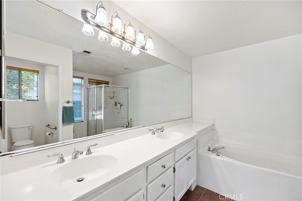 Welcome home to 32359 Corte San Vicente, a rare gem nestled in the coveted & highly sought after community of Vintage Hills in Temecula. The property is situated on a well appointed, quiet cul-de-sac. This home boasts mature landscaping, a large 3-car garage for all of your parking & storage needs, an oversized lot expanding almost 11,000 sqft, with a beautifully elevated backyard oasis. A recently resurfaced, massive swimming pool takes center stage, surrounded by expansive outdoor space that's perfect for entertaining, relaxing, or enjoying Temecula's beautiful weather year round. Step inside and notice the high ceilings throughout the home as you walk through the formal family & dining spaces. The thoughtfully designed, open floor plan features partial upgrades, including stylish vinyl flooring that adds modern charm to the home. The Main level hosts the spacious master suite, offering convenience and privacy with direct access to the vibrant living spaces & backyard oasis through a sliding glass door, without the need of stairs. Upstairs, you will discover an office niche, a partially remodeled bathroom, and the remaining 3 bedrooms. Enjoy the benefits of low HOA fees and all the amenities the community offers, as well as low property taxes to top it all off. With its prime location close to Temecula's renowned wine country & close proximity to all the highly-rated Temecula Valley Schools(TVUSD), it's truly a fantastic choice for couples & families of all sizes to ground their roots into this wonderful city. Discover the perfect blend of luxury, space, and location at 32359 Corte San Vicente—your dream lifestyle awaits! Please contact us today to schedule a private showing!