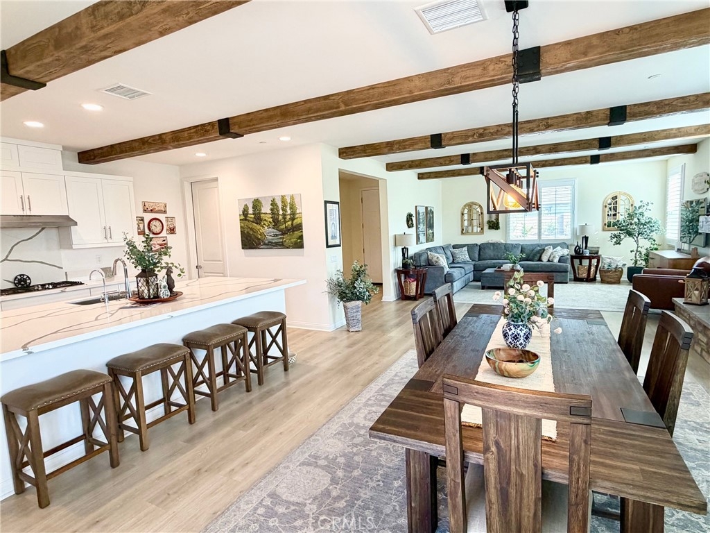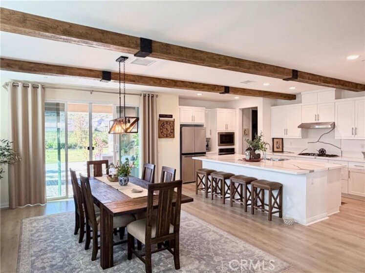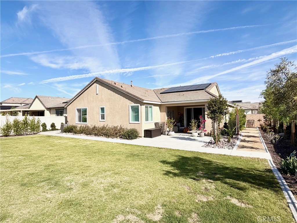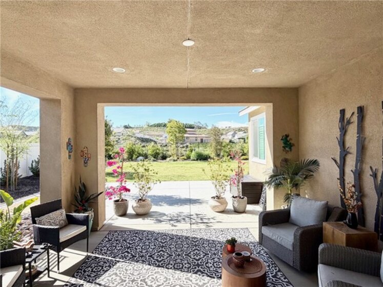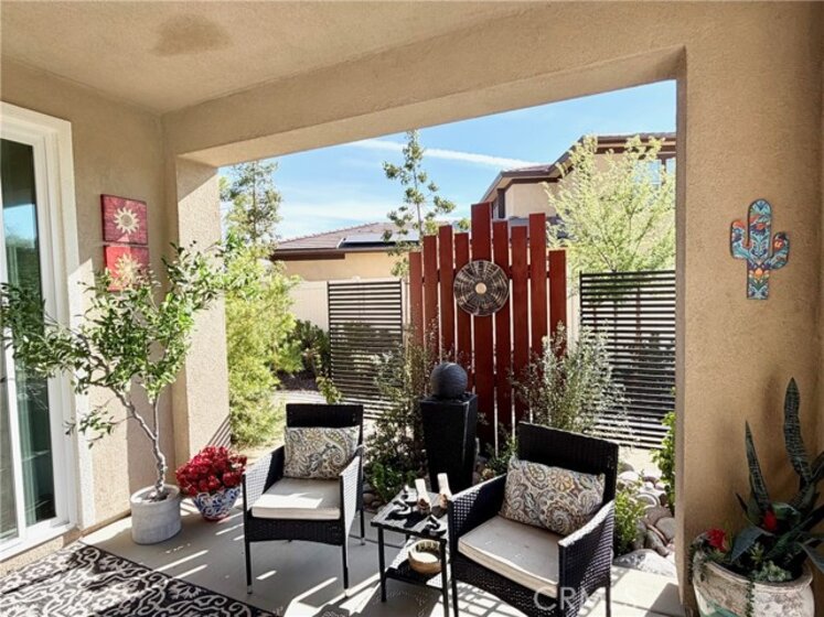 Set within the private enclave of Esplanade @ Sommers Bend—Temecula’s most prestigious 55+ master planned community—this single-level showpiece redefines elevated living. Built in 2023 on an oversized 9,800sf lot with no home behind, this 2,207sf residence offers 3 bedrooms and 2.5 bathrooms. Impeccably maintained & completely turnkey, this home is a showcase of style, comfort & sophistication. The open concept living space features a fireplace with raised hearth, wood beam ceiling and is anchored by a gorgeous chef’s kitchen which features gleaming quartz counters, white shaker cabinetry with soft-close drawers, premium stainless steel appliances & a spacious walk-in pantry. Wide plank luxury vinyl flooring flows seamlessly throughout the home while plantation shutters and contemporary finishes add modern flair. Kitchen, Laundry Room and all bathrooms feature quartz counters. The primary suite is a serene sanctuary with a generous walk-in closet & a spa-like en suite boasting quartz dual vanities, chrome fixtures, upgraded flooring, a frameless glass shower, & a soaking tub designed for indulgence. Step outside to an expansive & completely private backyard where a spacious California Room invites year-round entertaining. Lush lawn, professionally designed landscaping & multiple privacy trees create a verdant escape. PAID FOR solar ensures energy efficiency. Enjoy resort living just steps from Esplanade’s world-class Resort Campus—a private, resident-only retreat featuring a grand clubhouse, heated lap pool & spa, state-of-the-art fitness center, pickleball & bocce courts, fire pit, BBQ pavilions, and community gardens. Miles of manicured walking paths make it easy to enjoy the outdoors. The vibrant social scene offers over 25 clubs ranging from travel & art to golf & wine enthusiasts. All of this just minutes from award-winning wineries in the heart of Temecula's Wine Country and, of course, Temecula's vibrant Old Town. For those seeking the pinnacle of style, comfort, & community, your best life starts here!