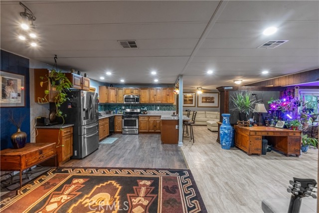 OVER HALF AN ACRE, YOU OWN YOUR OWN LAND, CORNER LOT! SOUTH TEMECULA WITH HIGHLY DESIRABLE SCHOOL DISTRICT! You have all the city conveniences with a slice of country living hidden in the hills. This home is on a permanent foundation, so bring your VA and FHA buyers! Welcome to the lush community of Oakhaven Estates, nestled in hills of South Temecula. This property is a 3 bedroom, 2 bathroom on over half an acre lot, WITH an open layout. There is plenty of room for RVs, an ADU, garden beds, playground, chicken coops, or even renting out a trailer as a short term rental! Grand Italian Cypress trees line the extra long driveway leading to the detached 2 car garage. The open kitchen layout boosts room for a large dining table as well as 2 different sitting areas that can be used as living rooms. The secondary bedrooms are tucked away on the right side of the home while the primary bedroom is by itself to the left. There is a new well water softener system, and did I mention the water and trash is included in the low monthly HOA payment of $136! The community is down the street from the highly desired Temecula school district and the Pechanga center which showcases some yummy local restaurants. This property is 10 minutes from Old Town Temecula, 15 minutes from the wineries, 10 minutes to the I15, perfect for commuters! Come see it today!