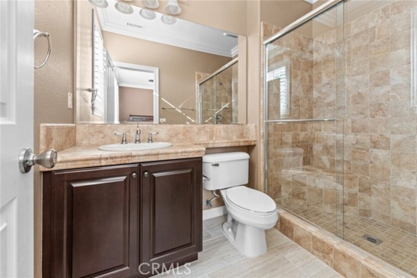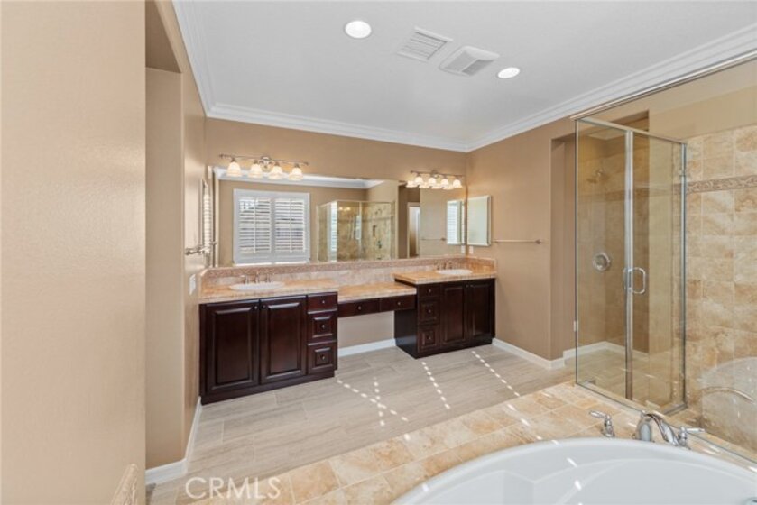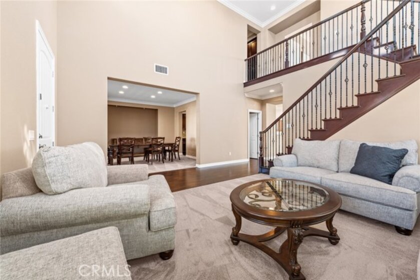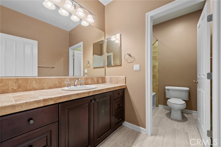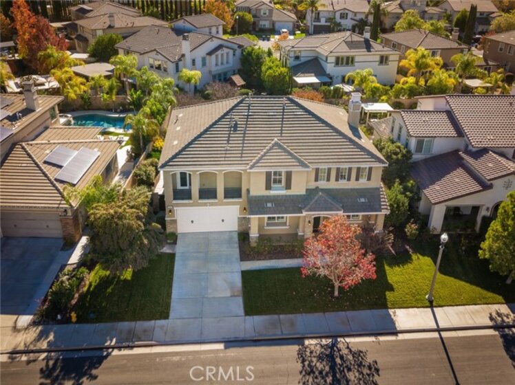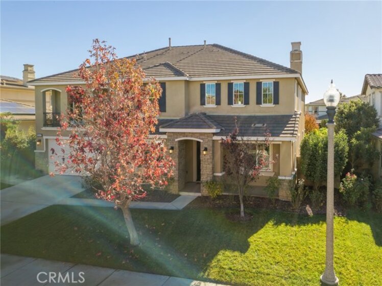 Stunning Temecula home located in Wolf Creek! This spacious two-story residence offers a perfect blend of comfort, style, and functionality. Featuring 6 bedrooms and 4.5 bathrooms, upgraded flooring, plantation shutters, and balcony access from two secondary rooms. Main level includes 1 bedroom and 1.5 bathrooms. Step inside to an inviting open floor plan with natural light, high ceilings, and a seamless flow between the living, dining, and family areas. The kitchen is equipped with a 5-burner gas cooktop, dual ovens, walk-in pantry, recessed lighting, an abundance counter space making this the ideal kitchen for both everyday living and hosting gatherings. This beautifully designed backyard offers a built-in stone BBQ island ideal for weekend grilling and outdoor dining. Just steps away, a curved seating area surrounding a gas fire pit. Enjoy amazing mountain views and entertainment including Wolf Creek's community pool, spa, parks, club house, and weight room.