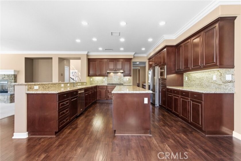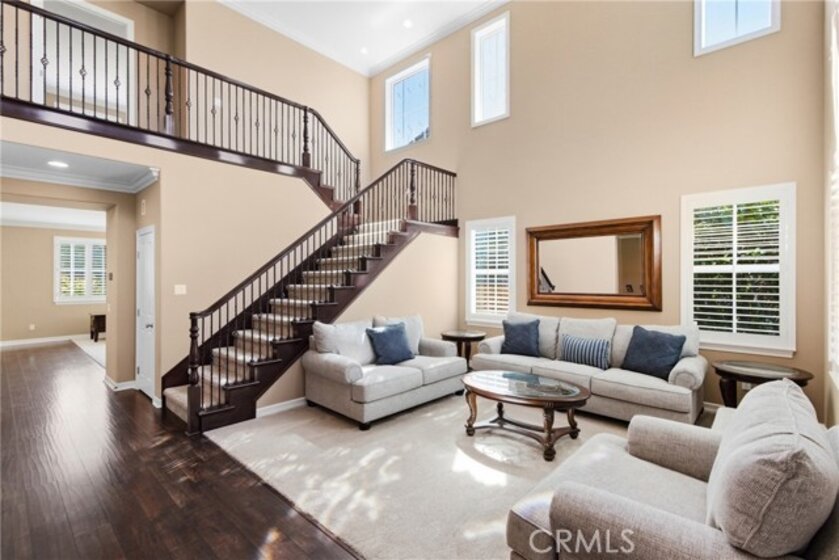Welcome to this beautifully maintained home in the highly sought-after Wolf Creek community of South Temecula, proudly offered by the original owner where pride of ownership is evident from the moment you arrive. Step inside to find stunning wood flooring & soaring ceilings that create a warm and inviting atmosphere. The thoughtfully designed floor plan features a spacious kitchen with granite countertops, stainless steel appliances, double ovens, a generous eating area and seamless flow into the family room complete with a cozy fireplace and ceiling fan perfect for everyday living and entertaining. At the front of the home, you’ll find a formal living room, along with a separate dining room connected to the kitchen through a convenient butler’s pantry and an additional walk-in pantry, offering ample storage and functionality. The main level includes a private bedroom with its own en-suite bathroom, ideal for guests or multi-generational living, as well as a separate half bath for added convenience. Upstairs, you’ll find 2 additional bathrooms & five bedrooms, including two that share a charming balcony perfect for enjoying morning coffee while taking in scenic views, including the Temecula hot air balloons. The oversized primary suite offers a true retreat with dual closets, separate tub and shower, and dual sinks. A well-appointed laundry room with sink and cabinet space is also located upstairs. Throughout the home, you’ll appreciate quality upgrades including plantation shutters, crown molding, upgraded baseboards and plush carpeting with upgraded padding, all contributing to a refined and comfortable living experience. The backyard is designed for both relaxation and entertaining, featuring lush landscaping, block wall privacy, a built-in BBQ, firepit, and a spacious side yard with raised garden beds for gardening enthusiasts. A four-car garage provides ample space for vehicles, storage and recreational toys. Residents of Wolf Creek enjoy access to exceptional amenities including a pool, spa, gym, meeting spaces and year-round community events. Ideally located within walking distance to parks, including Birdsall Sports Park, and top-rated schools such as Great Oak High School, Luiseno Elementary, and Gardner Middle School. Conveniently situated near Pechanga Resort, the I-15 freeway, shopping, dining, Old Town Temecula, and Temecula’s renowned wineries. This home has it all at a price you can’t pass up. Call today for your private showing.