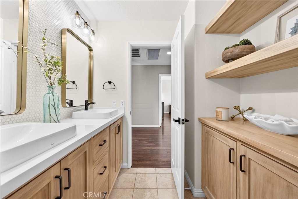 Welcome to this beautifully maintained and remodeled 4 bedroom 3 bath home in the highly sought-after Paseo del Sol community of Temecula! Nestled on a quiet cul-de-sac close to walking trails, with no rear neighbors, this is perfect blend of comfort, privacy, style, and convenience. This spacious residence features an open and inviting floor plan with hard-surface flooring throughout, a vaulted ceiling plus abundant natural light, ideal for both everyday living and entertaining. The well-appointed luxury kitchen boasts ample cabinetry, granite counters, a walk-in pantry, newer appliances and a Thermador 6 burner range! The kitchen flows seamlessly into the newly upgraded family room, with a large electric fireplace with a new contemporary mantle and cabinetry. The dining room has recently been upgraded with crown moulding and a modern wainscot. Upstairs, you’ll find four generously sized bedrooms, including a spacious primary suite with an ensuite bath and walk-in closet. The other upstairs full bathroom has been recently renovated with a tiled shower surround and backsplash plus high end finishes throughout. The backyard provides a peaceful retreat with room to relax, dine, or create your own outdoor oasis with a spa, mature and well-kept landscaping, a stone accented gas fireplace, BBQ island, vinyl fencing, and large alumawood covered patio. On the main floor, there is a private office with exterior glass french doors which could easily be converted to an in-law suite as it is adjacent to another full bathroom. Other amenities include 3 car garage, whole house fan, new AC unit, built-ins throughout, and upstairs laundry room. Located in the master-planned Paseo del Sol neighborhood, residents enjoy access to resort-style amenities including pools, parks, tennis, walking trails, and top-rated Temecula schools. Conveniently close to shopping, dining, and Temecula’s renowned wine country, this home truly has it all.Don’t miss your opportunity to own in one of Temecula’s most desirable communities!