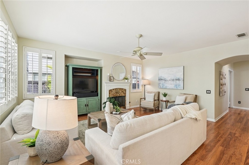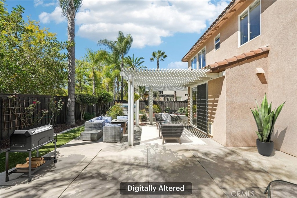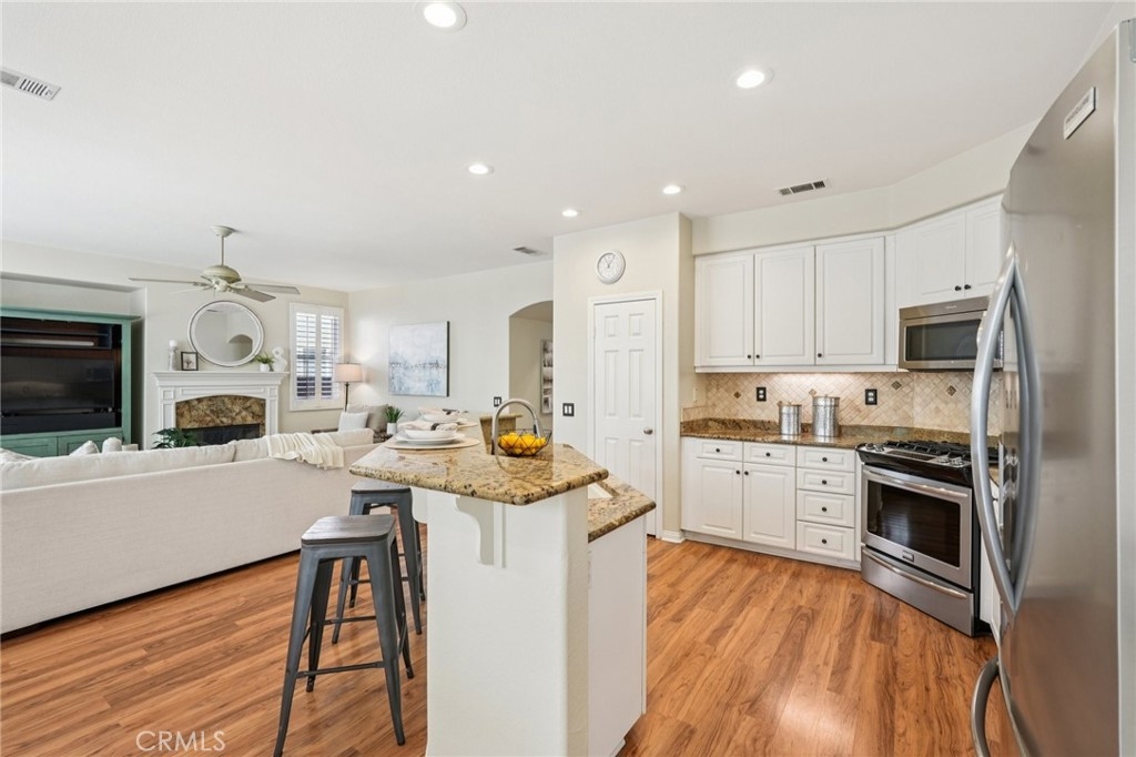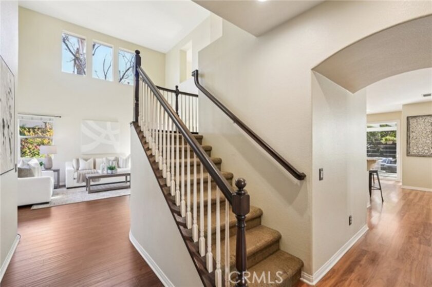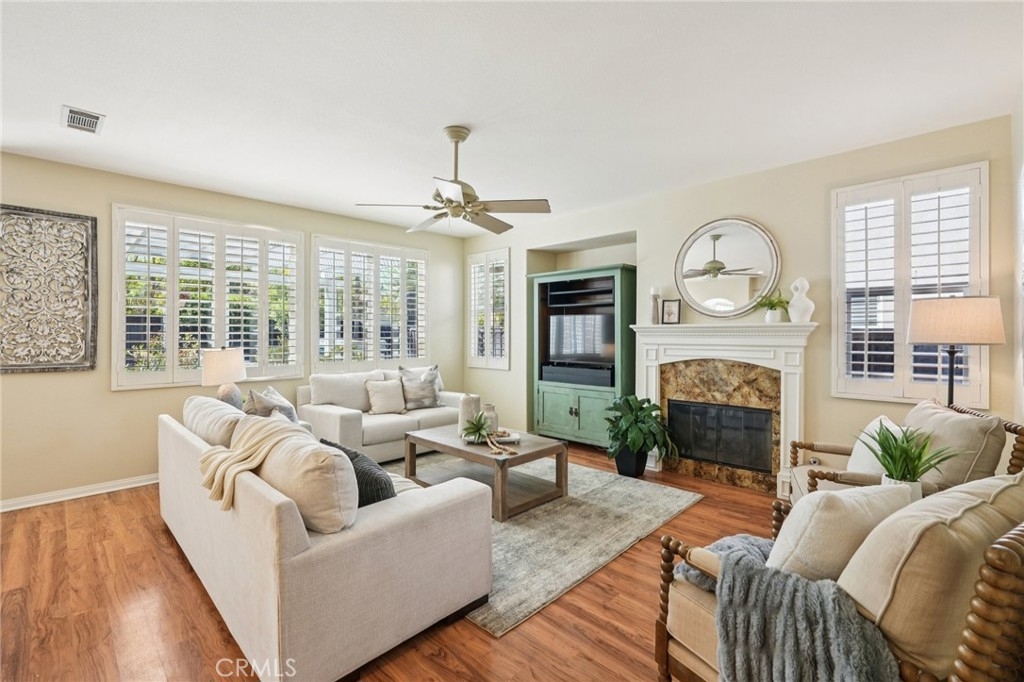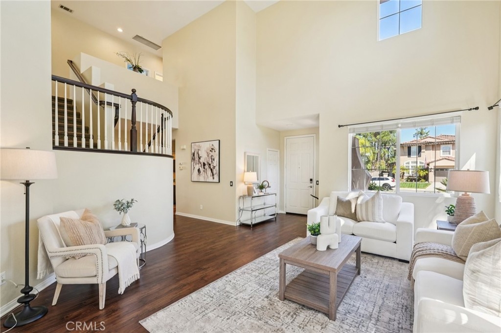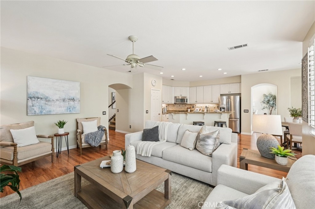 Welcome to this stunning two-story home located in the highly desirable Paseo del Sol community. Showcasing fantastic curb appeal, this home features an attached 3-car garage and leased solar panels for enhanced energy efficiency and long-term savings! Before stepping inside enjoy the front porch area great for relaxing. The spacious interior offers a thoughtfully designed floor plan highlighted by recessed lighting, a neutral paint scheme, and stylish laminate wood-look flooring throughout. The formal living room impresses with soaring two-story ceilings and an abundance of natural light, creating a bright and airy ambiance. Adjacent, the formal dining room is elevated by a modern industrial-style chandelier, this space is perfect for hosting! The open-concept great room seamlessly combines comfort and functionality, featuring a cozy fireplace in the family room, a charming breakfast nook, and a well-appointed kitchen that is equipped with granite countertops, a center island with breakfast bar seating, ample cabinet storage space, a pantry, and stainless steel appliances which include the refrigerator. Convenience meets flexibility with a main floor bedroom and full bathroom, ideal for guests or multi-generational living. There is also a dedicated laundry room. Upstairs, you’ll find a spacious bonus loft that can easily serve as a 5th bedroom, home office, or media room, along with three additional bedrooms including the large primary suite with private spa-like ensuite bathroom featuring dual sinks, a soaking tub, a separate shower, and a large walk-in closet. A full hall bathroom serves the secondary bedrooms. Also, step outside to enjoy your private backyard oasis, designed for both relaxation and entertaining with pergola to relax under, concrete hardscaping, turf accents, and a garden perimeter with mature plants. There is also large community, sparkling lap pool and kids pool directly across the street plus an included hot tub in the backyard! Also conveniently located near the gym, park, pond/trails, as well as a close proximity to schools including Temecula Middle School (0.2 miles away), Abby Reinke Elementary School, and Temecula High School, plus there are grocery stores (Barons 1.1 miles away and Sprouts 1.4 miles away). This exceptional home offers the perfect blend of comfort, style, and community living, schedule your private tour today!